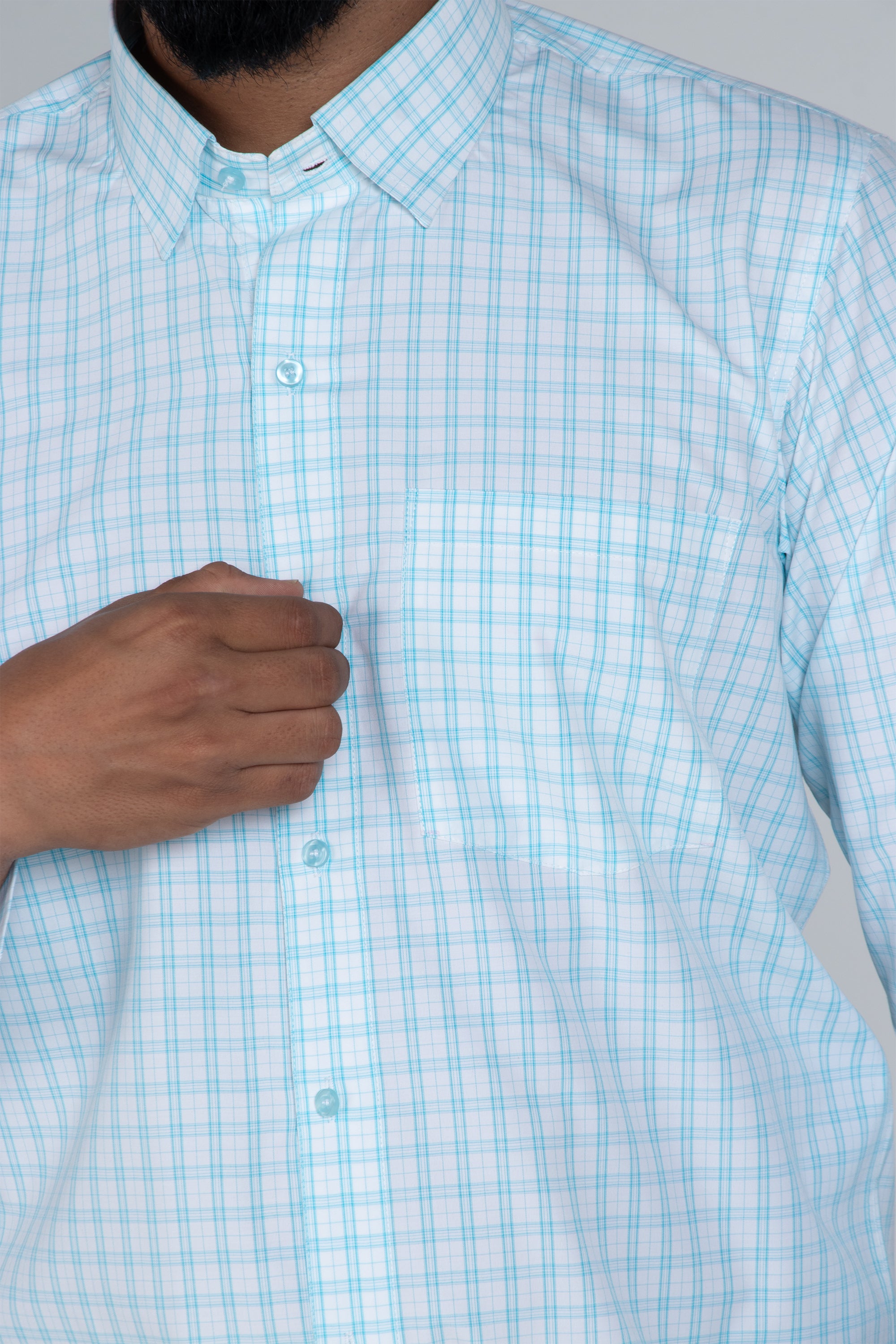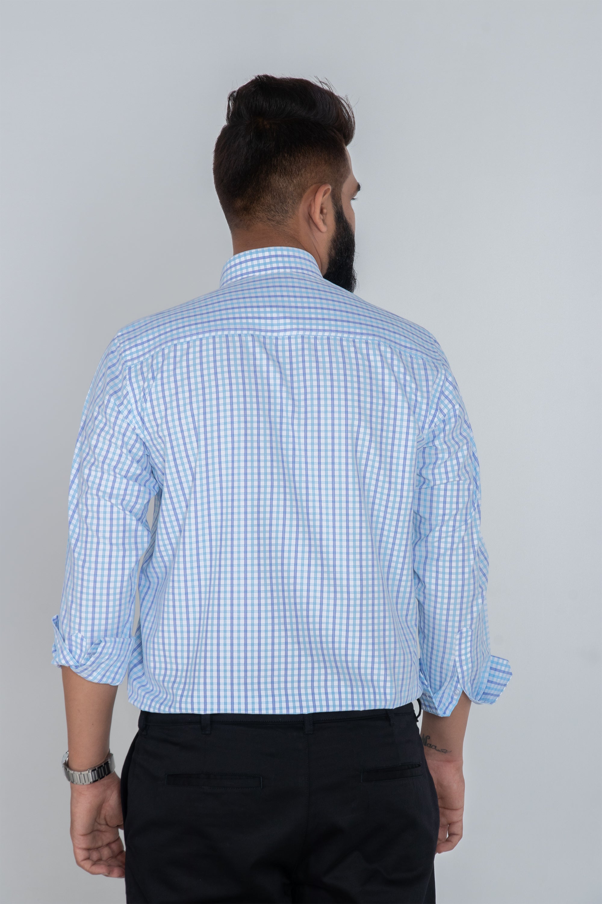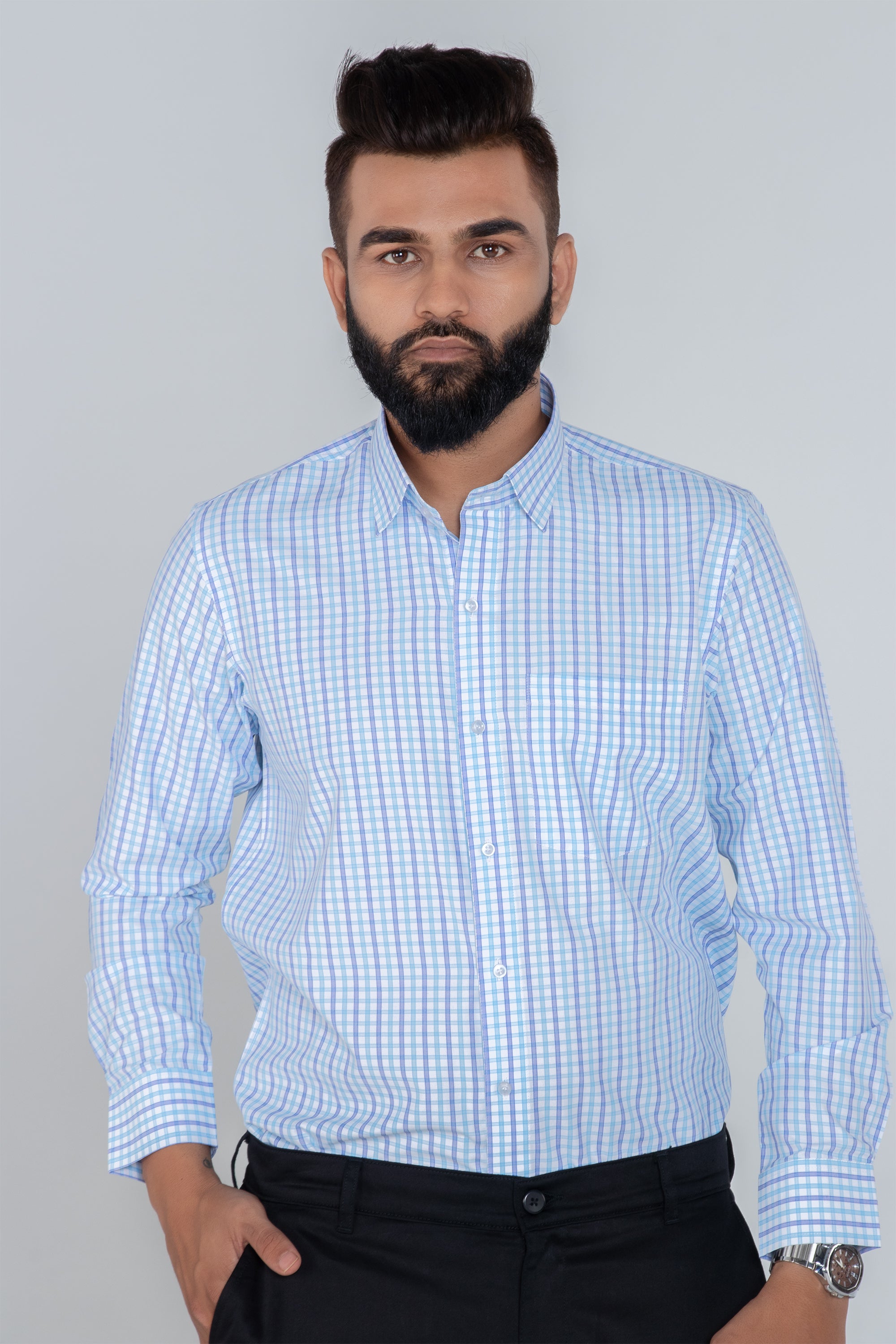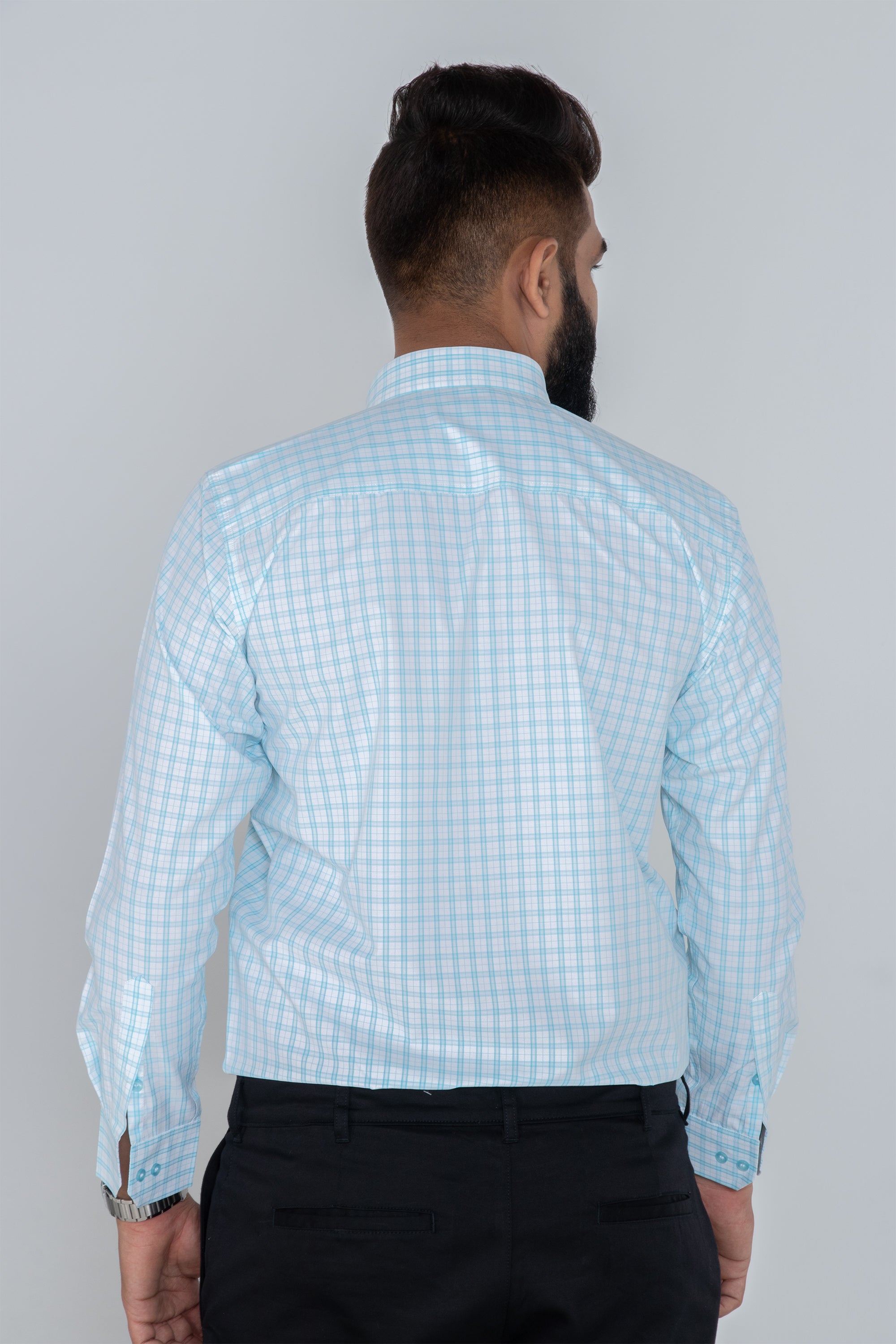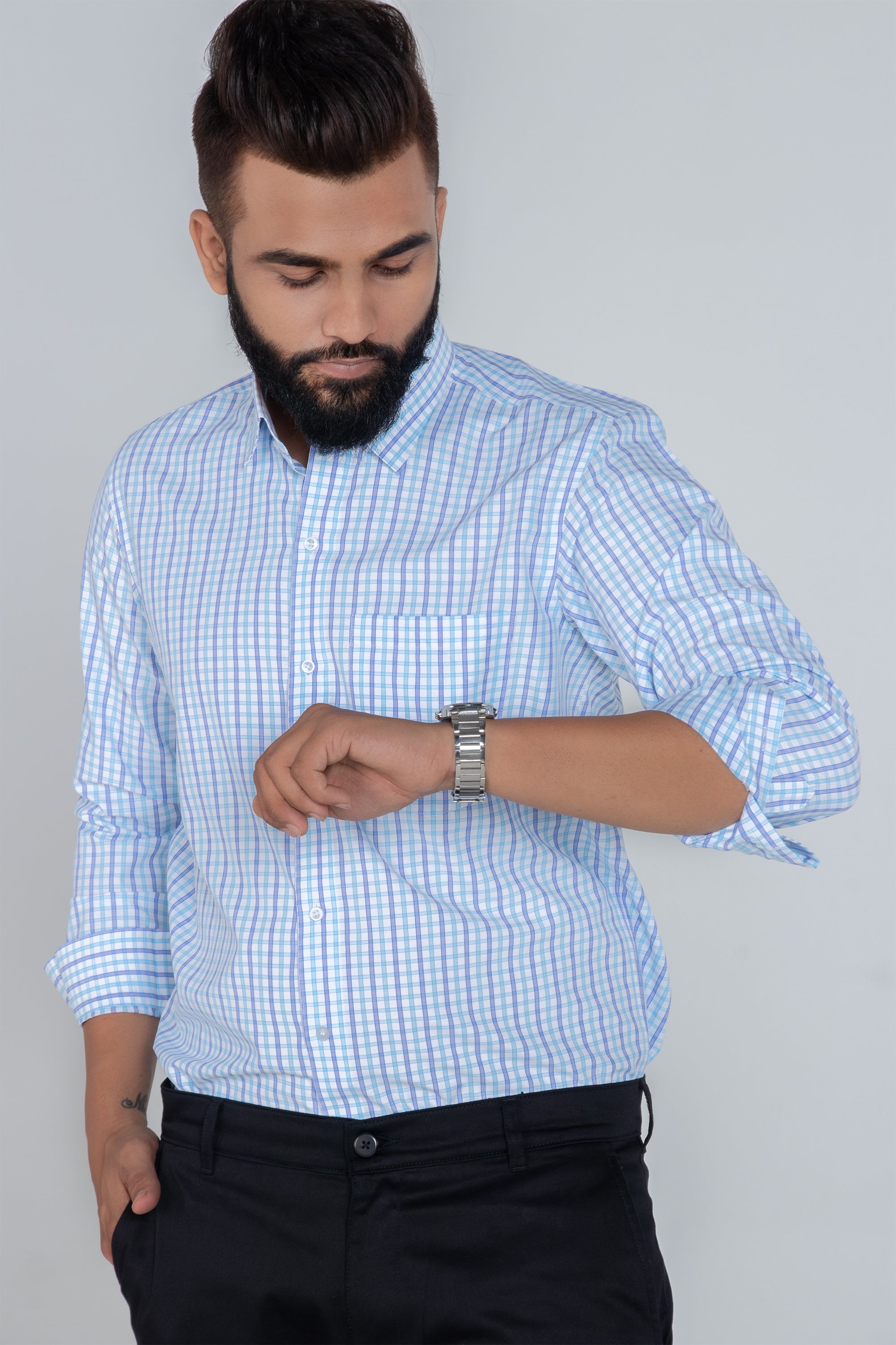 Men's Aqua Blue and Purple Checks Pattern Shirt