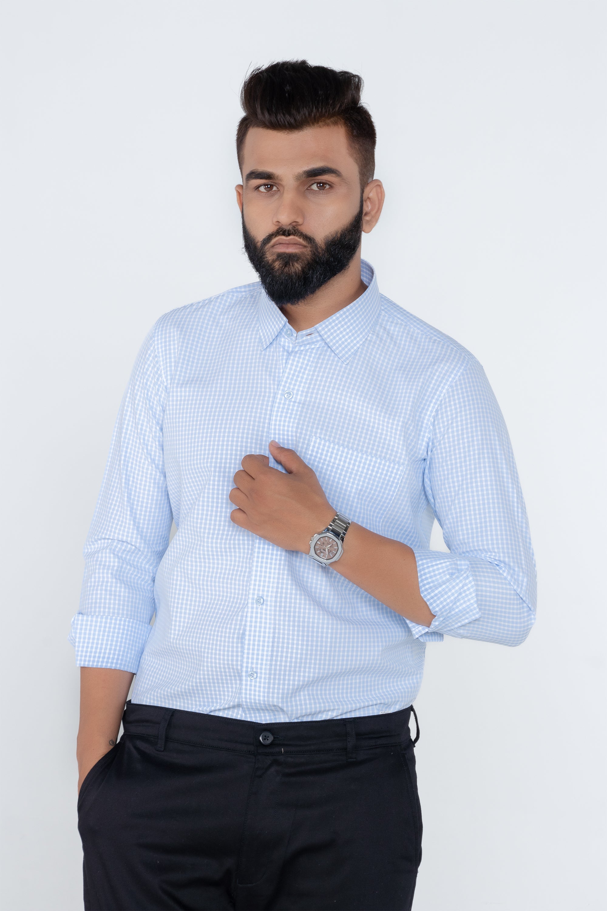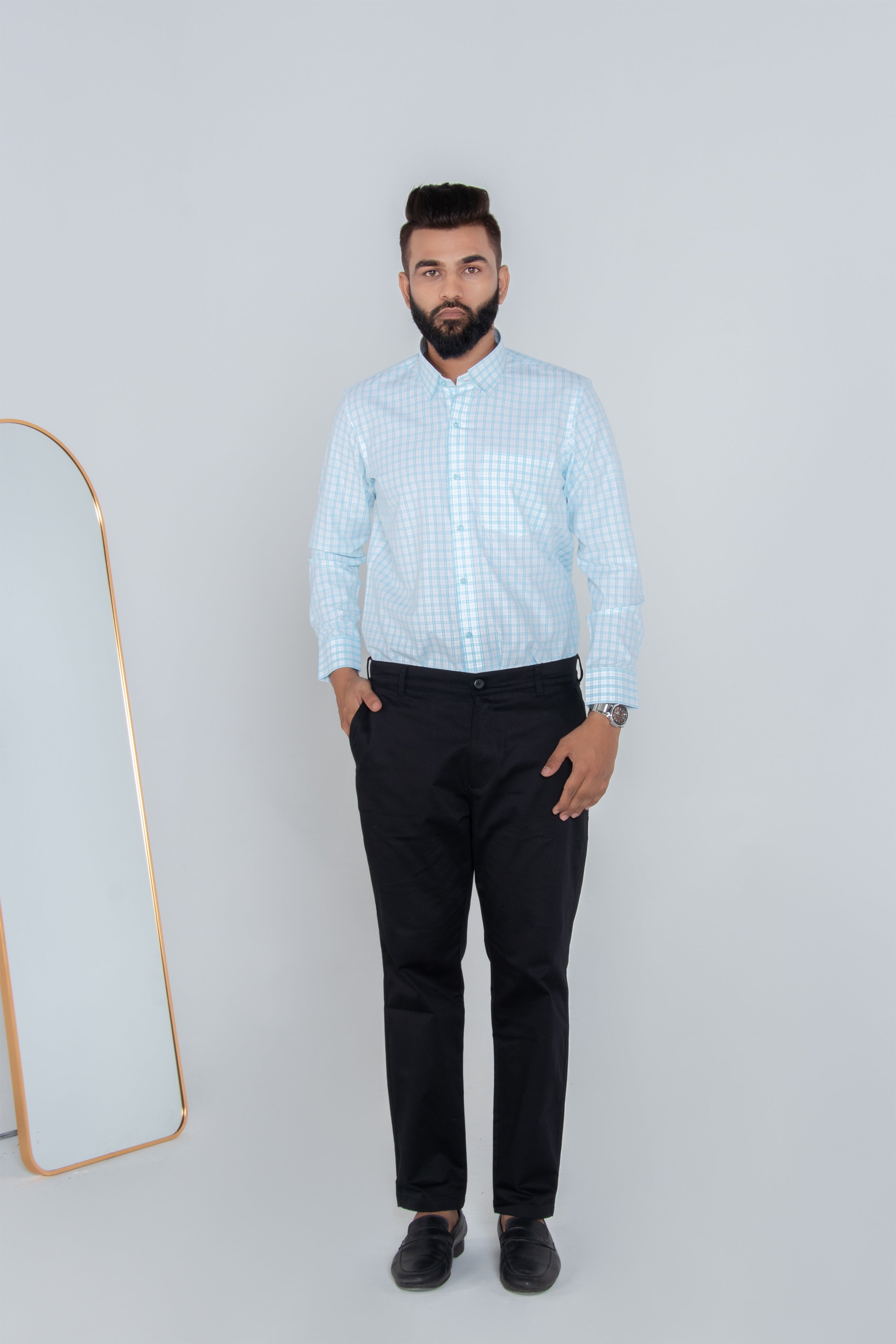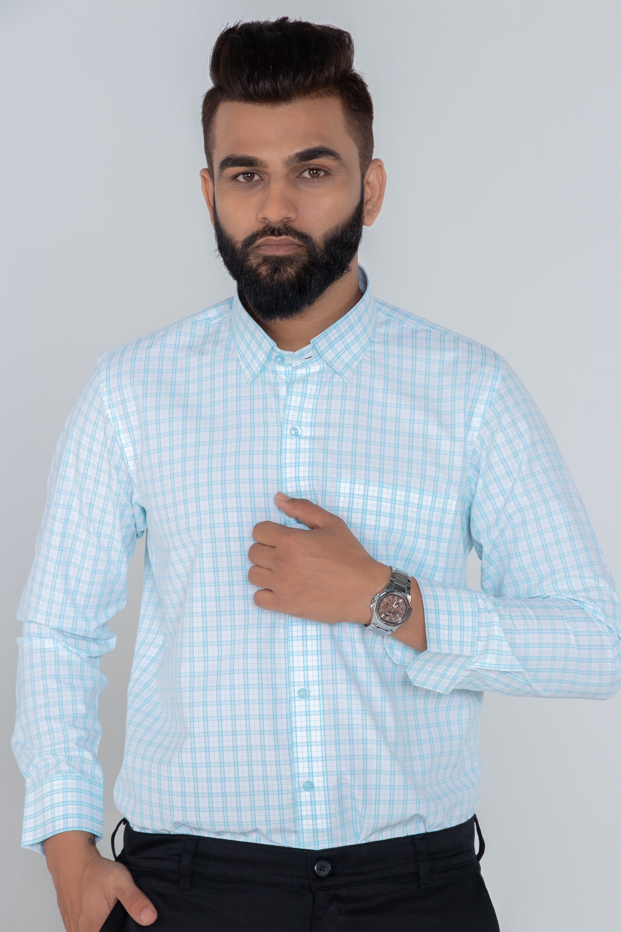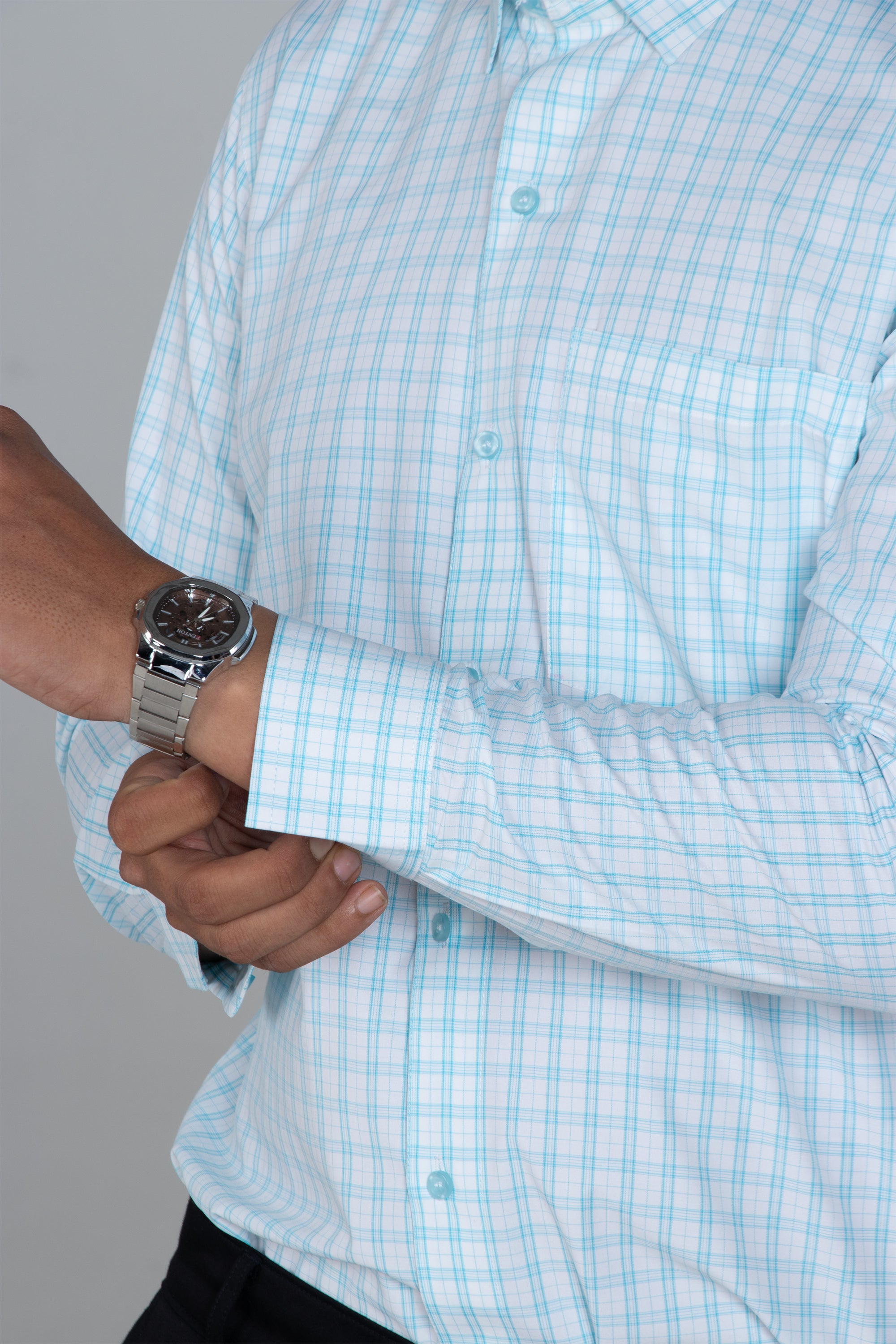 Men's Aqua Blue and Purple Checks Pattern Shirt
