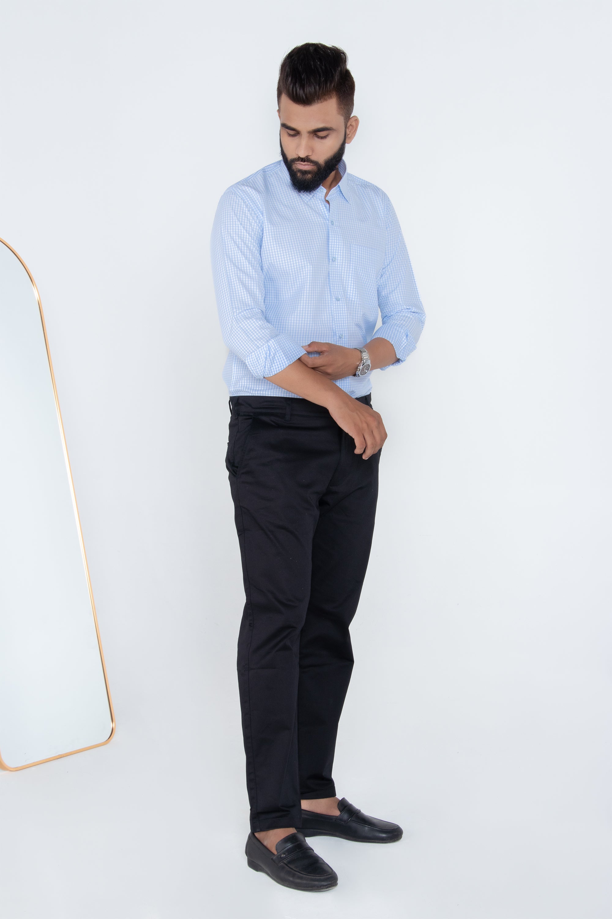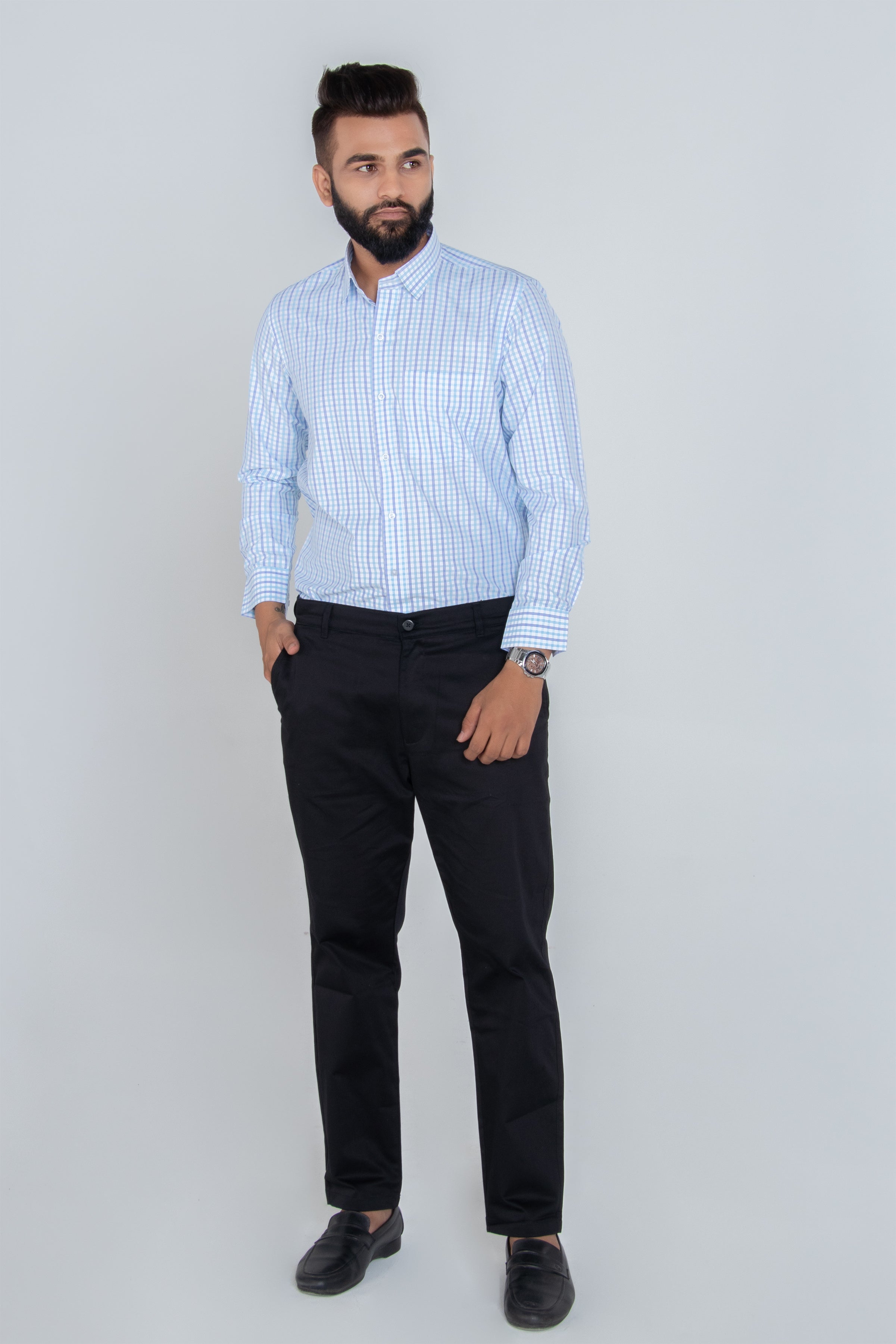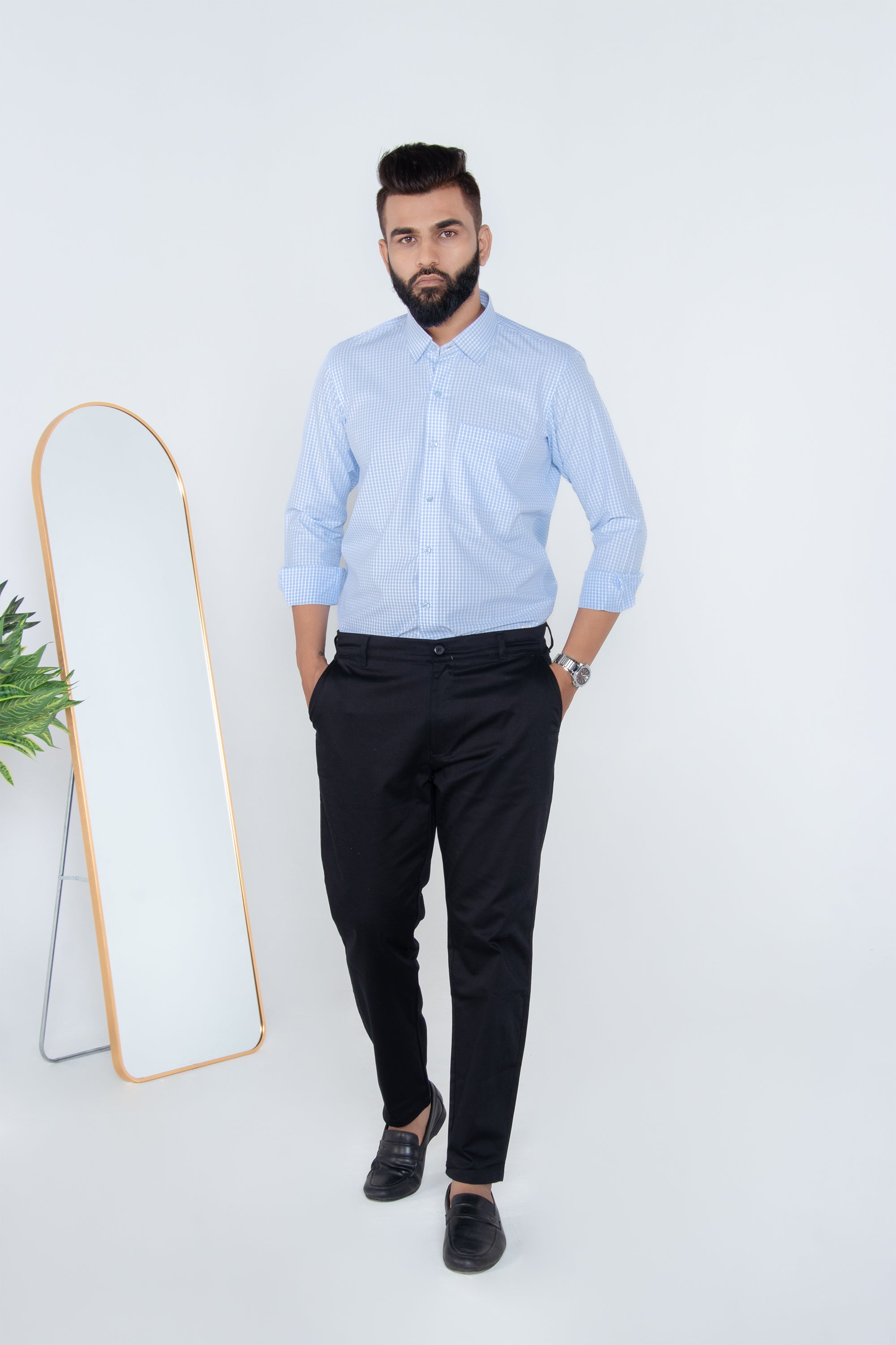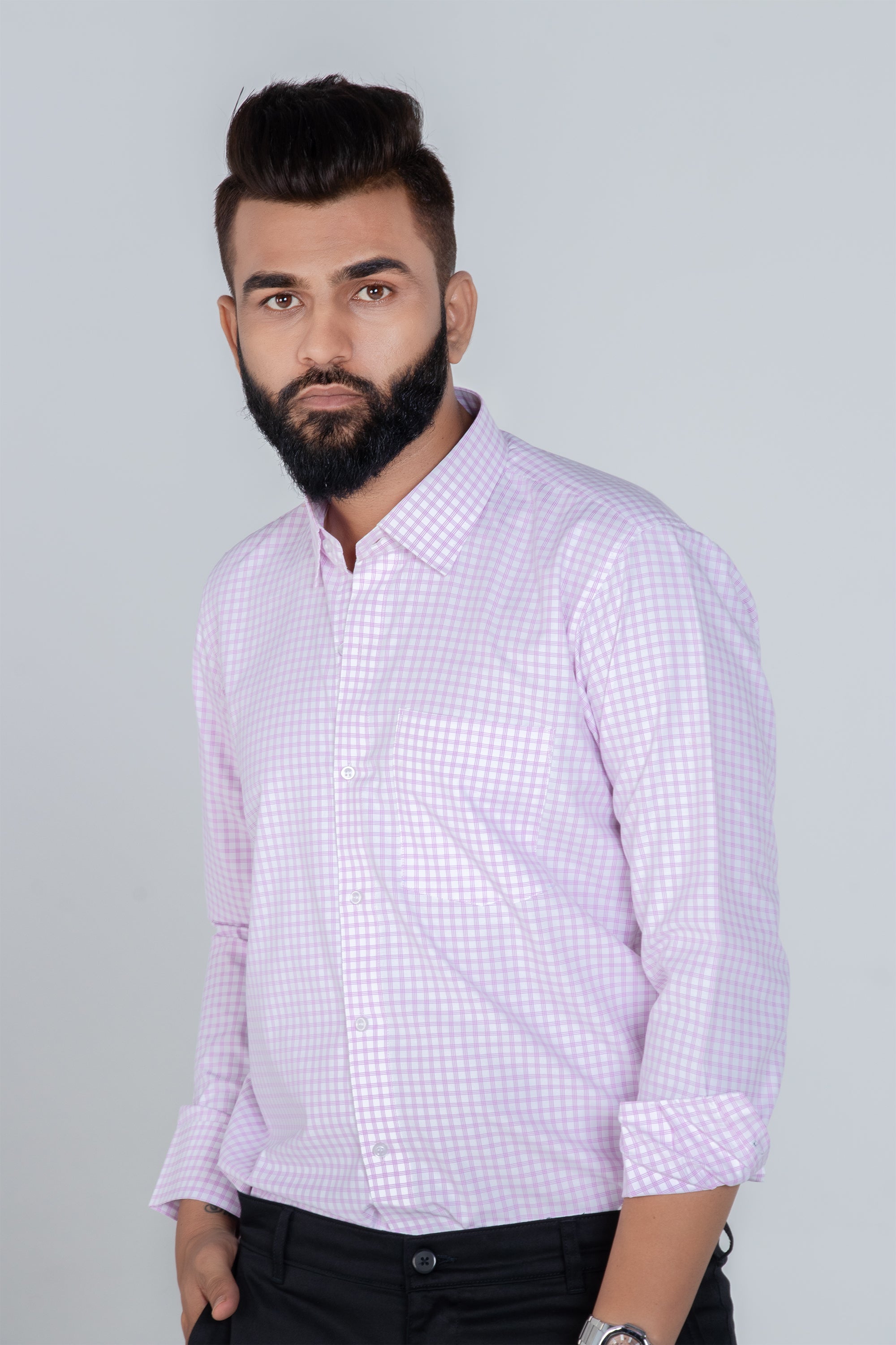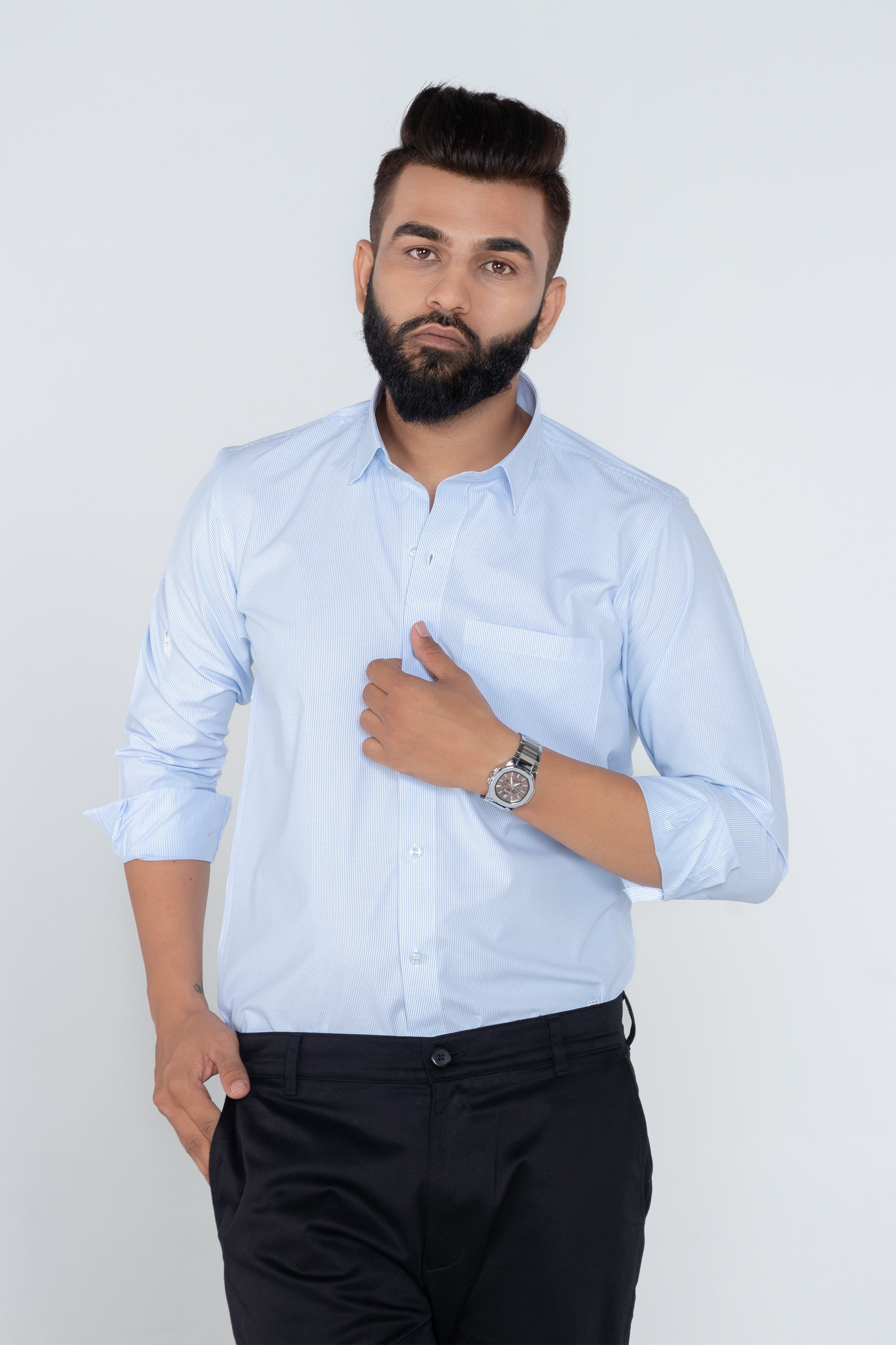 Men's Aqua Blue and Purple Checks Pattern Shirt