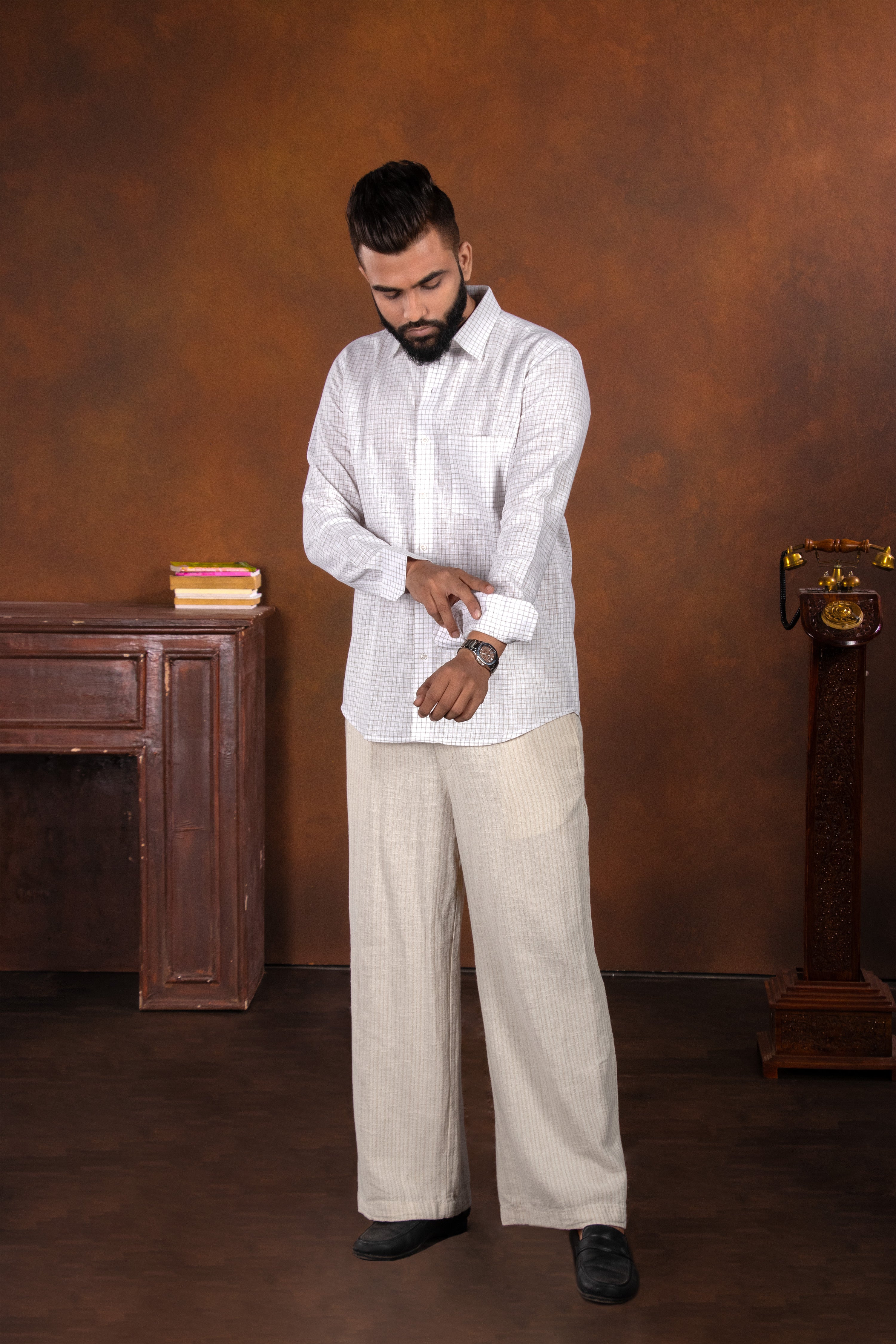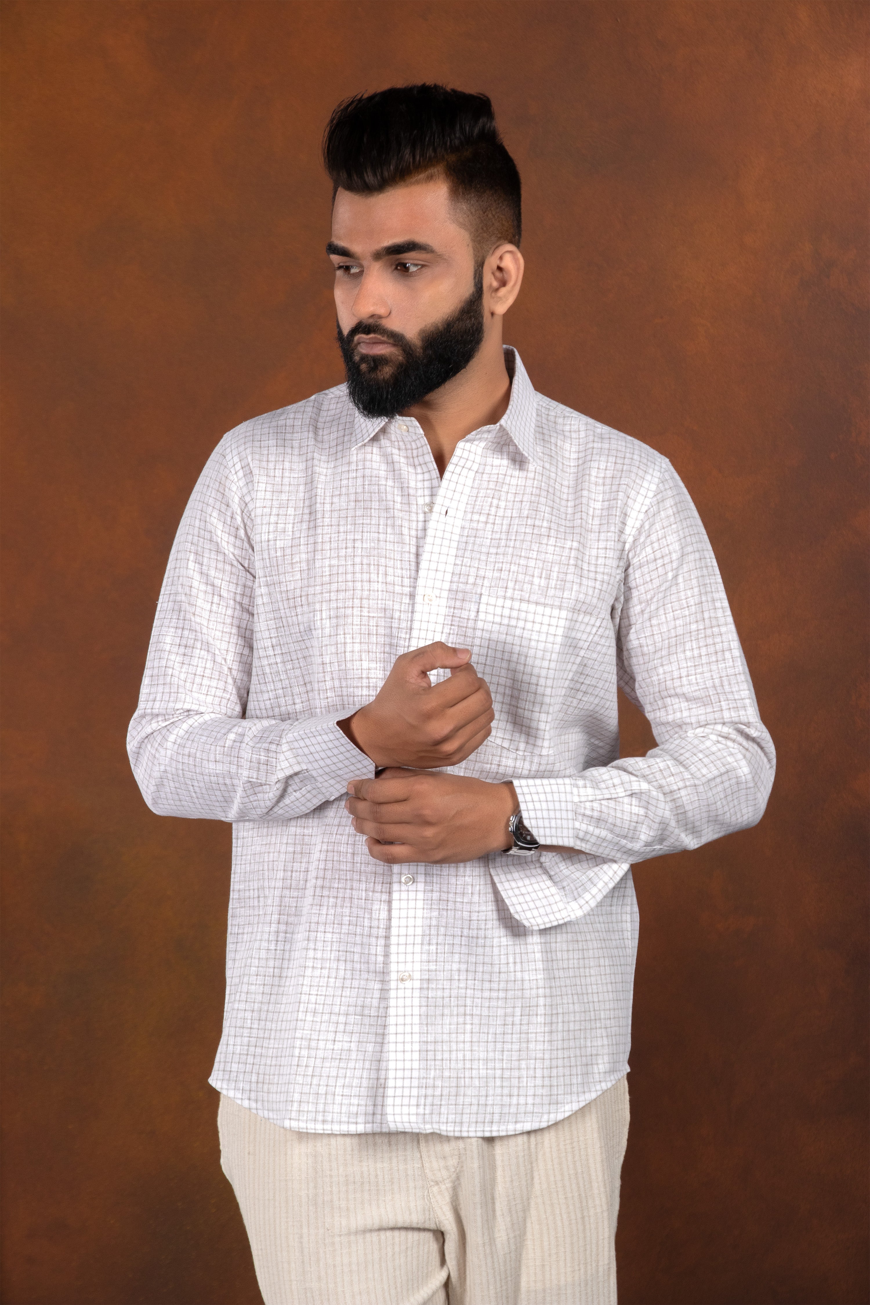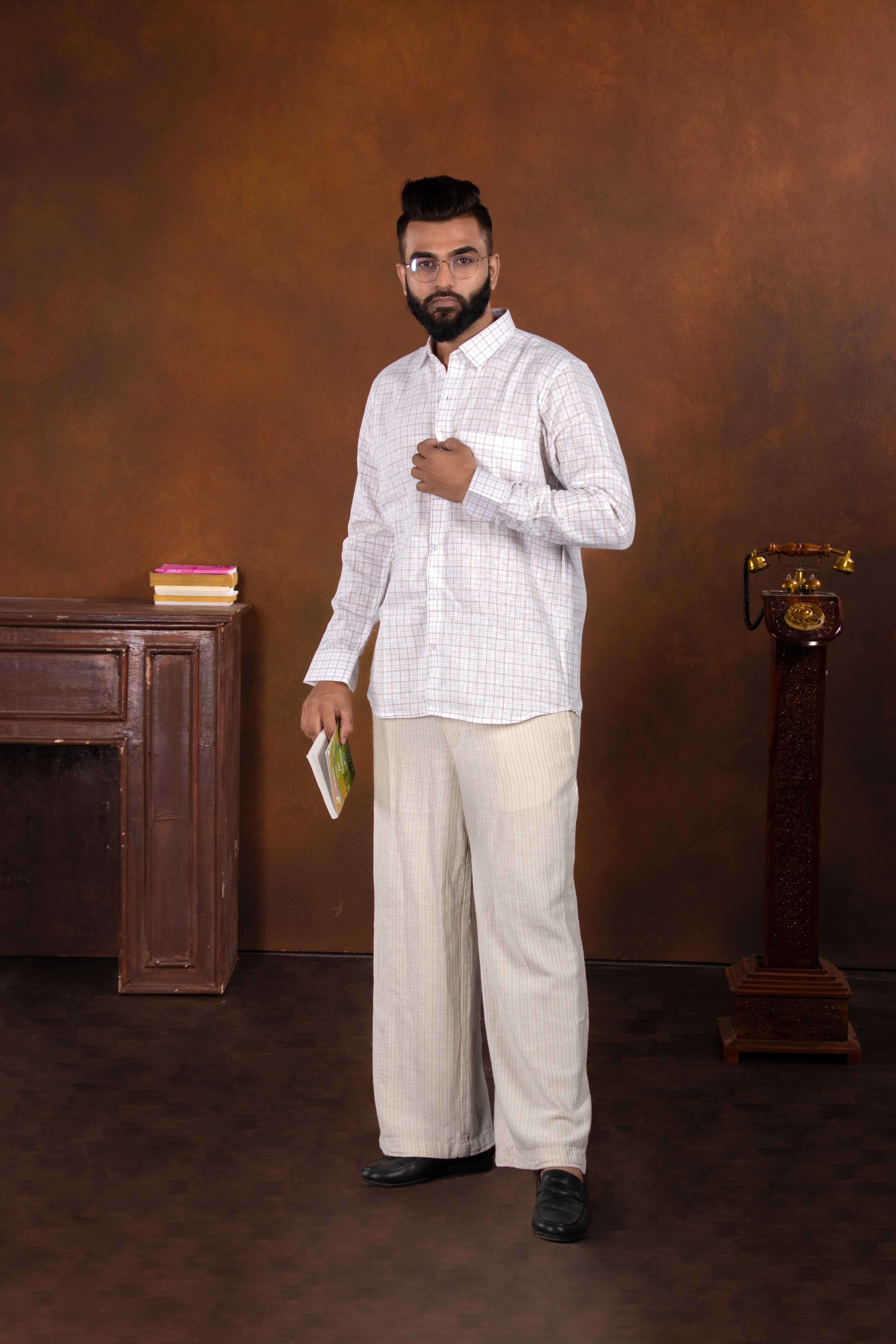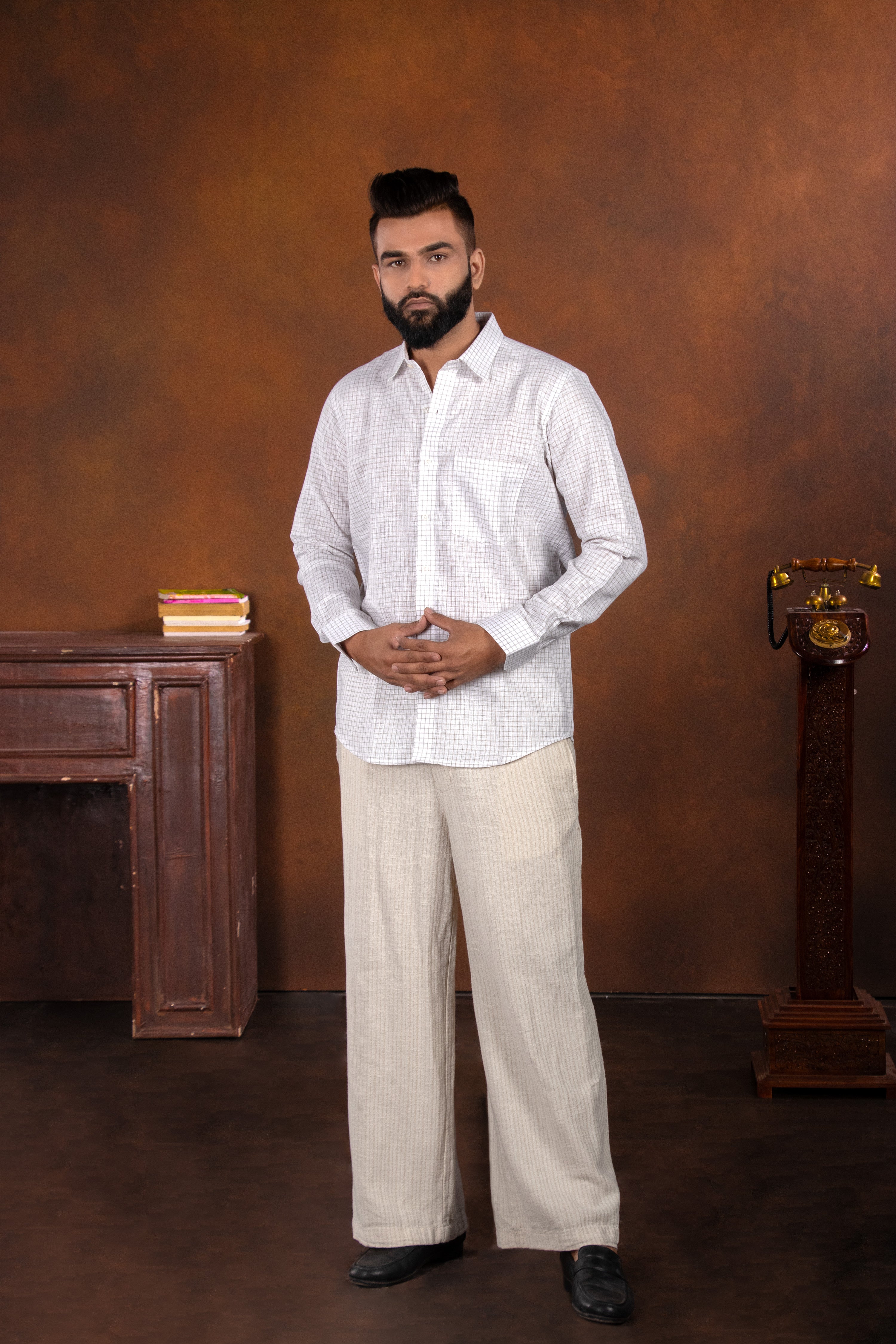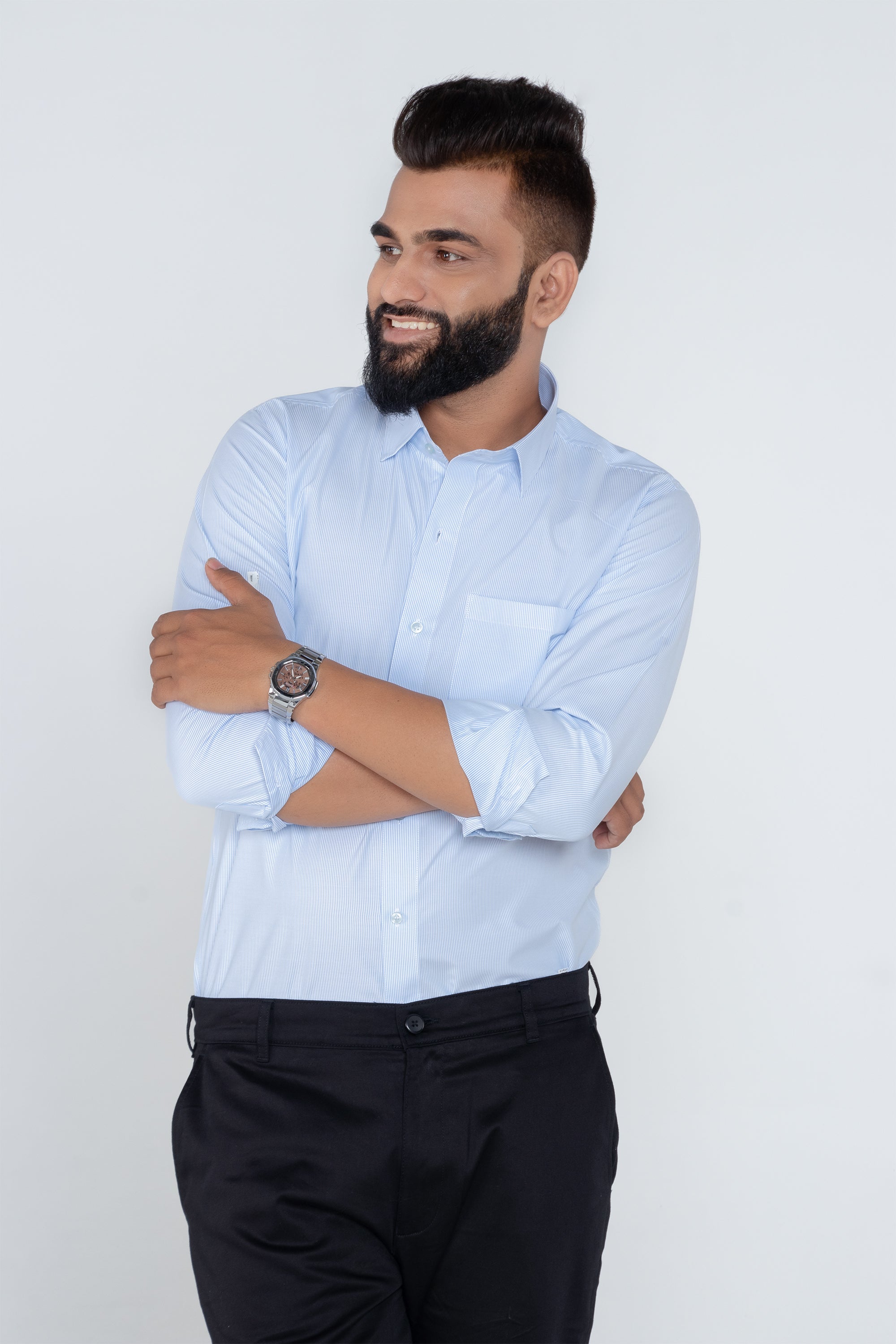 Men's Aqua Blue and Purple Checks Pattern Shirt