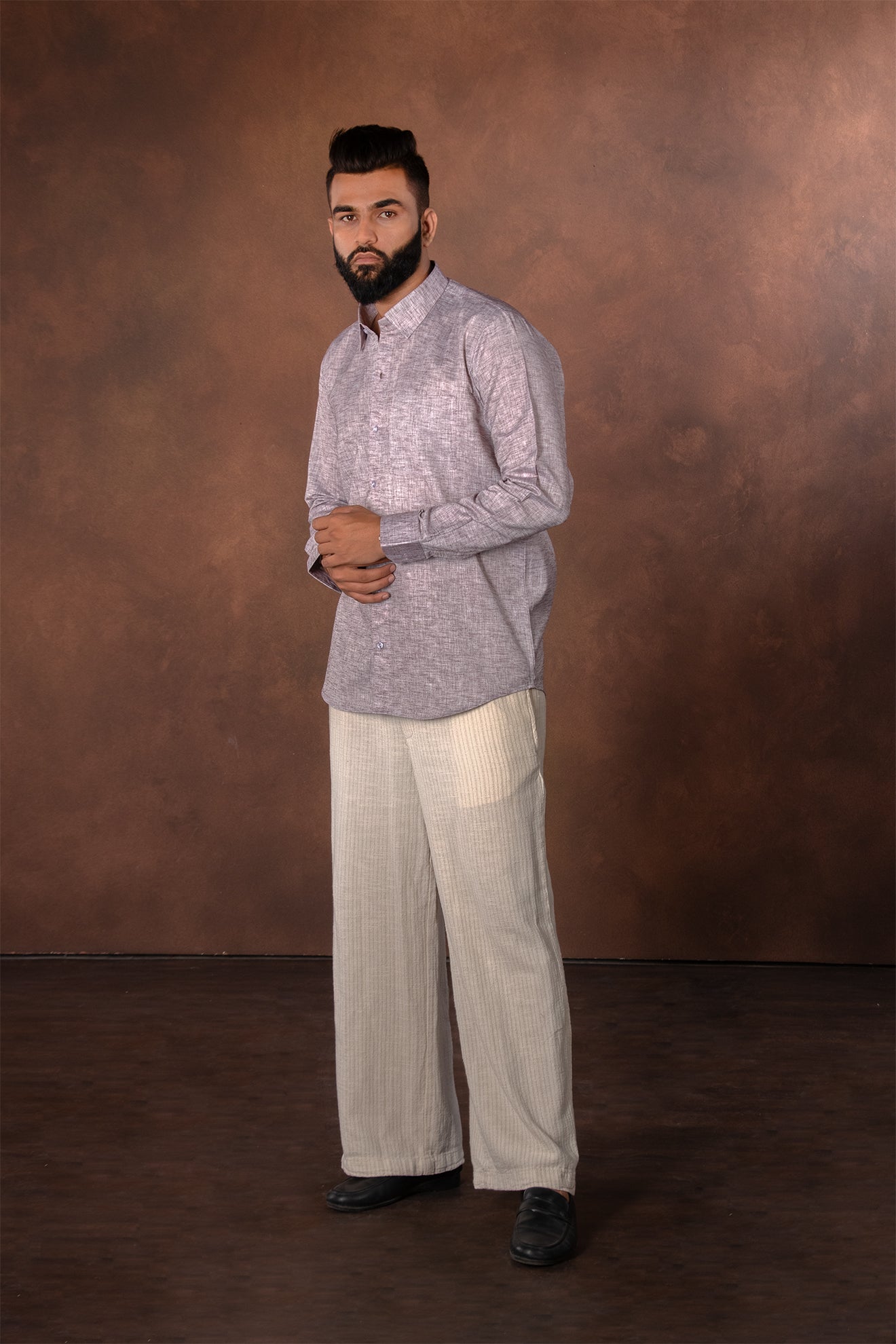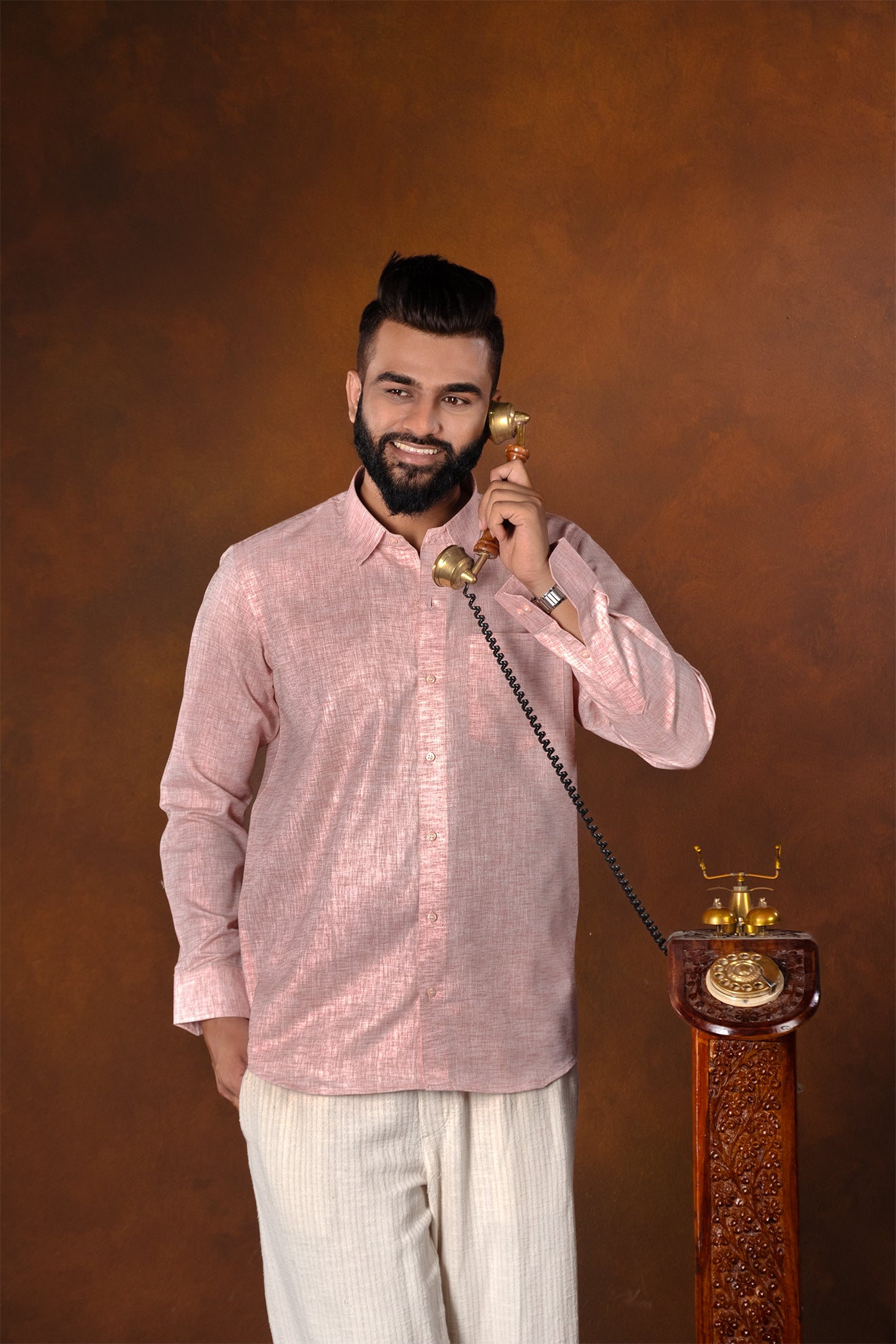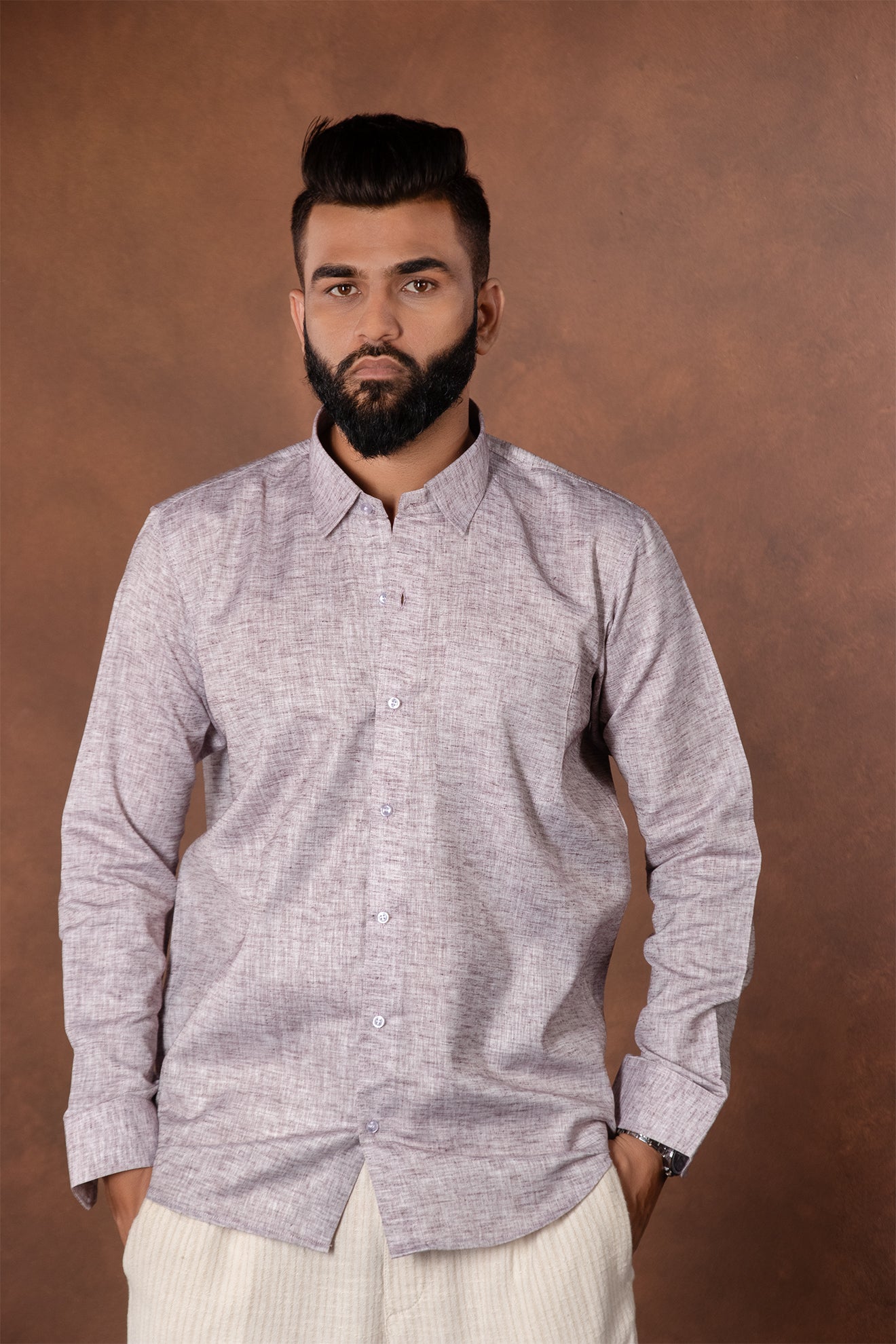Men's Navy Blue Dyed Cotton Linen Shirt
