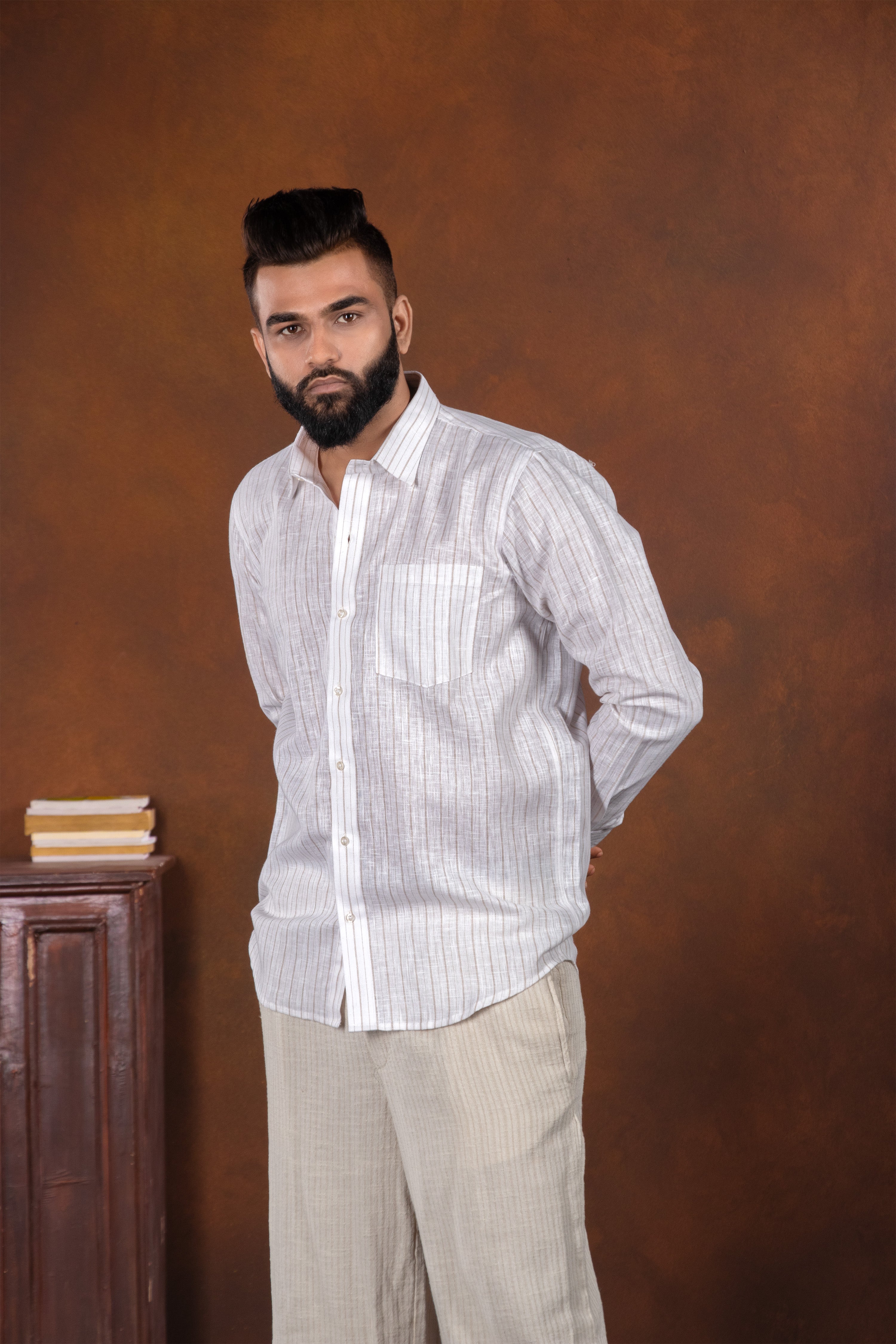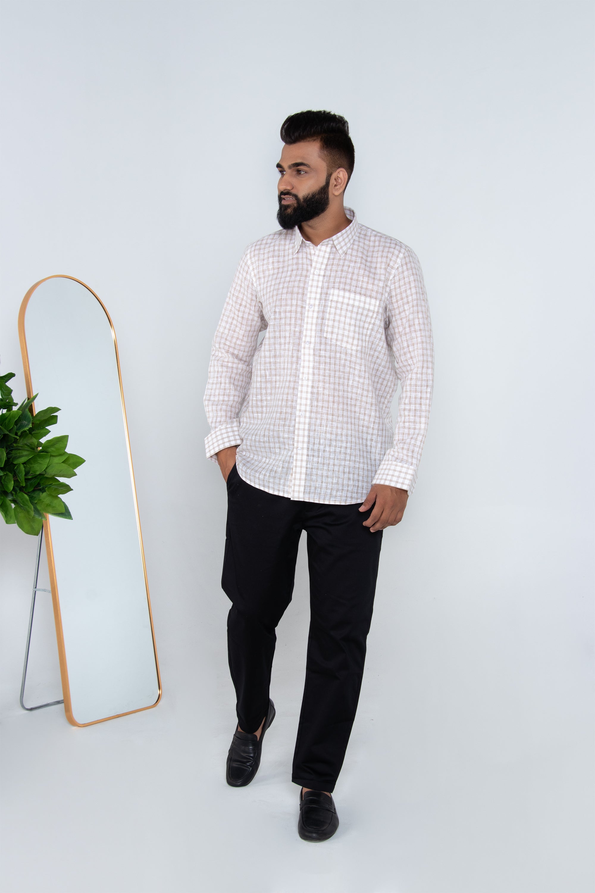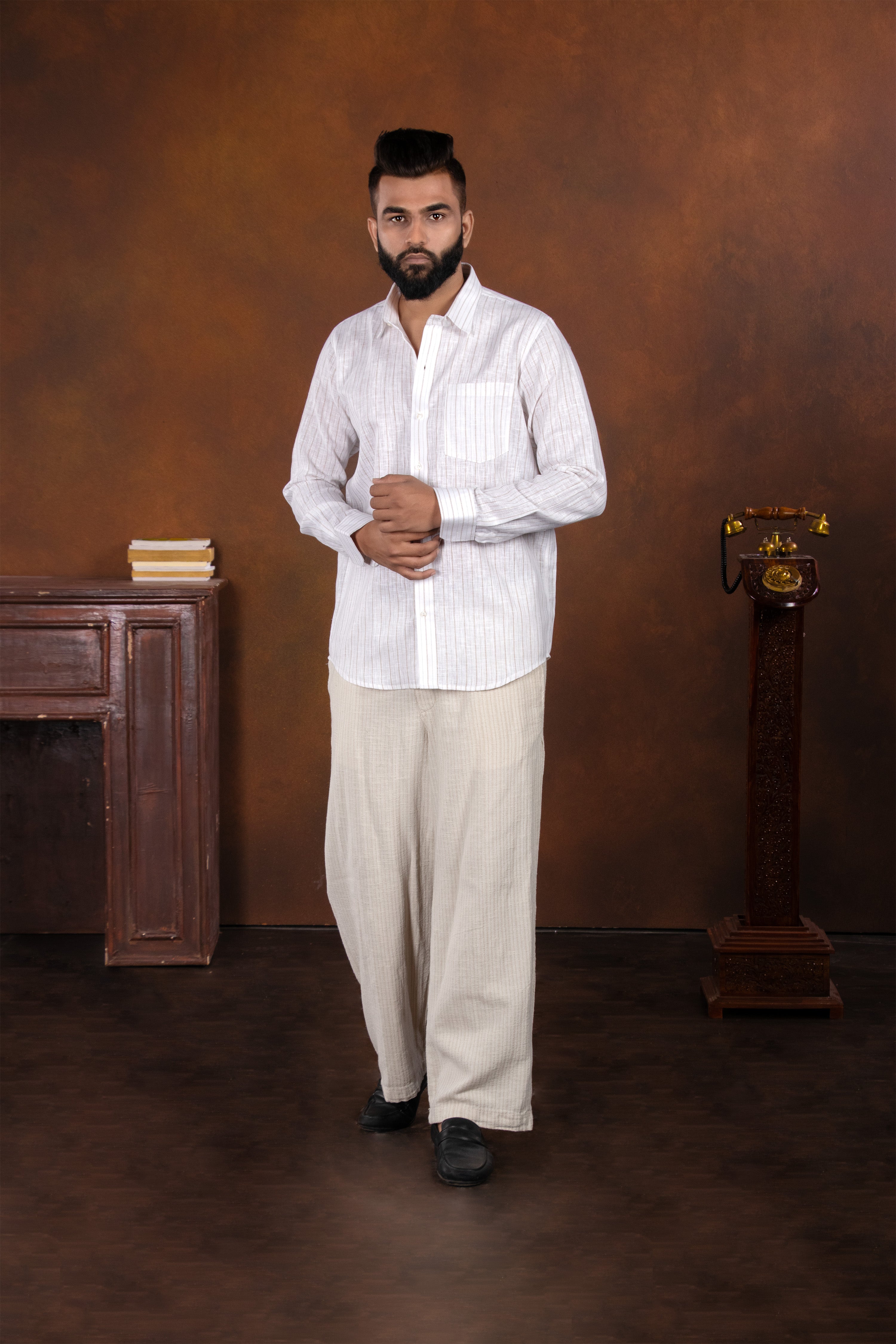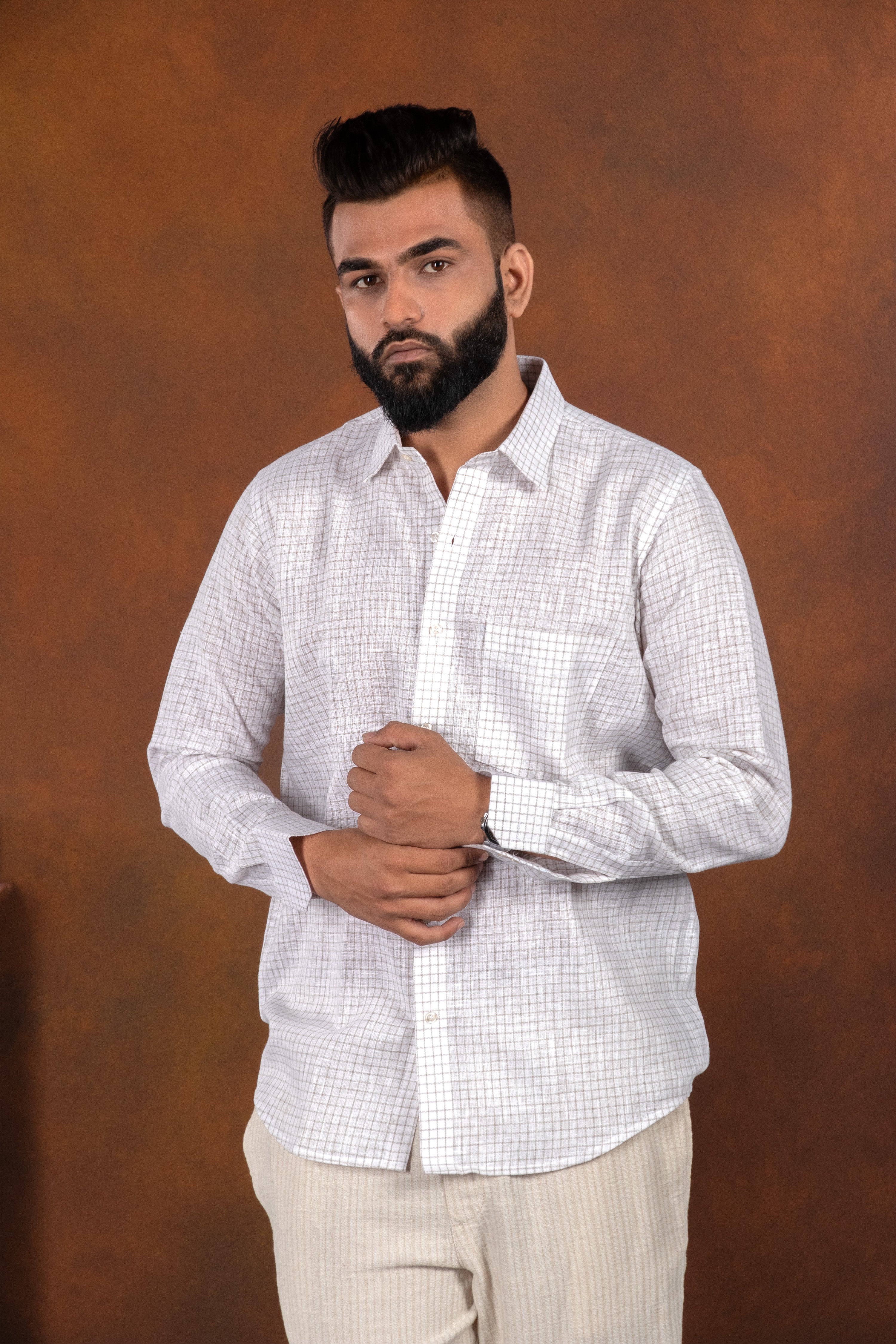 Men's Navy Blue Dyed Cotton Linen Shirt