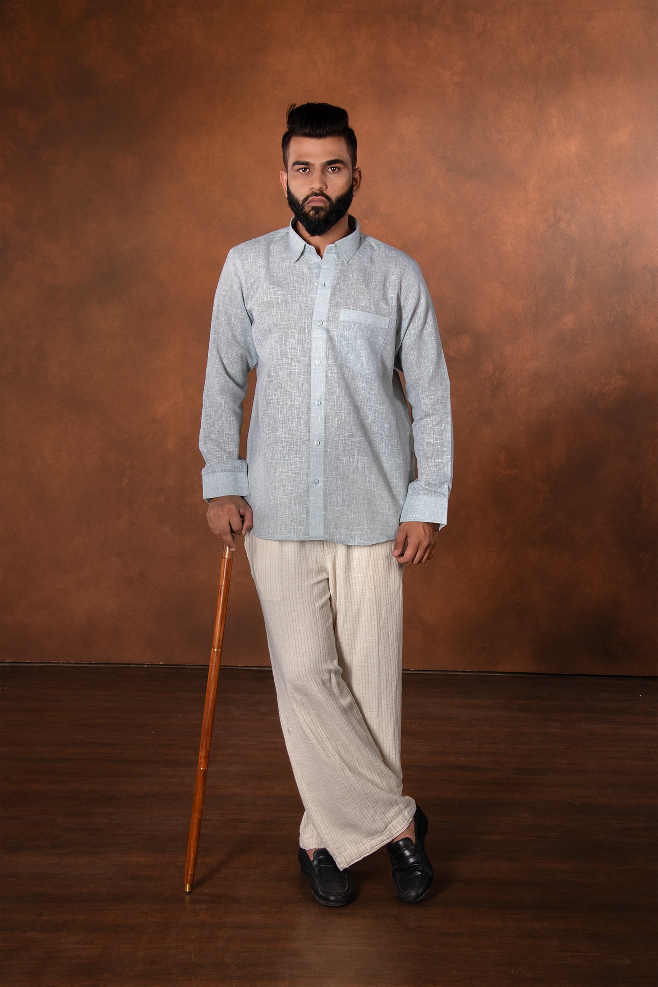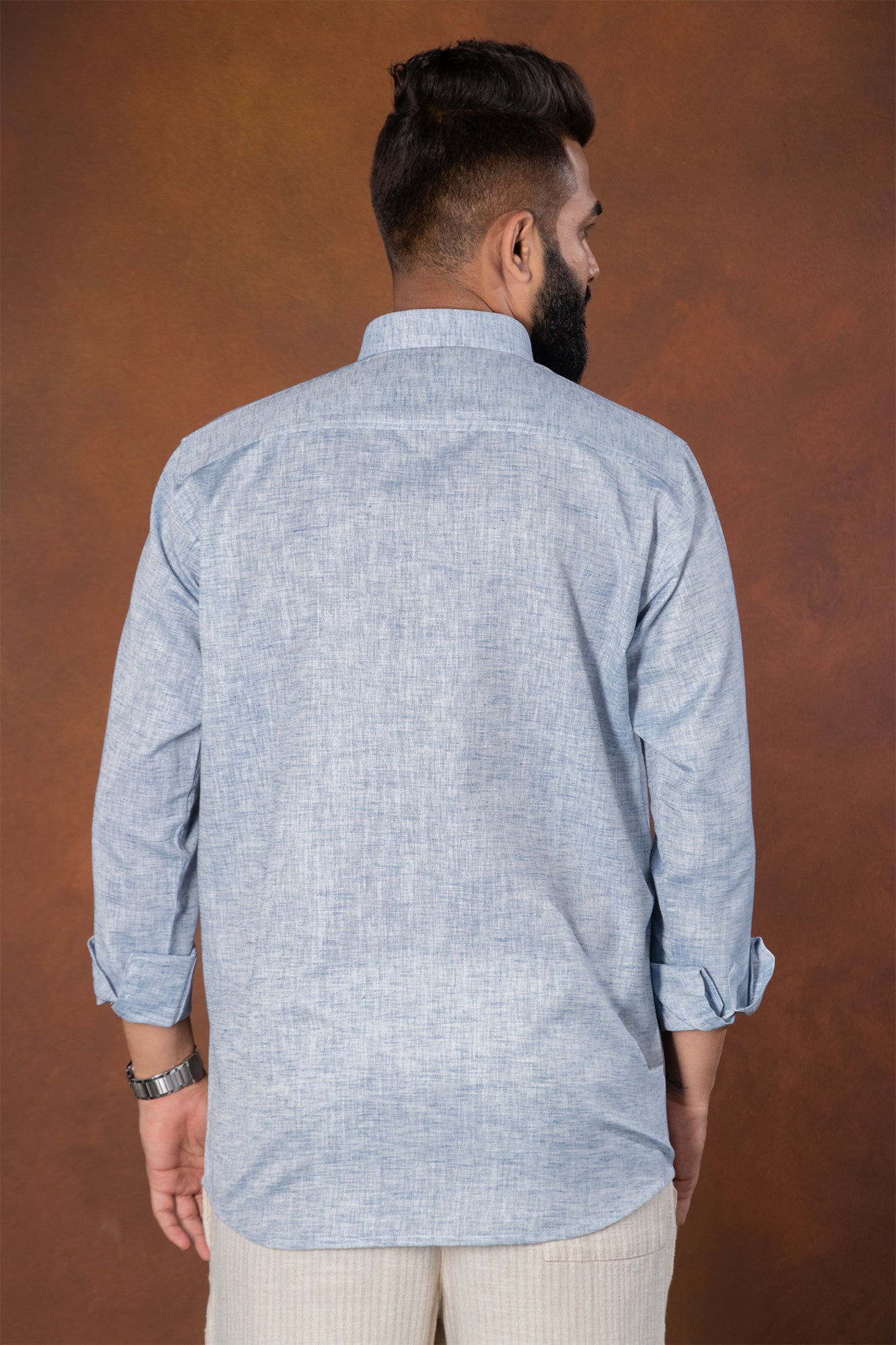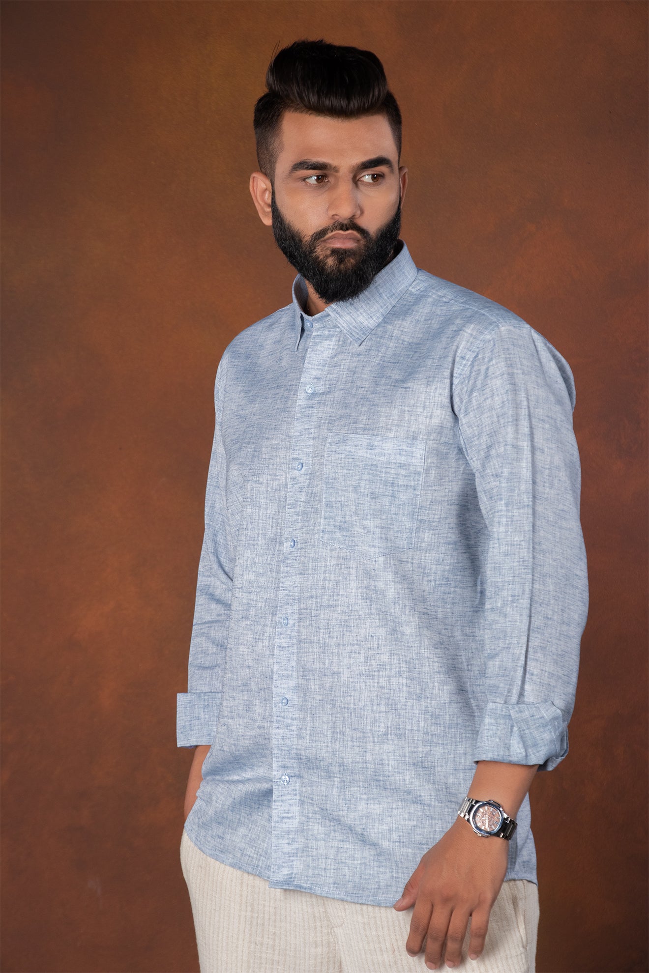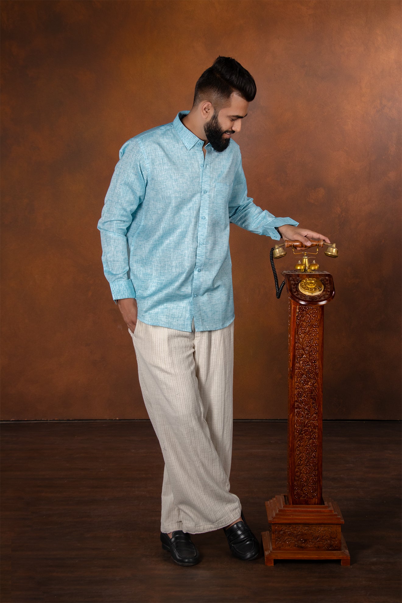 Men's Aqua Blue Dyed Cotton Linen Shirt