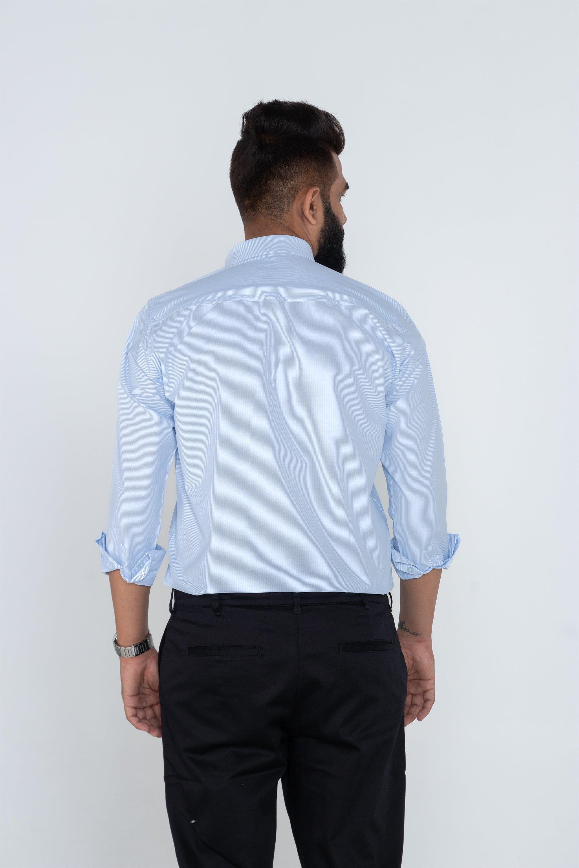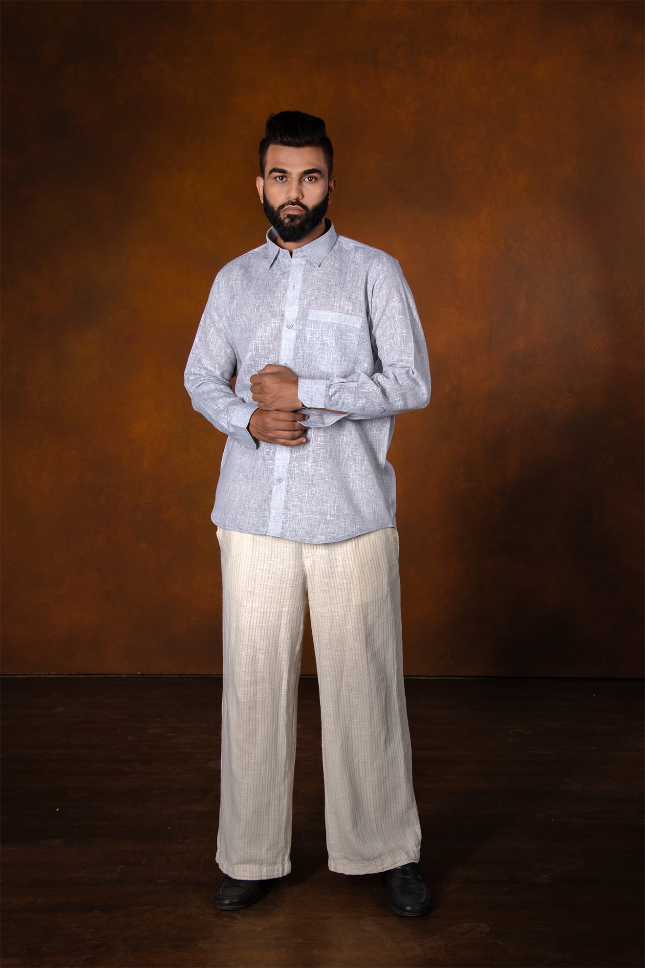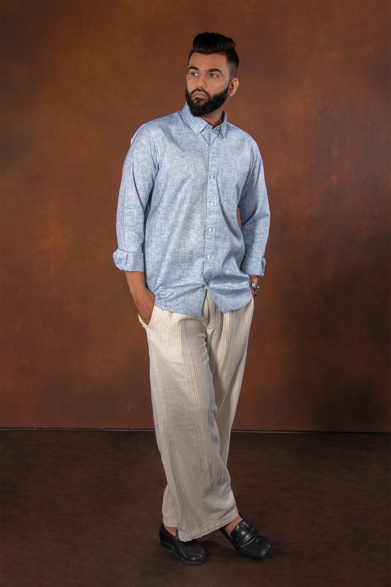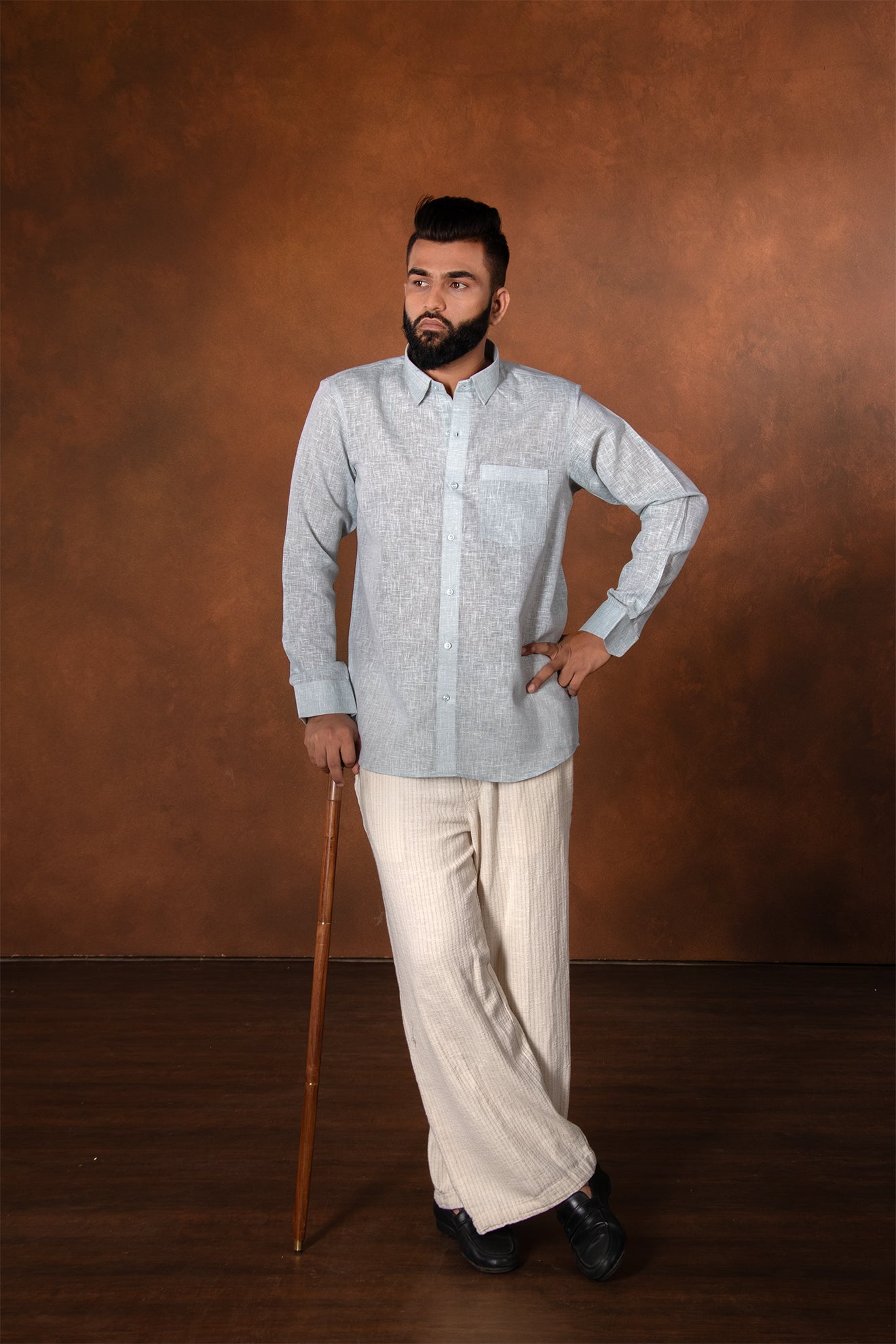 Men's Aqua Blue Dyed Cotton Linen Shirt