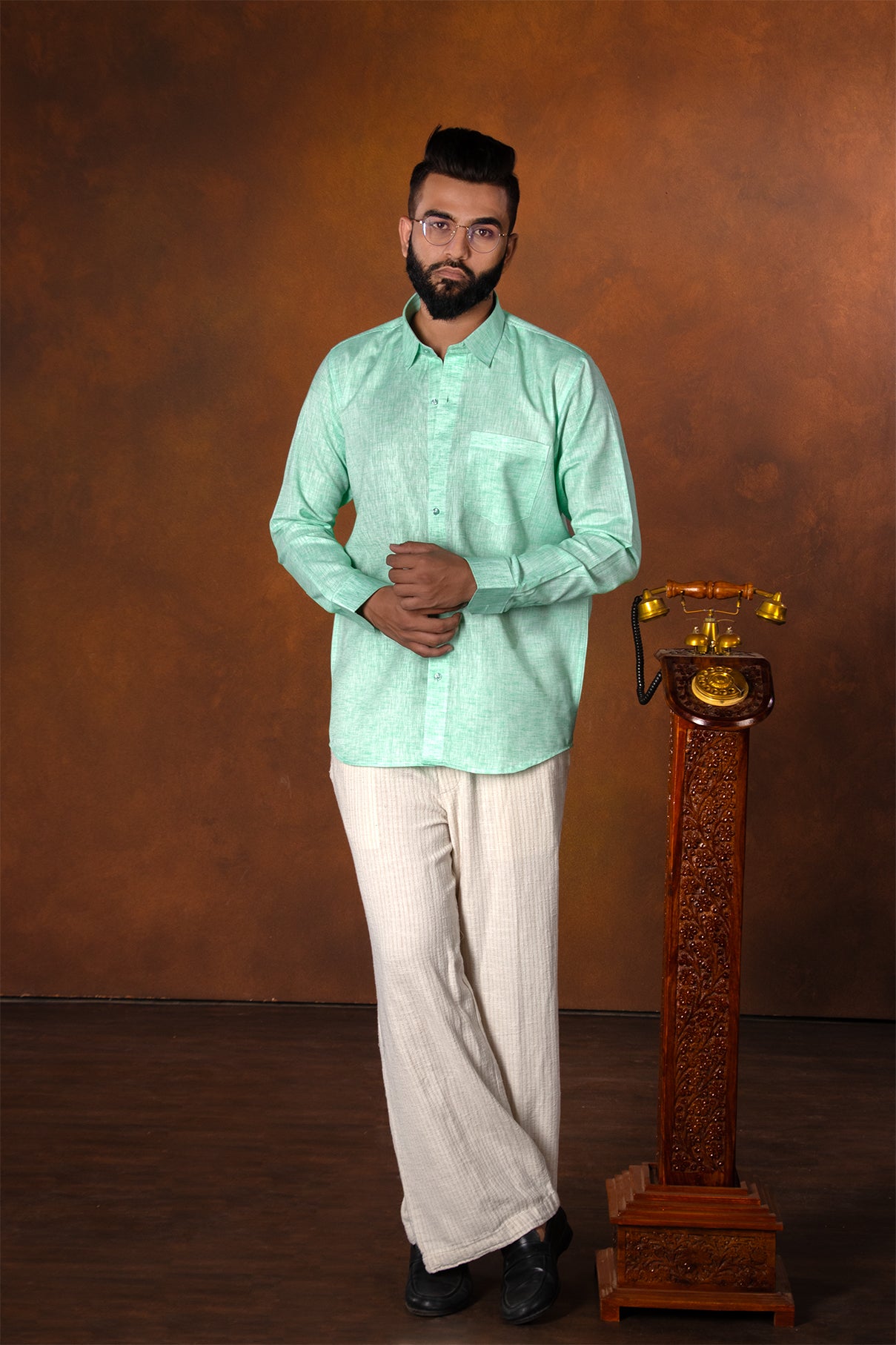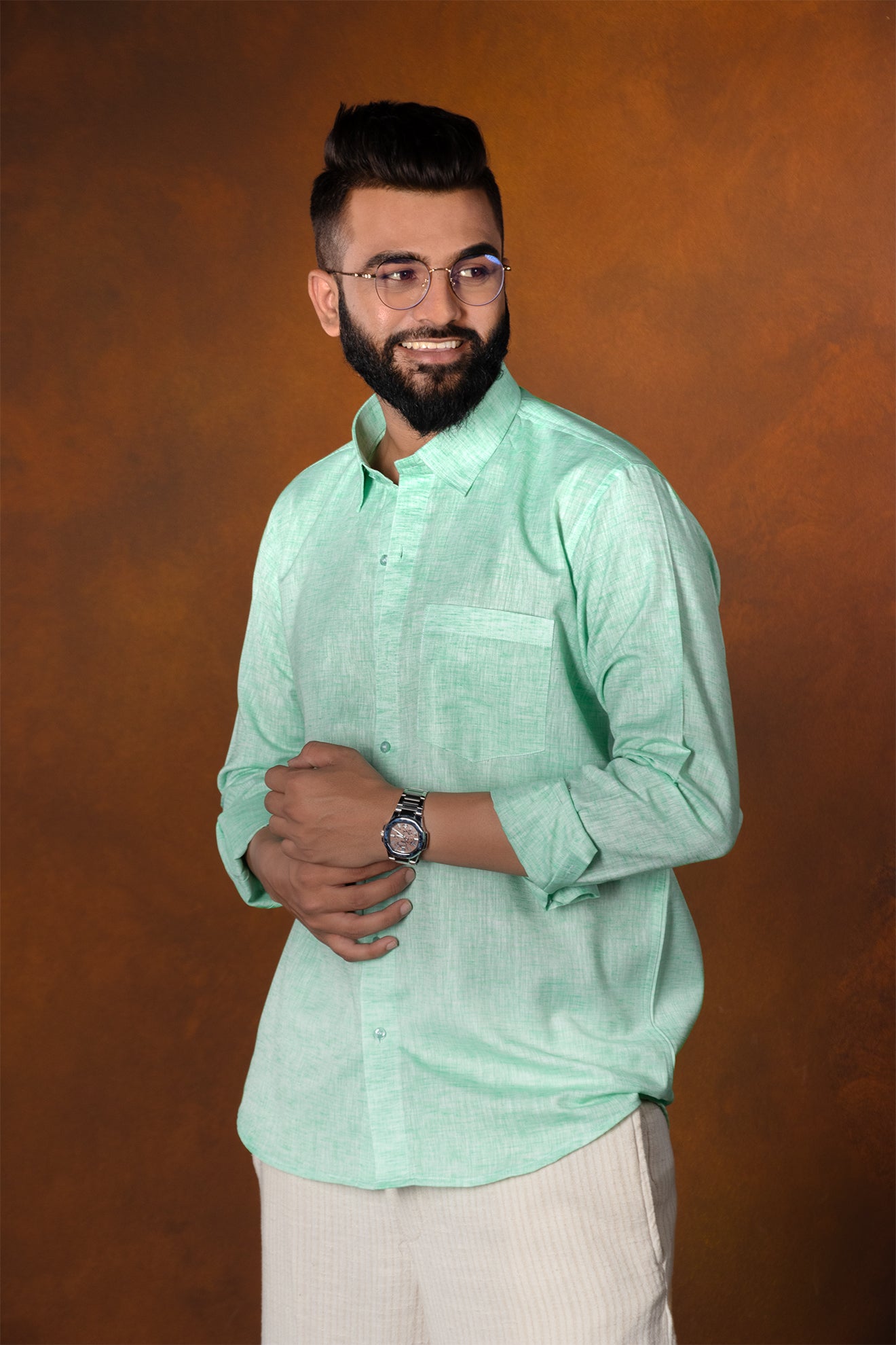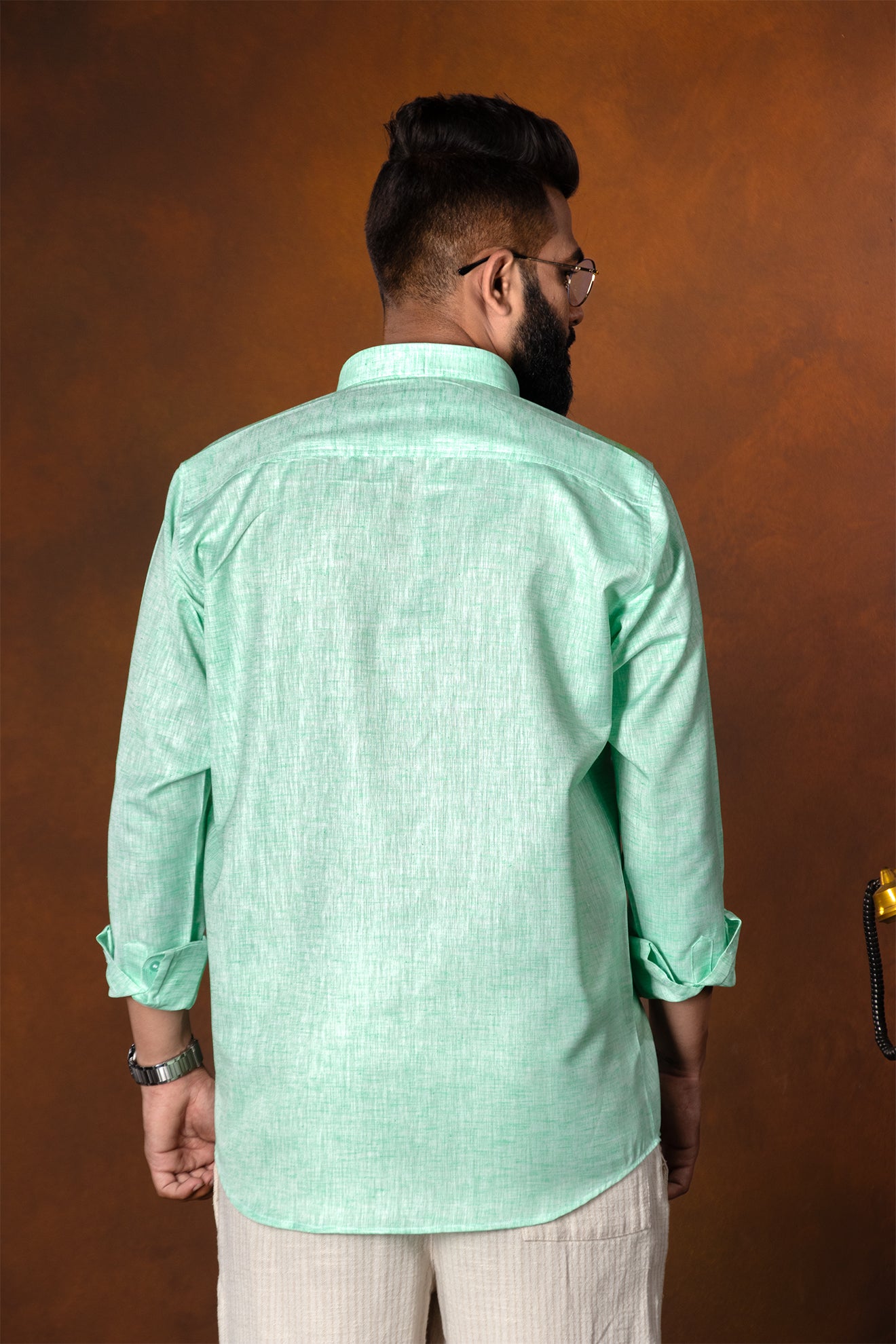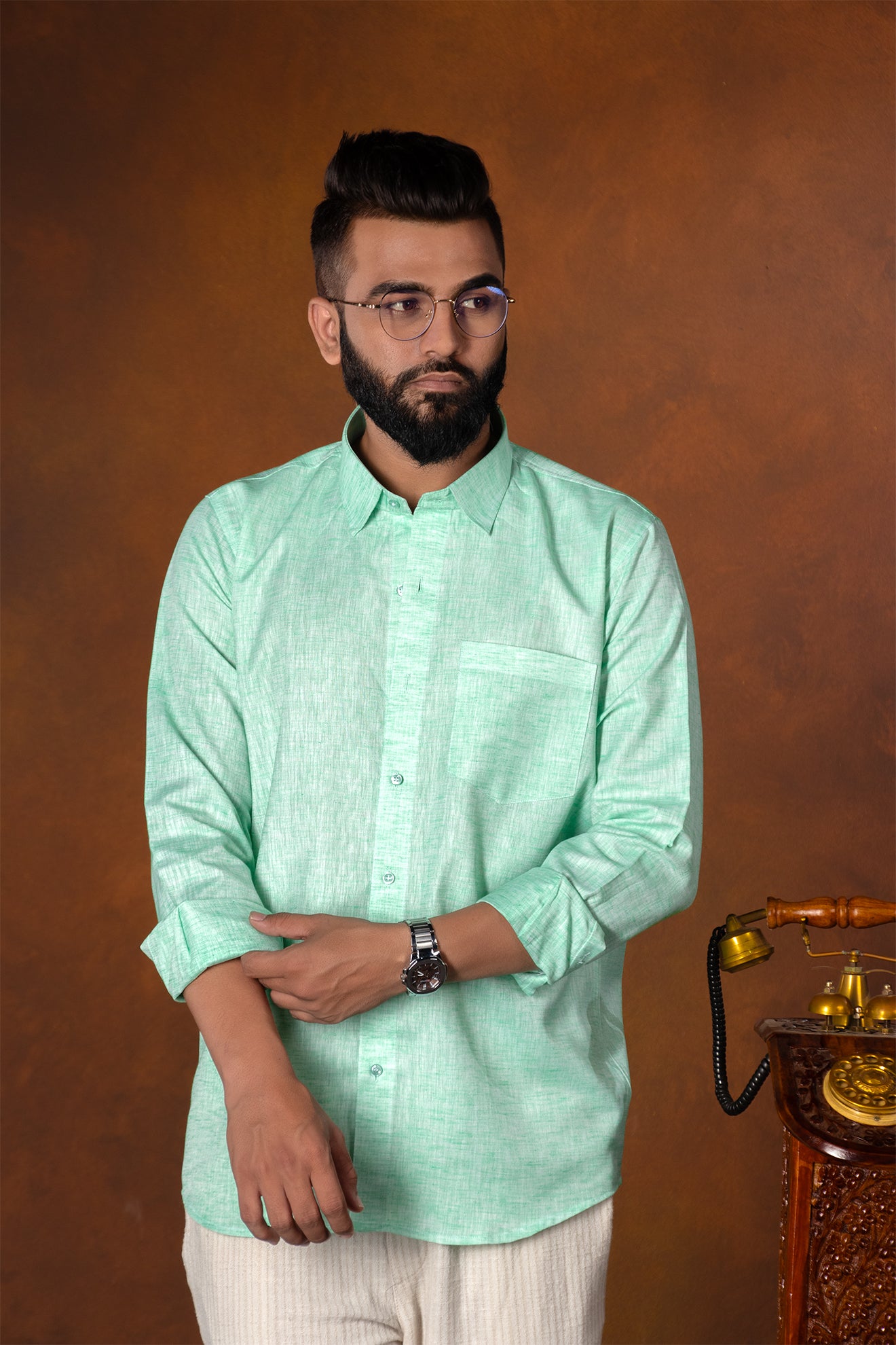 Men's Aqua Green Dyed Cotton Linen Shirt