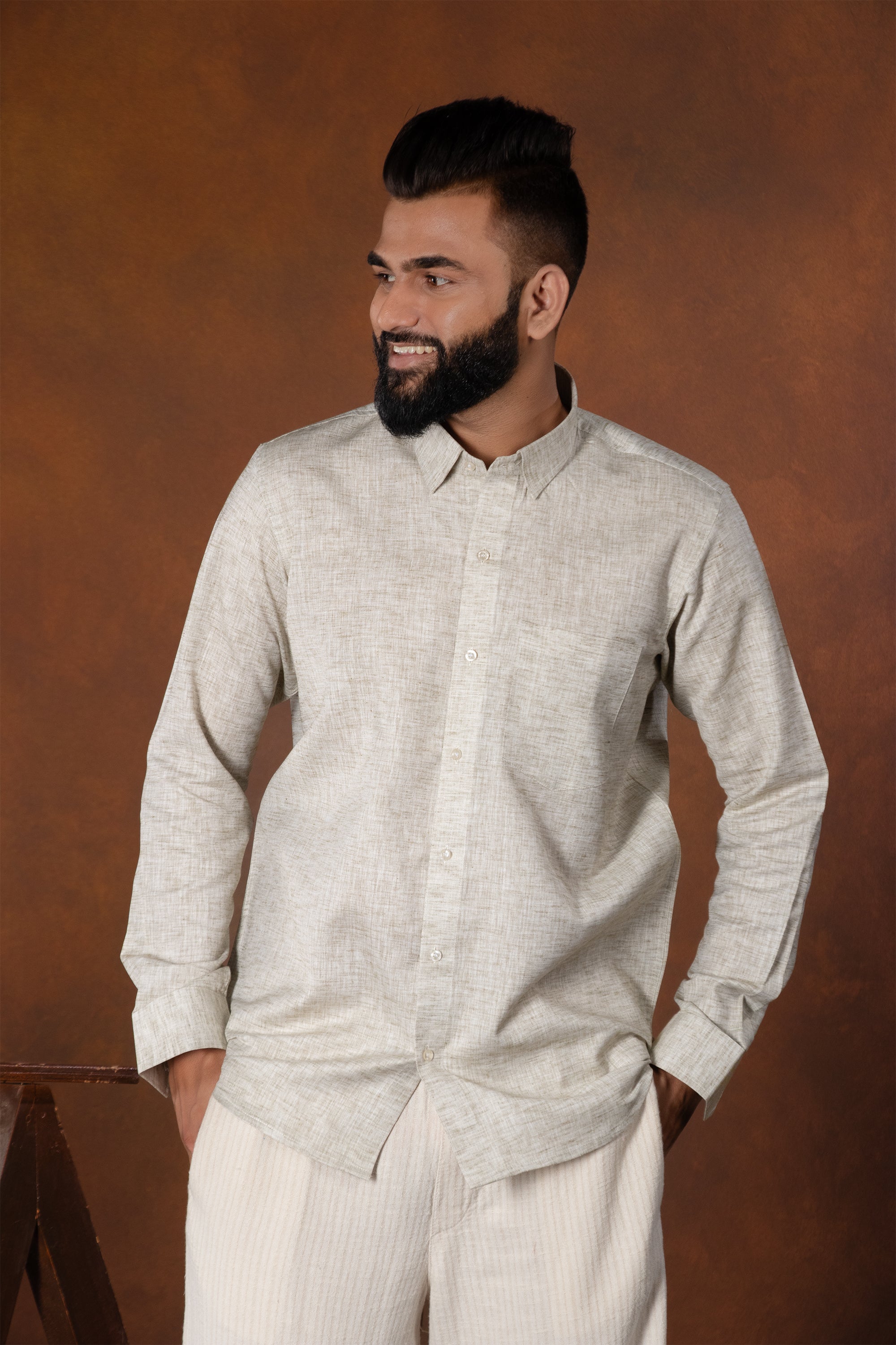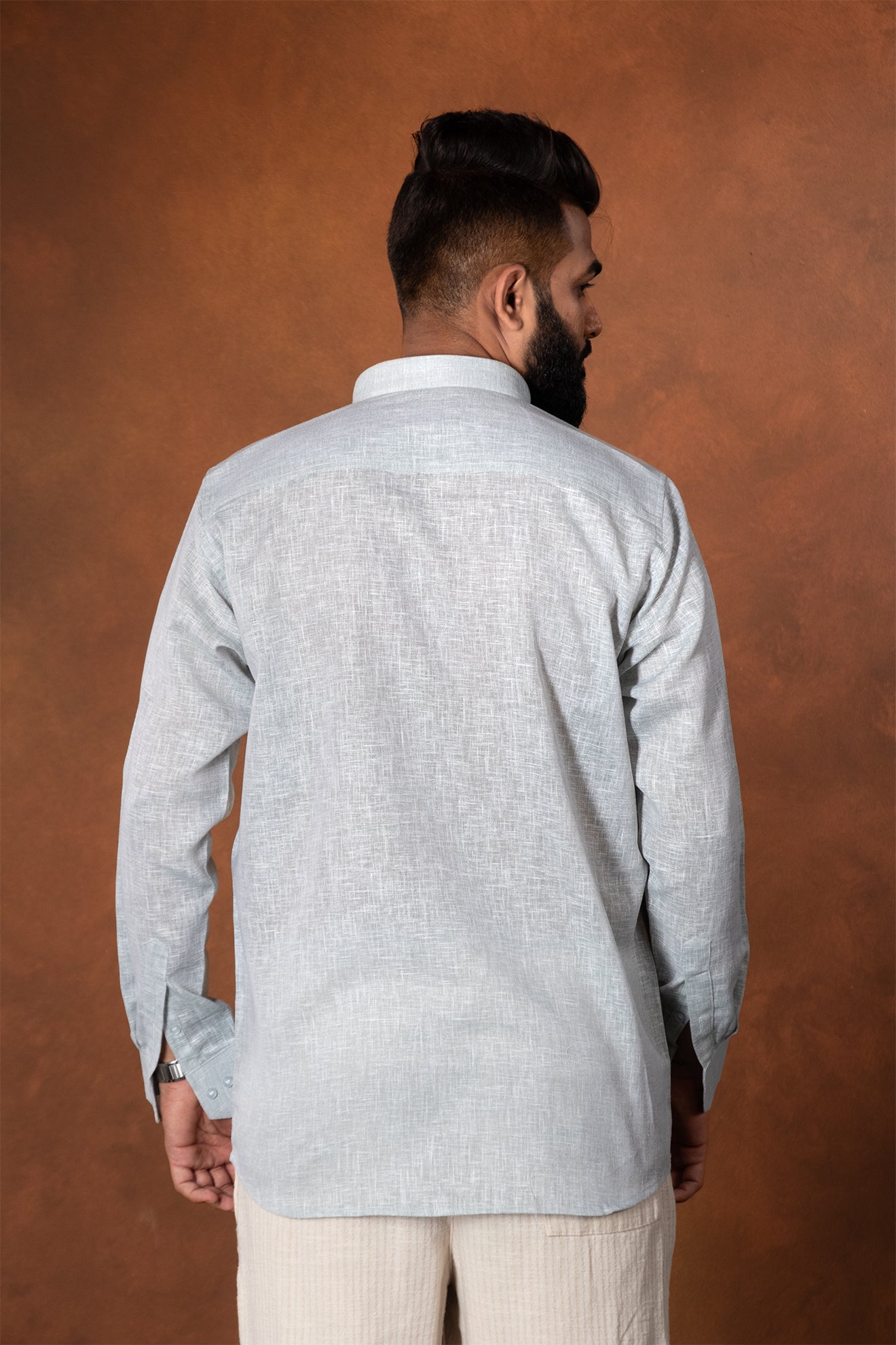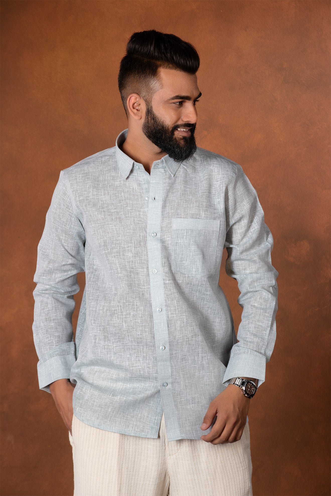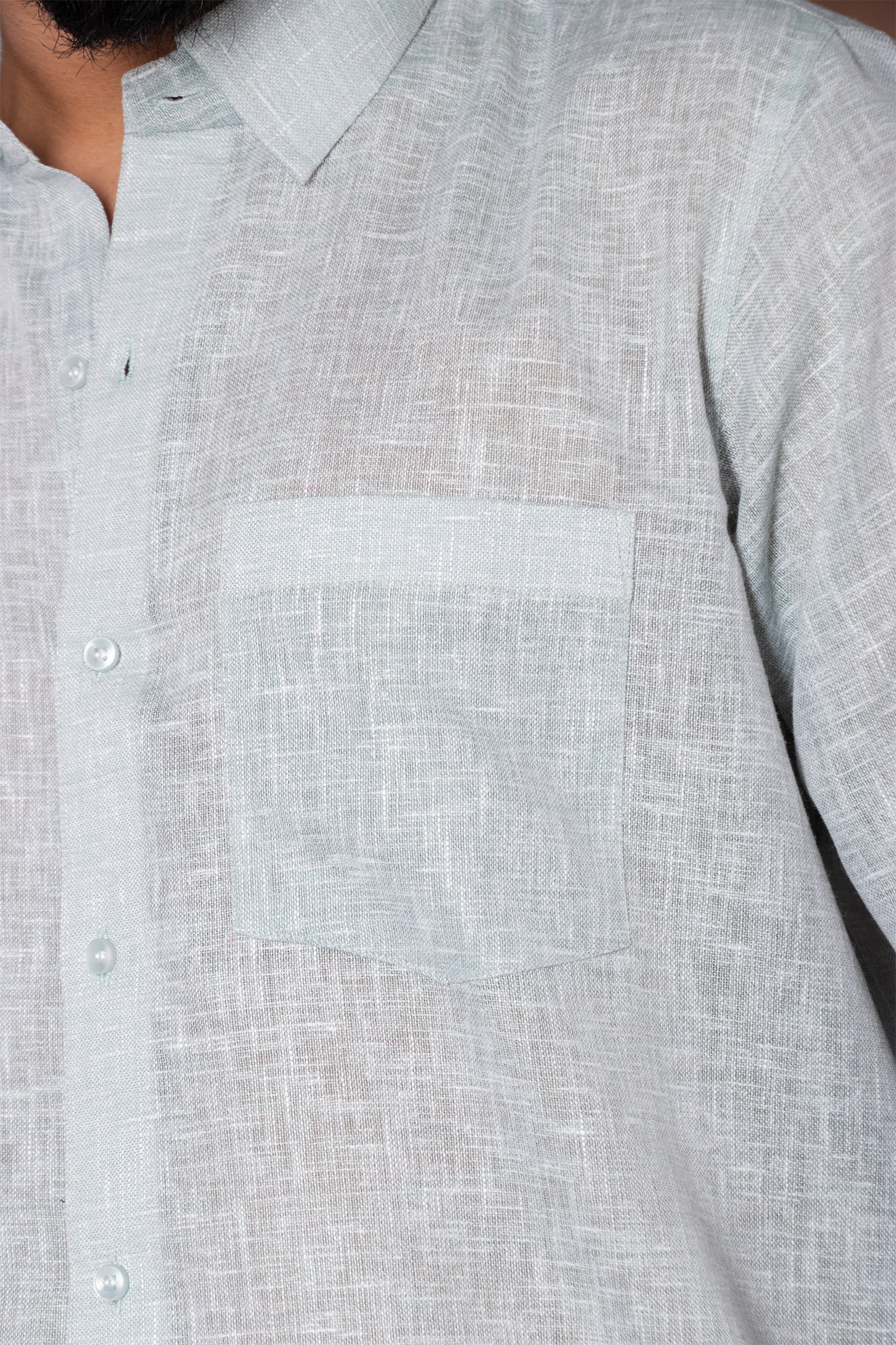 Men's Aqua Green Dyed Cotton Linen Shirt