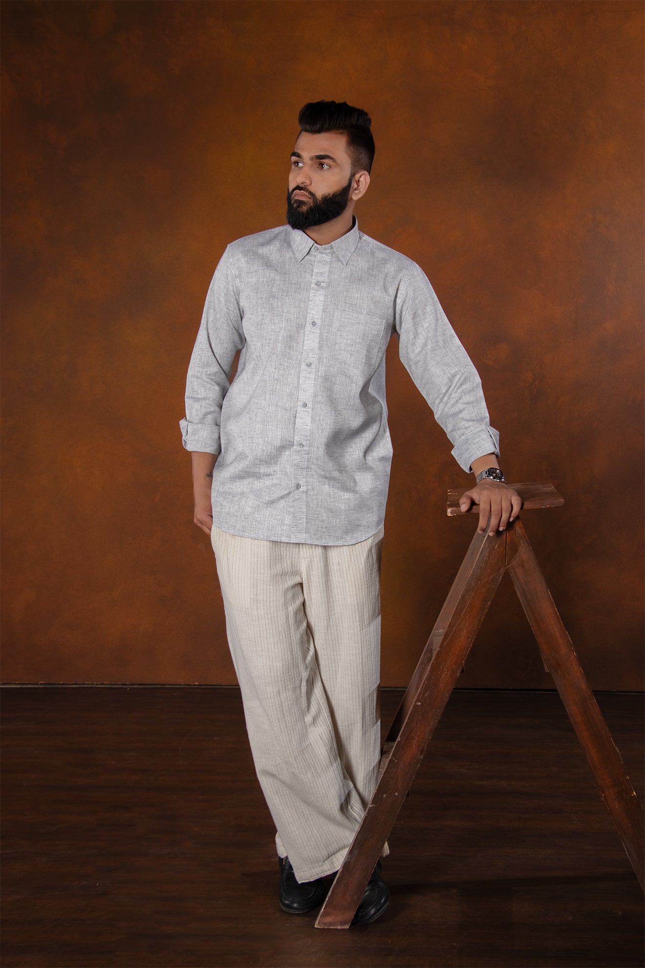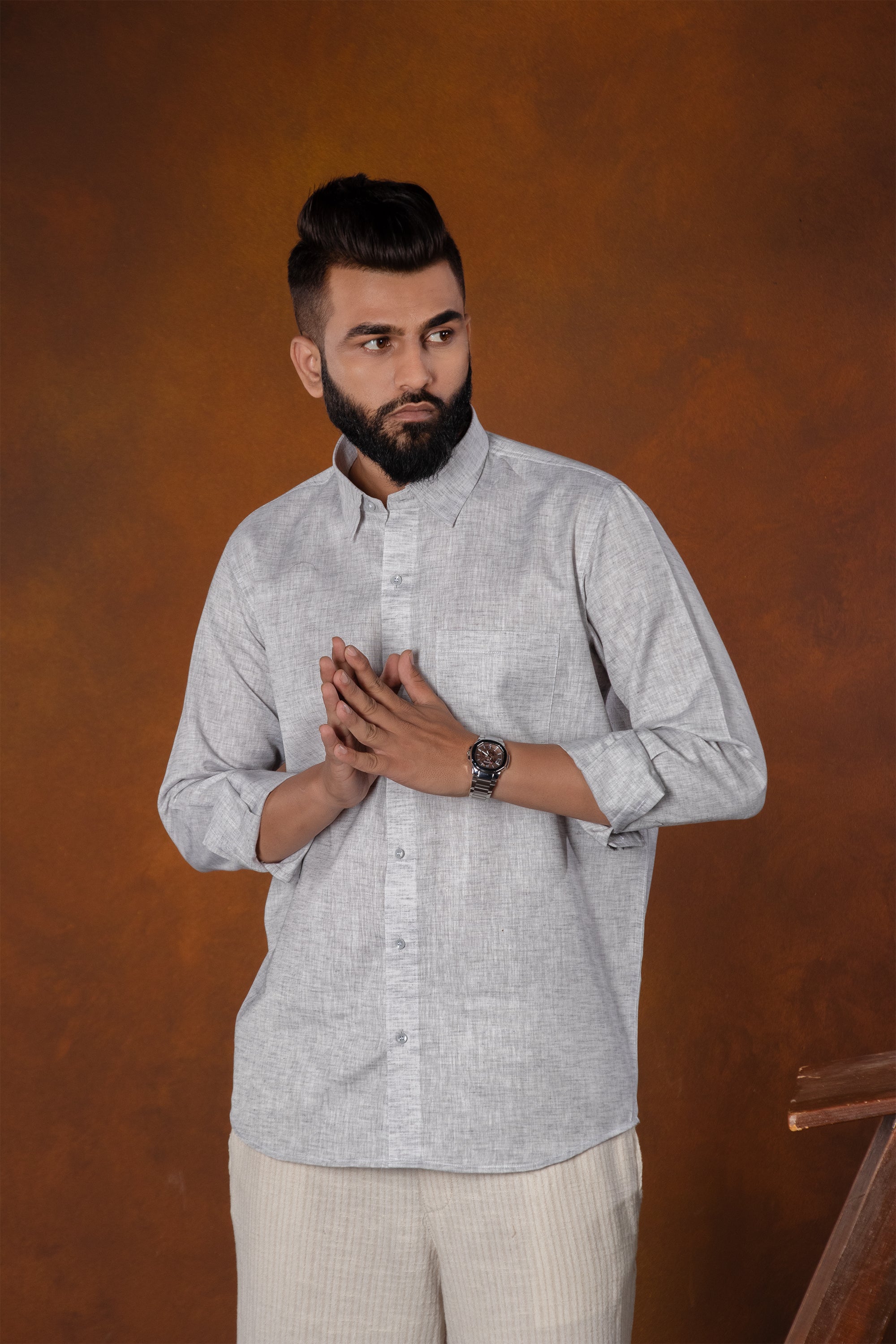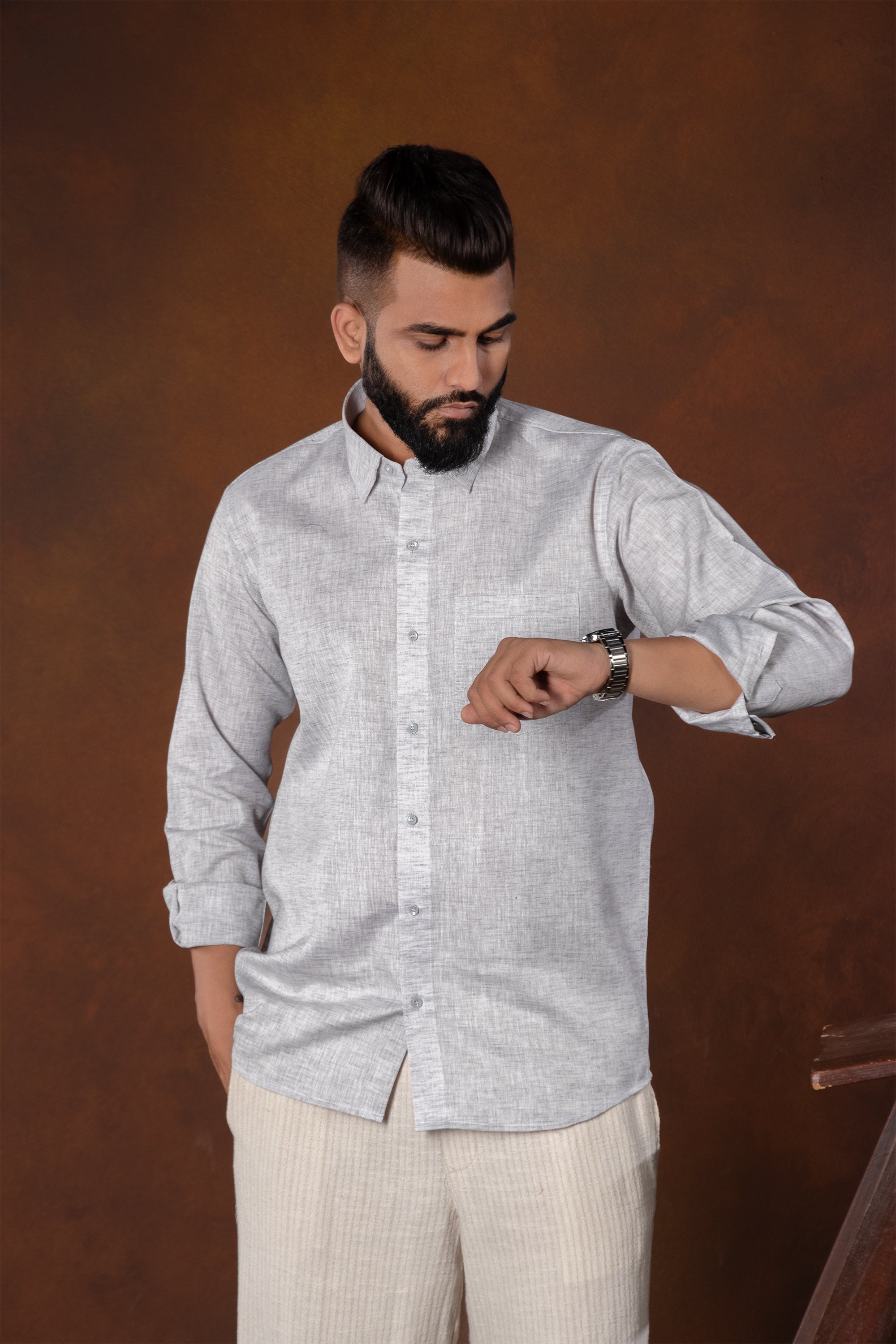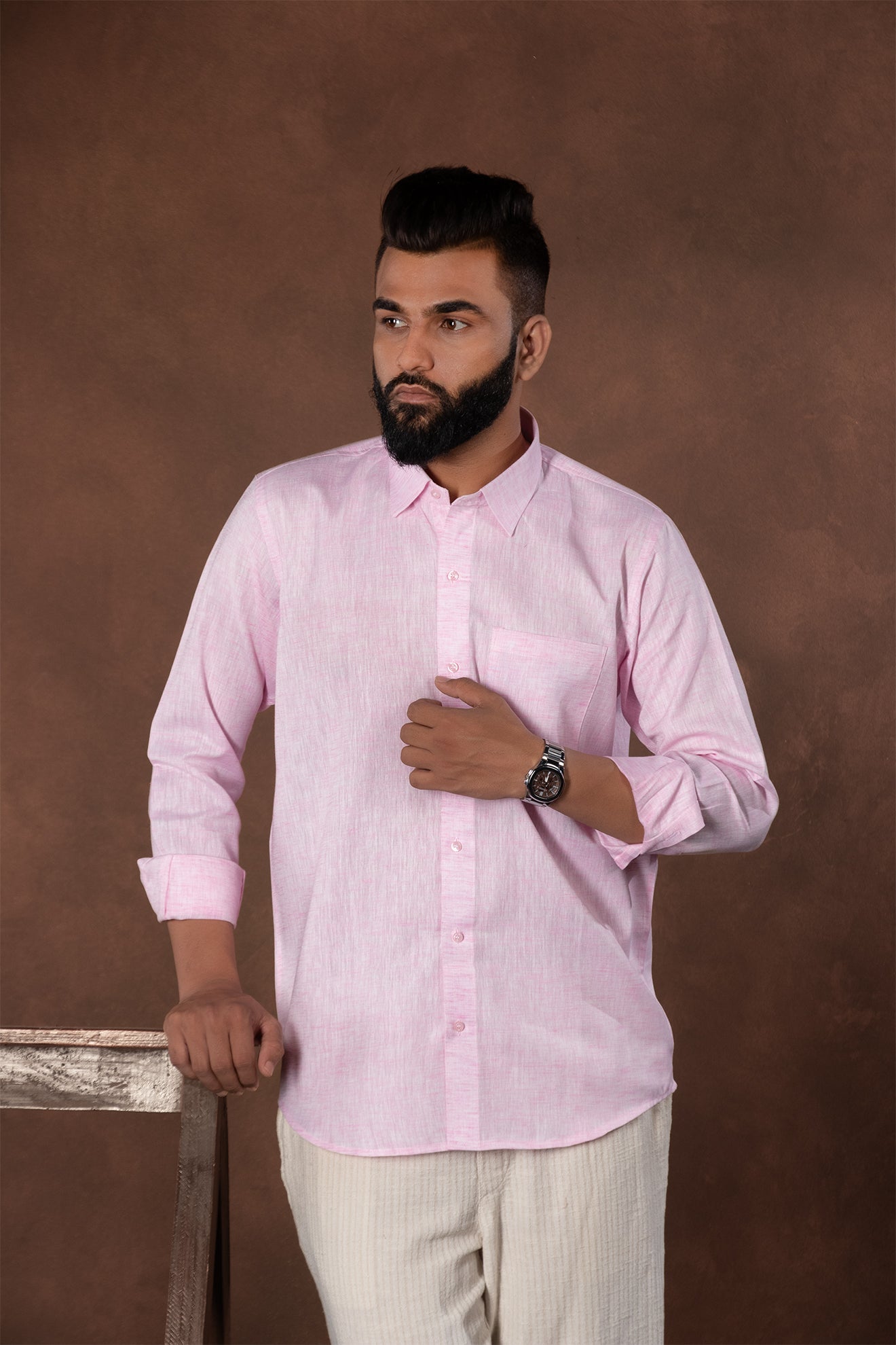Men's Aqua Green Dyed Cotton Linen Shirt