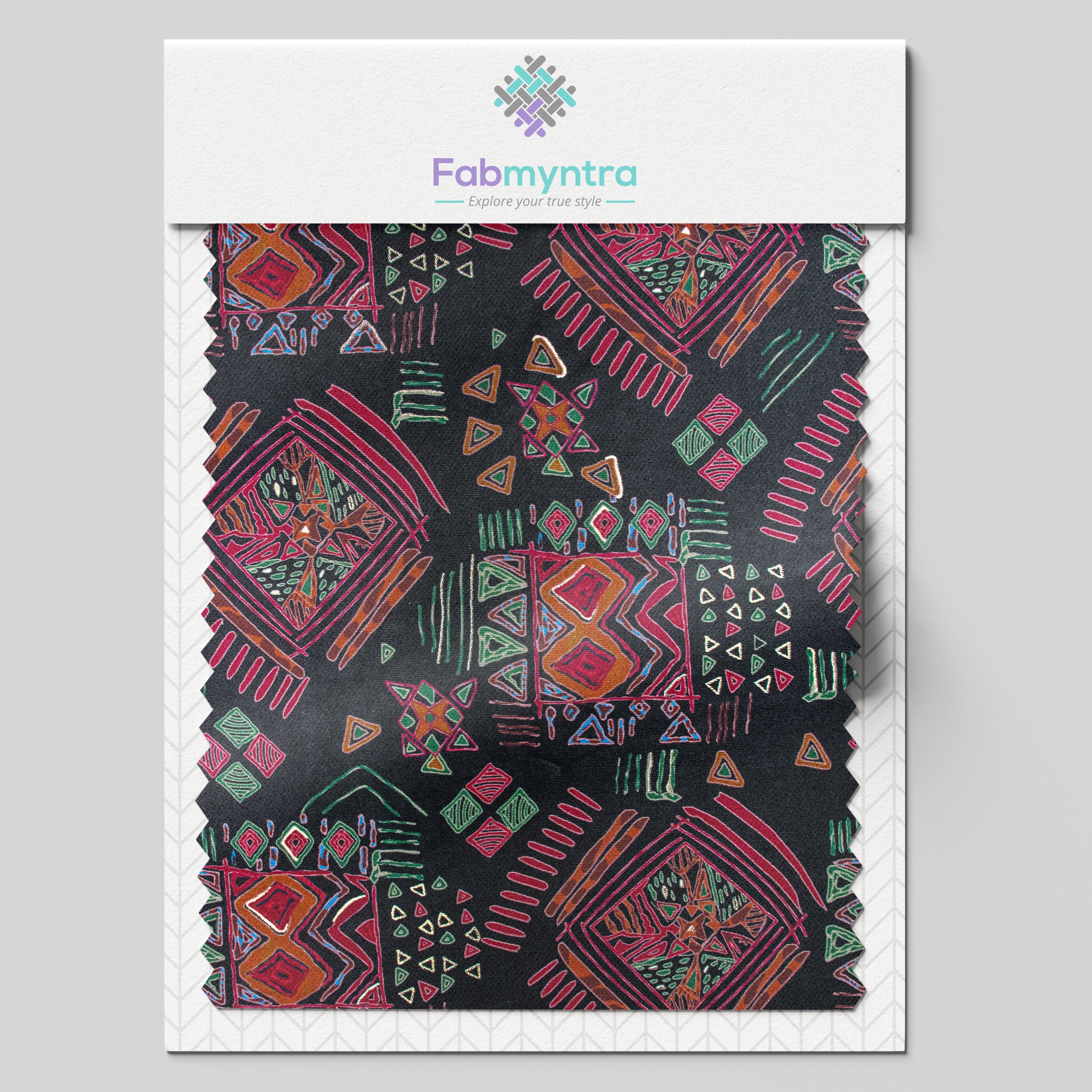 Tribal Gamthi Pattern Foil Digital Print Lycra Fabric