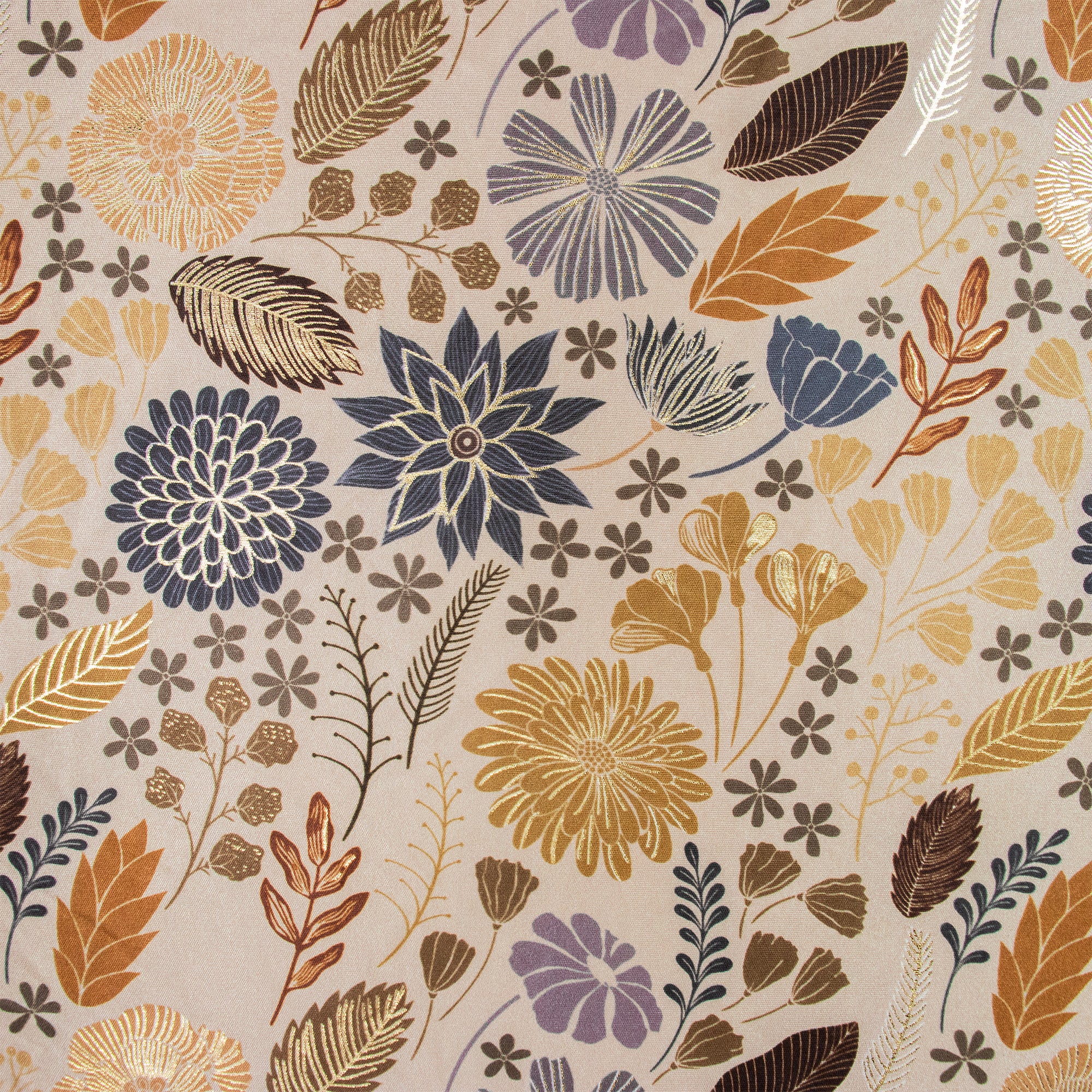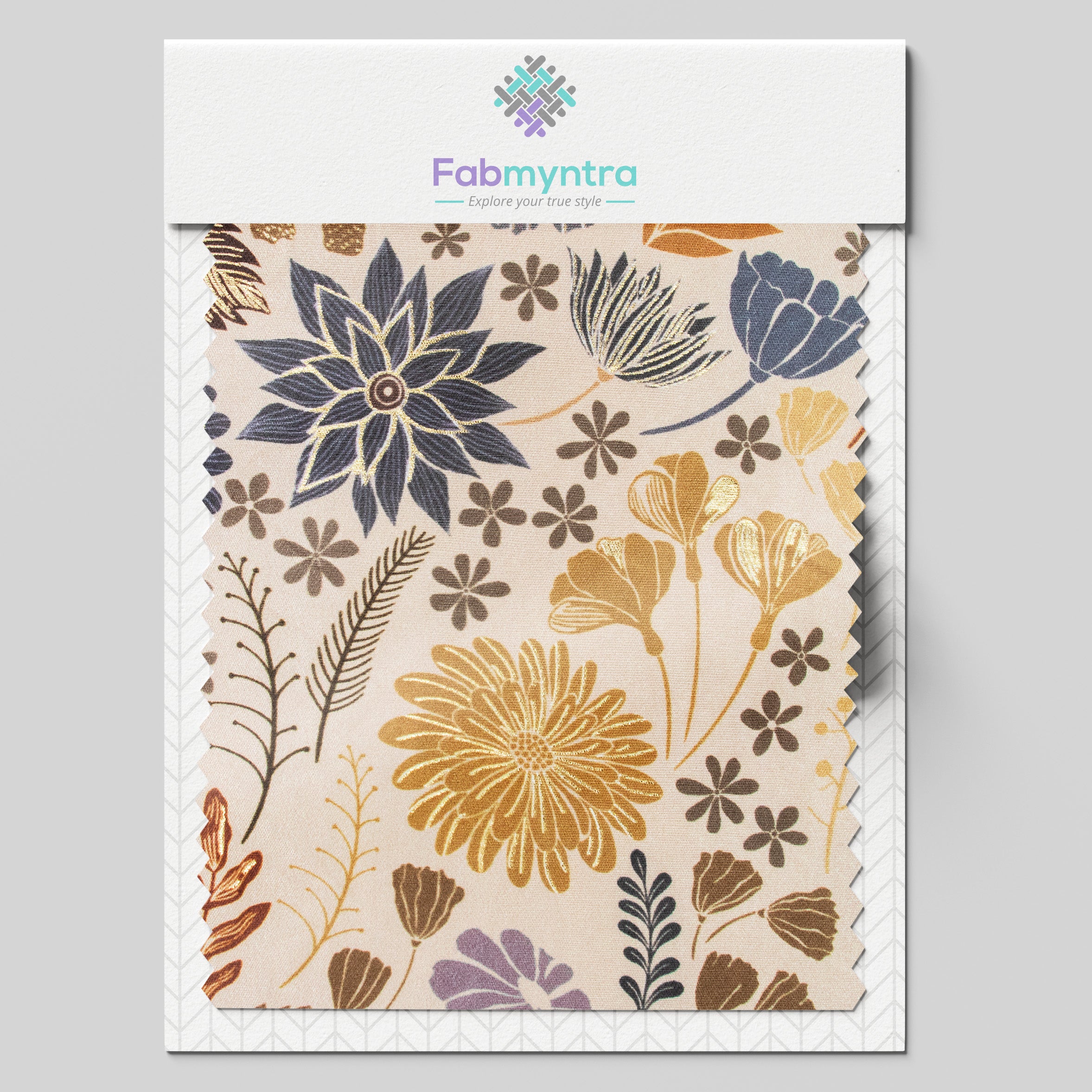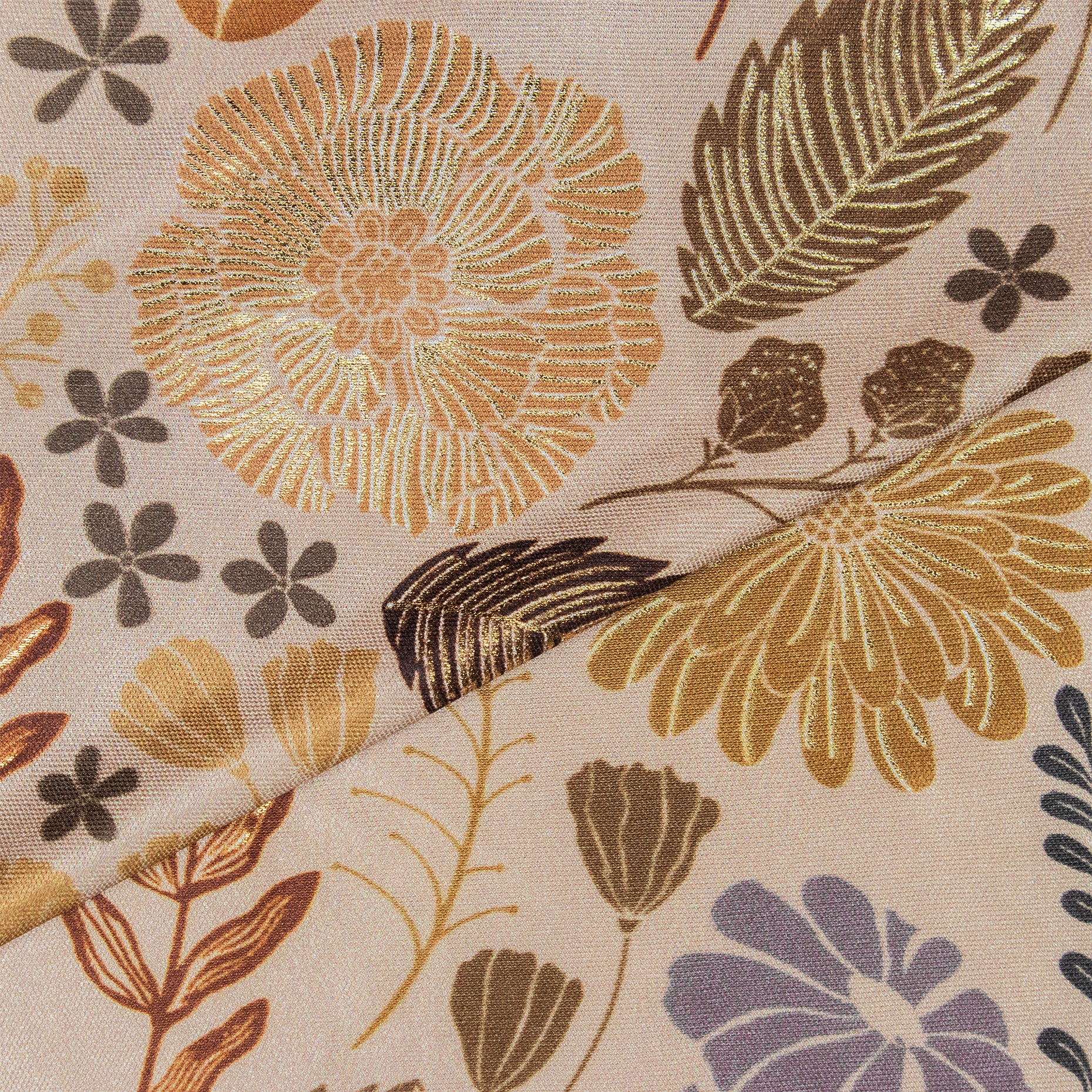 Beige Floral Pattern Foil Digital Print Lycra Fabric