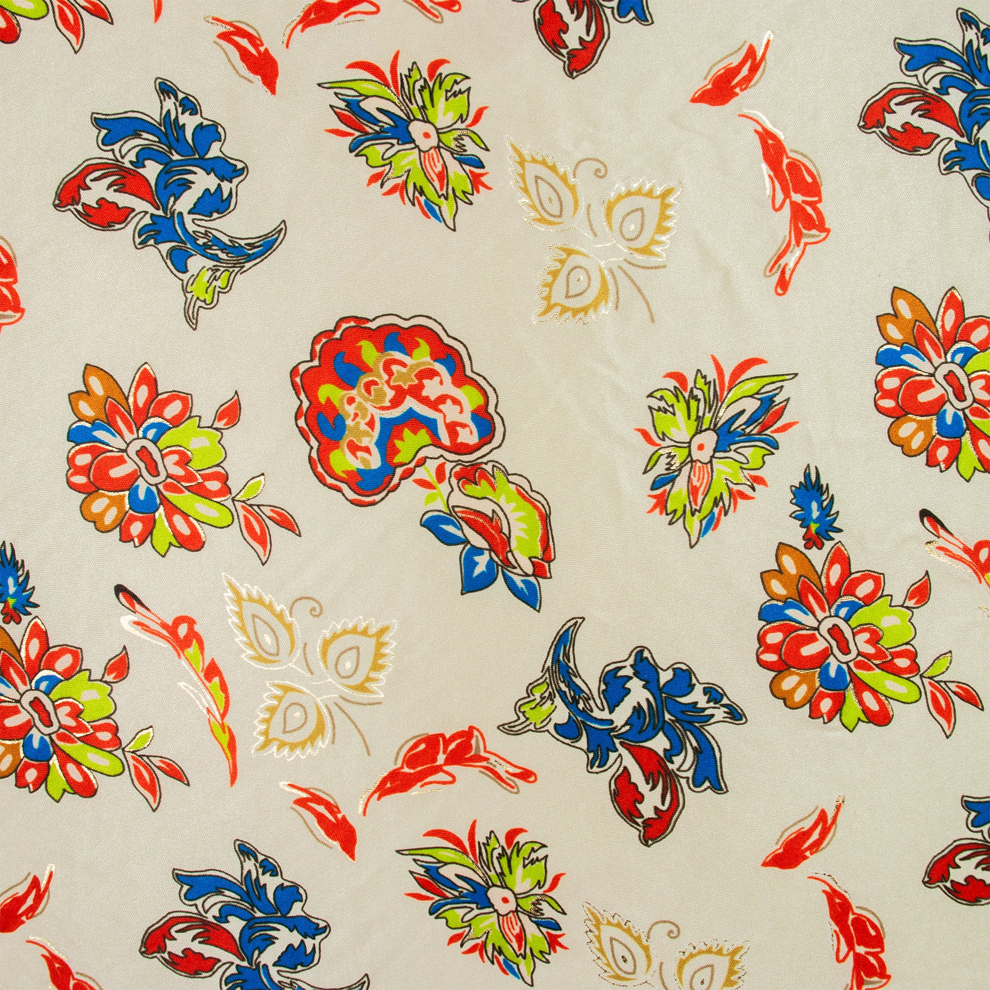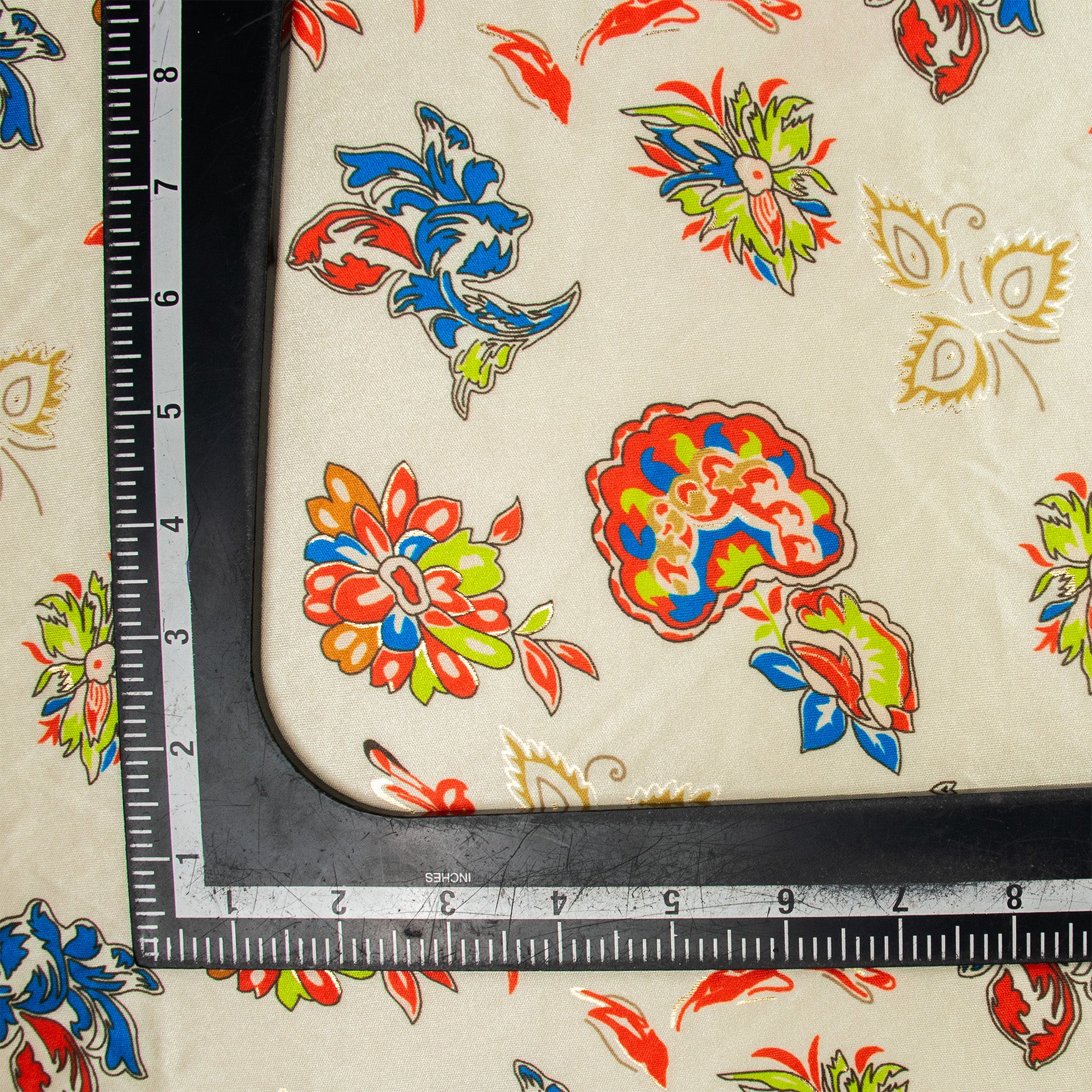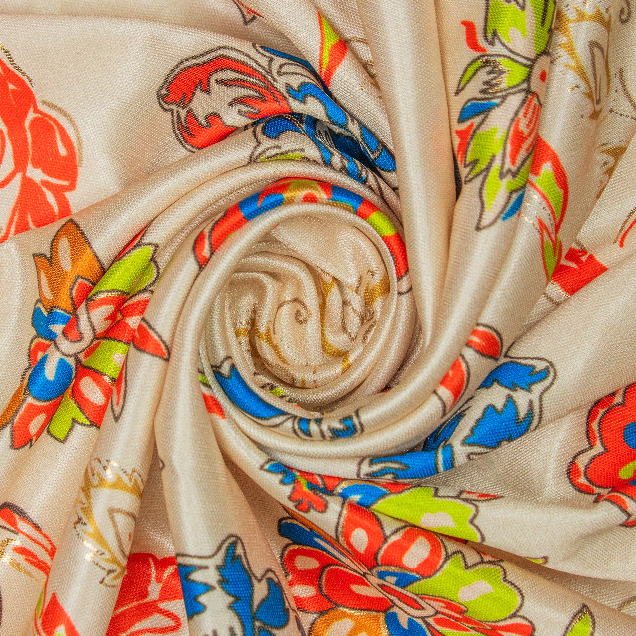 Beige Floral Pattern Foil Digital Print Lycra Fabric