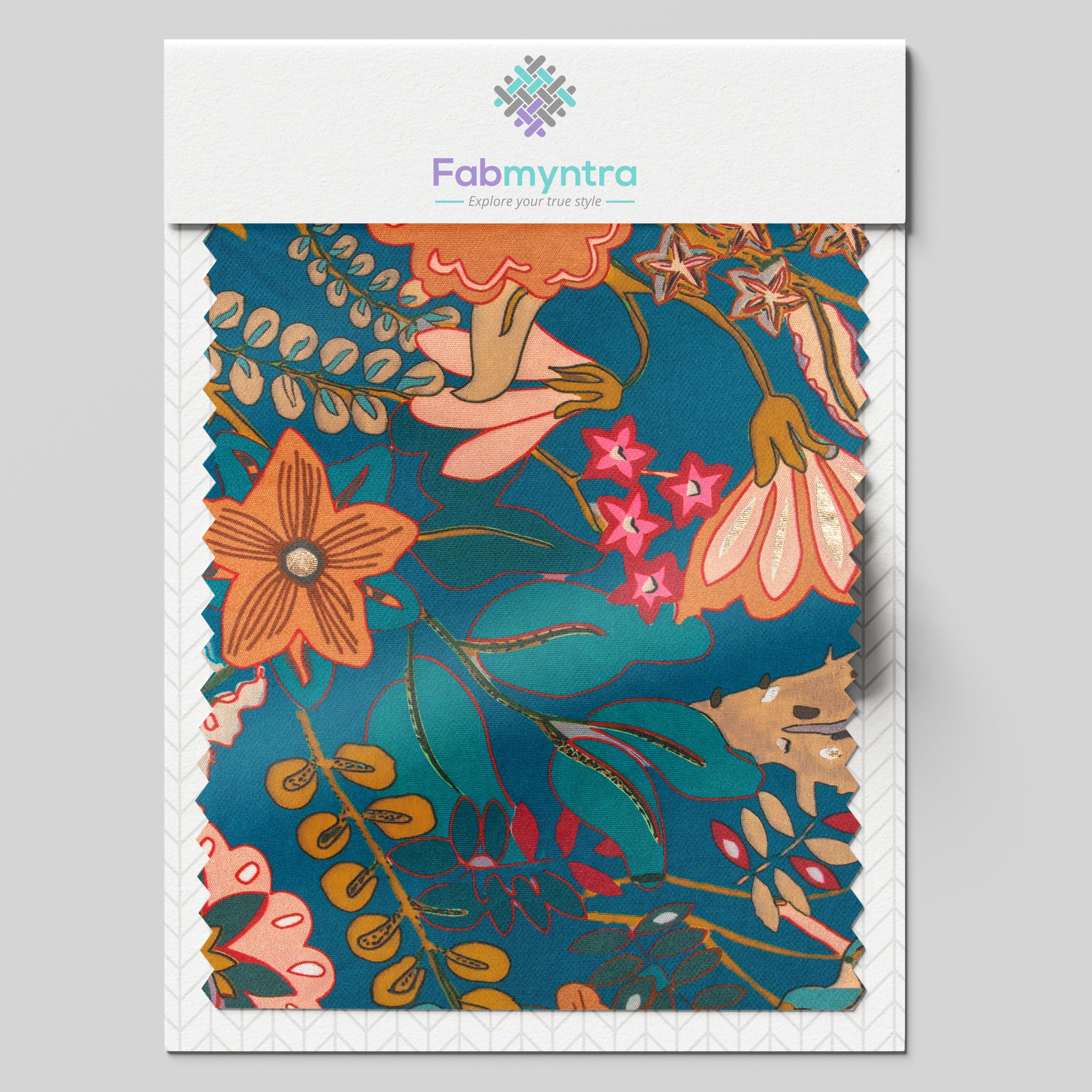 Floral Ethnic Pattern Foil Digital Print Lycra Fabric