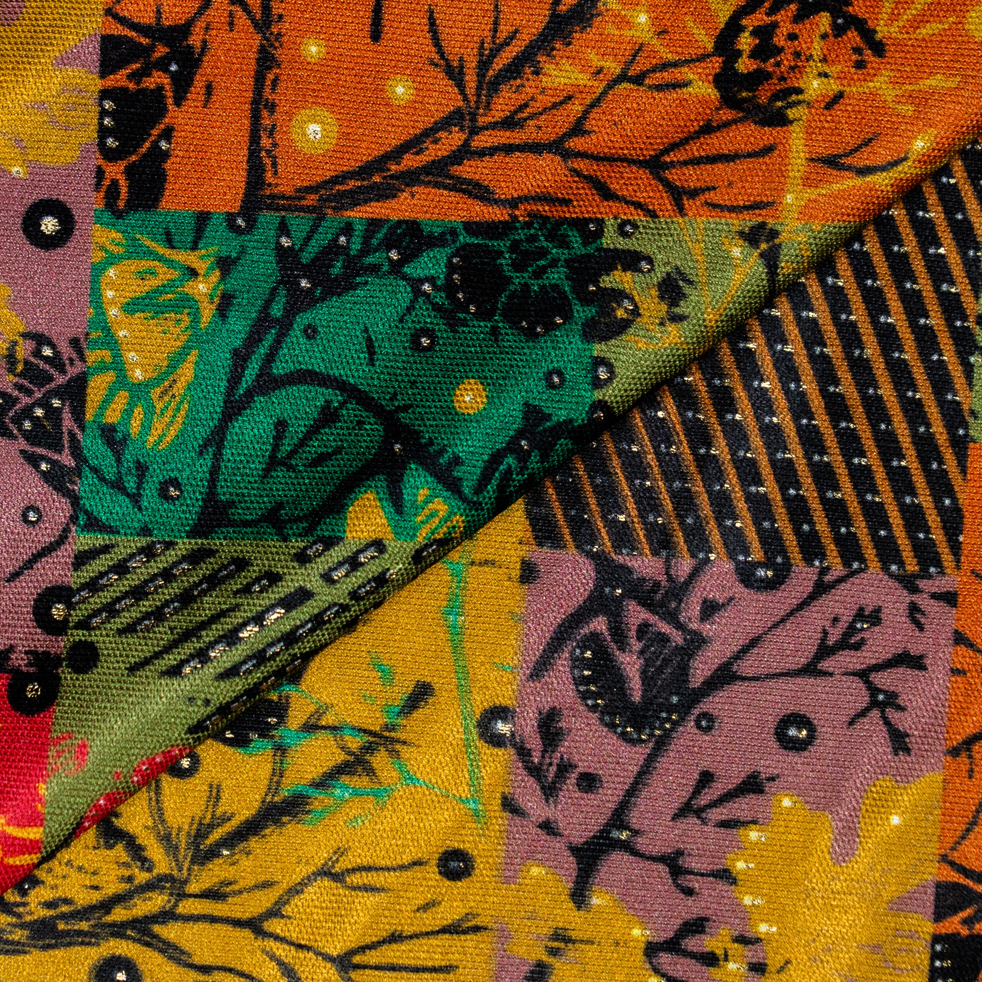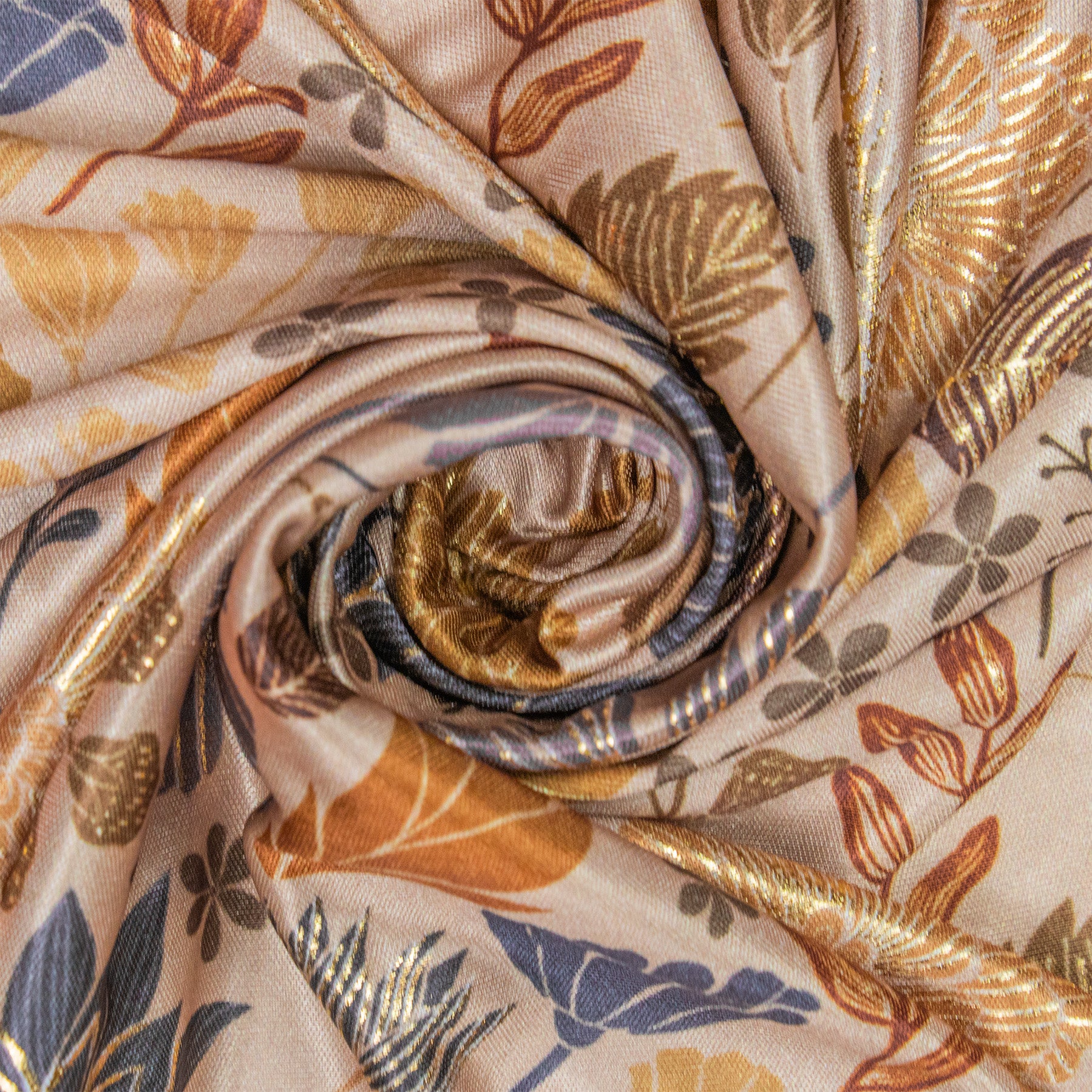 Leaf Pattern Foil Digital Print Lycra Fabric