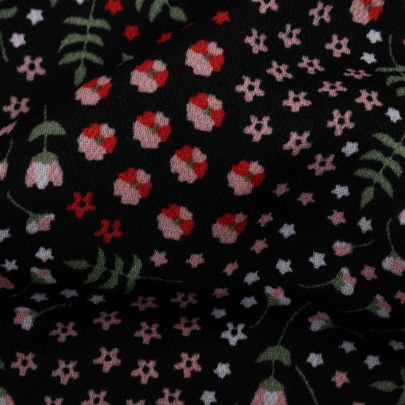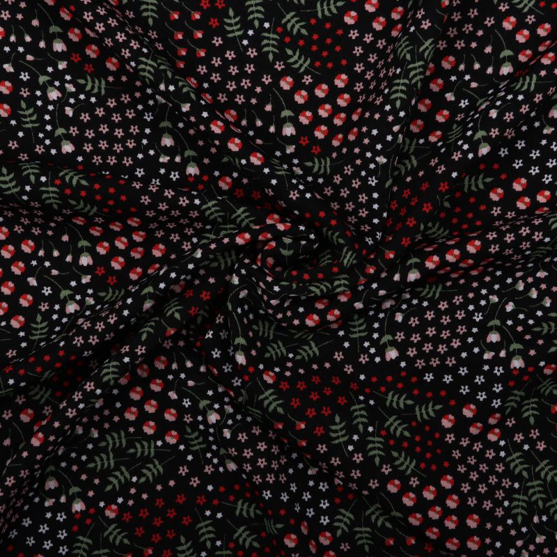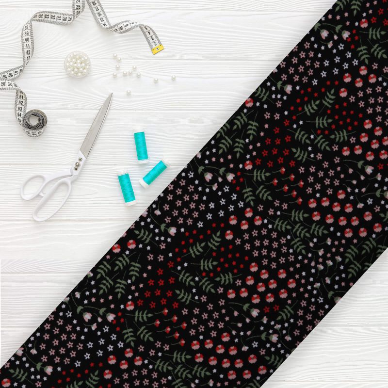 Black And Red Floral Pattern Screen Print BSY Fabric