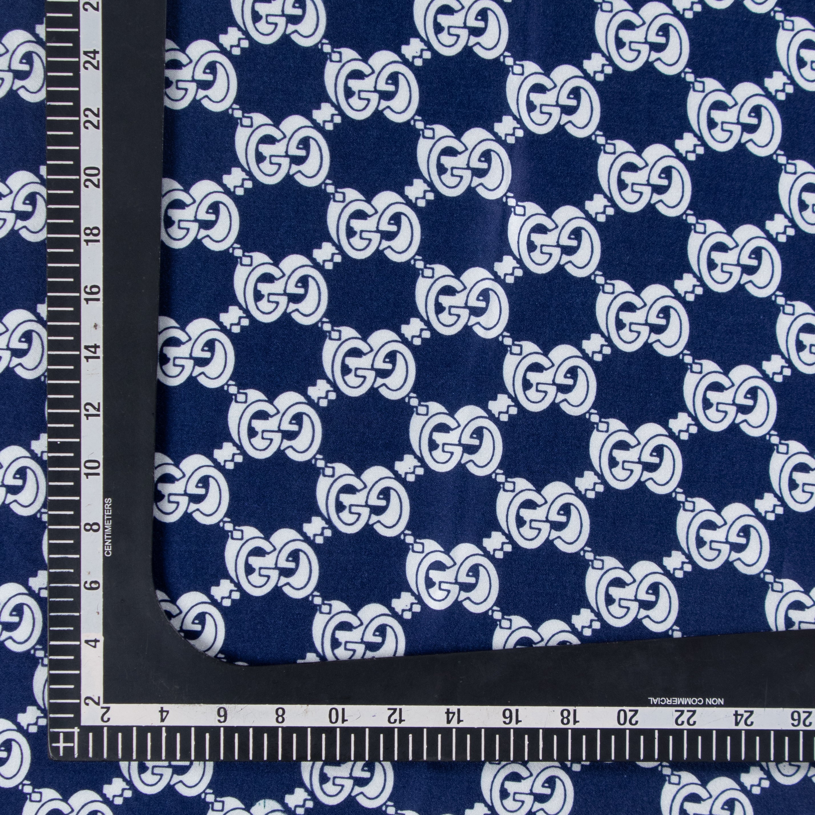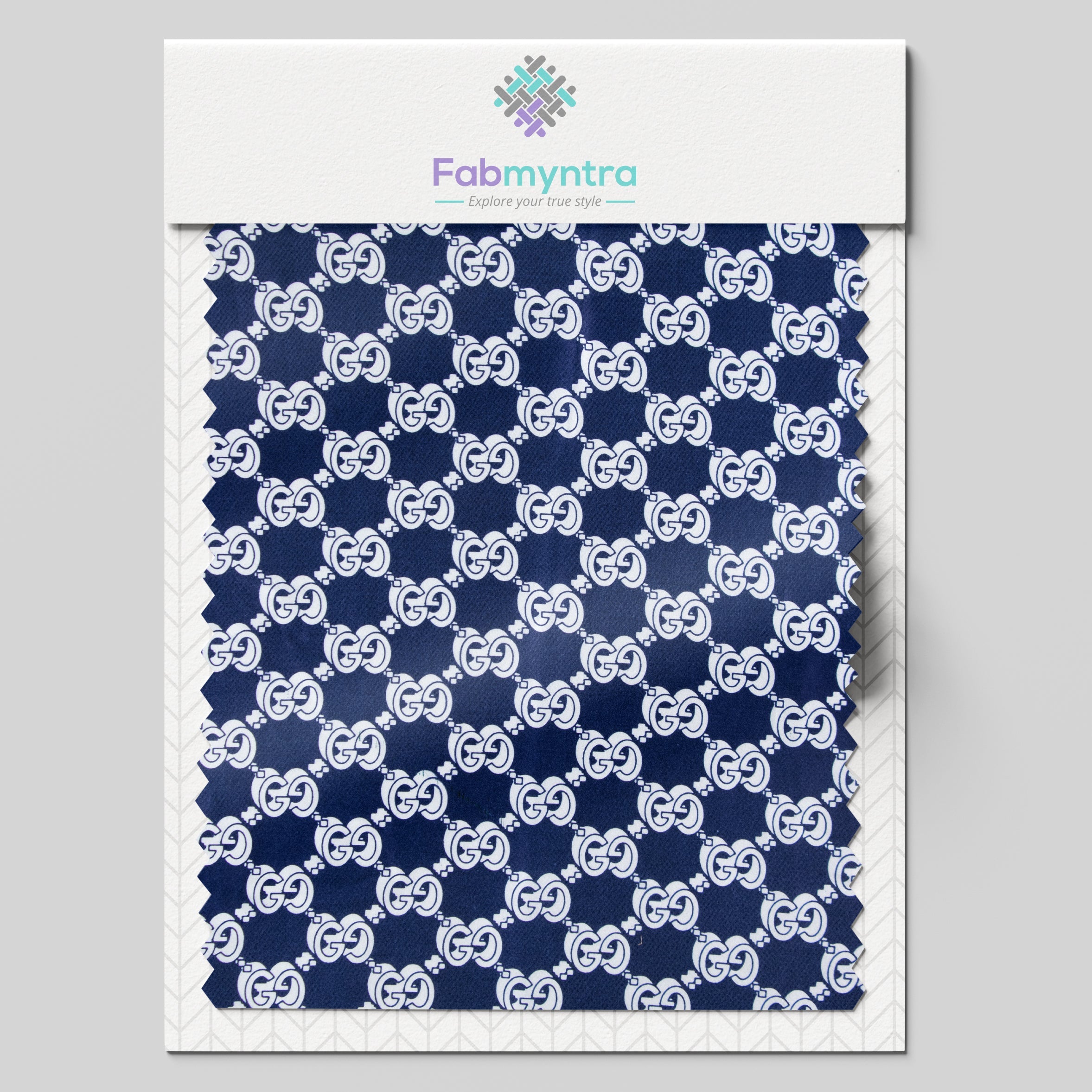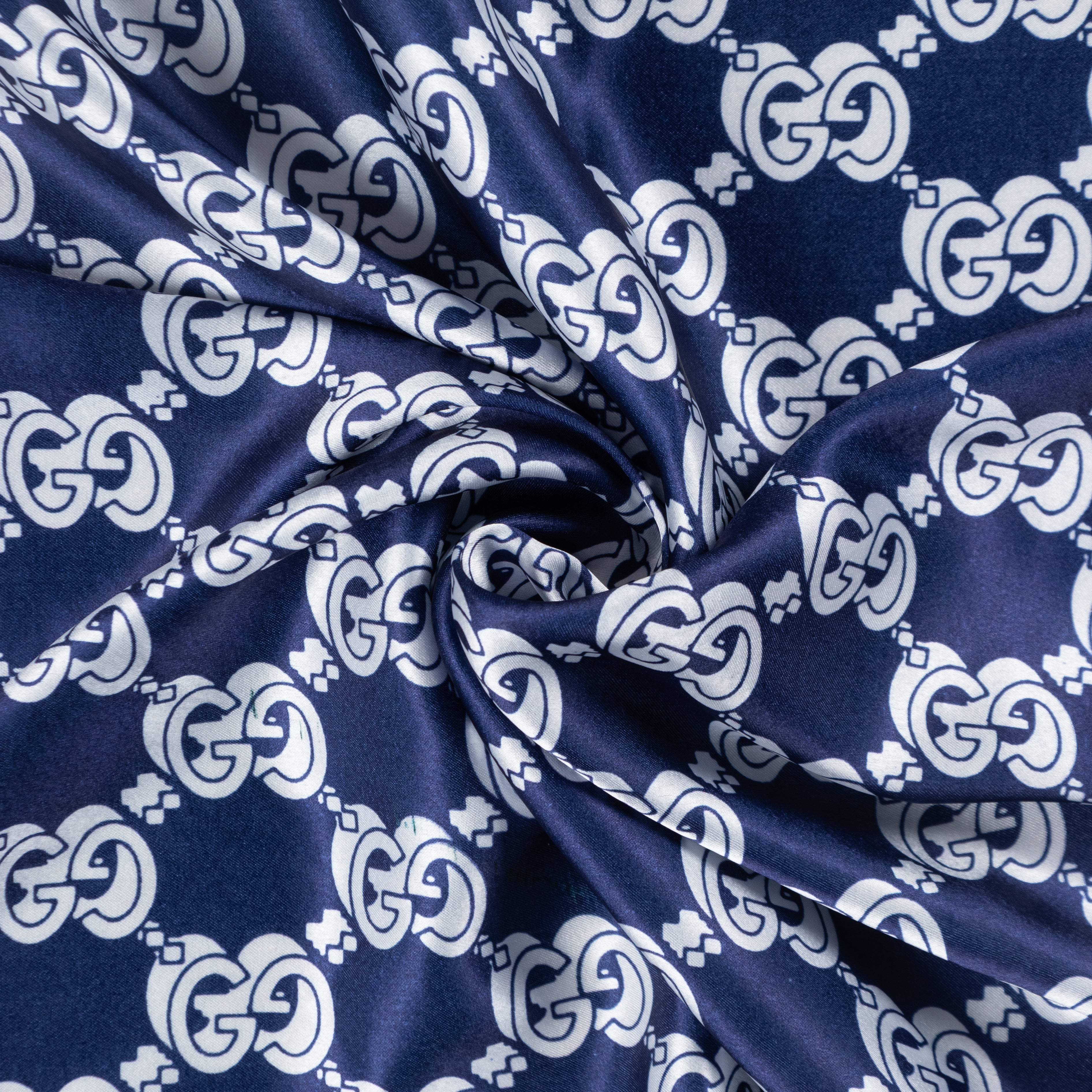 Blue And White Alphabet Pattern Digital Print Japan Satin Fabric