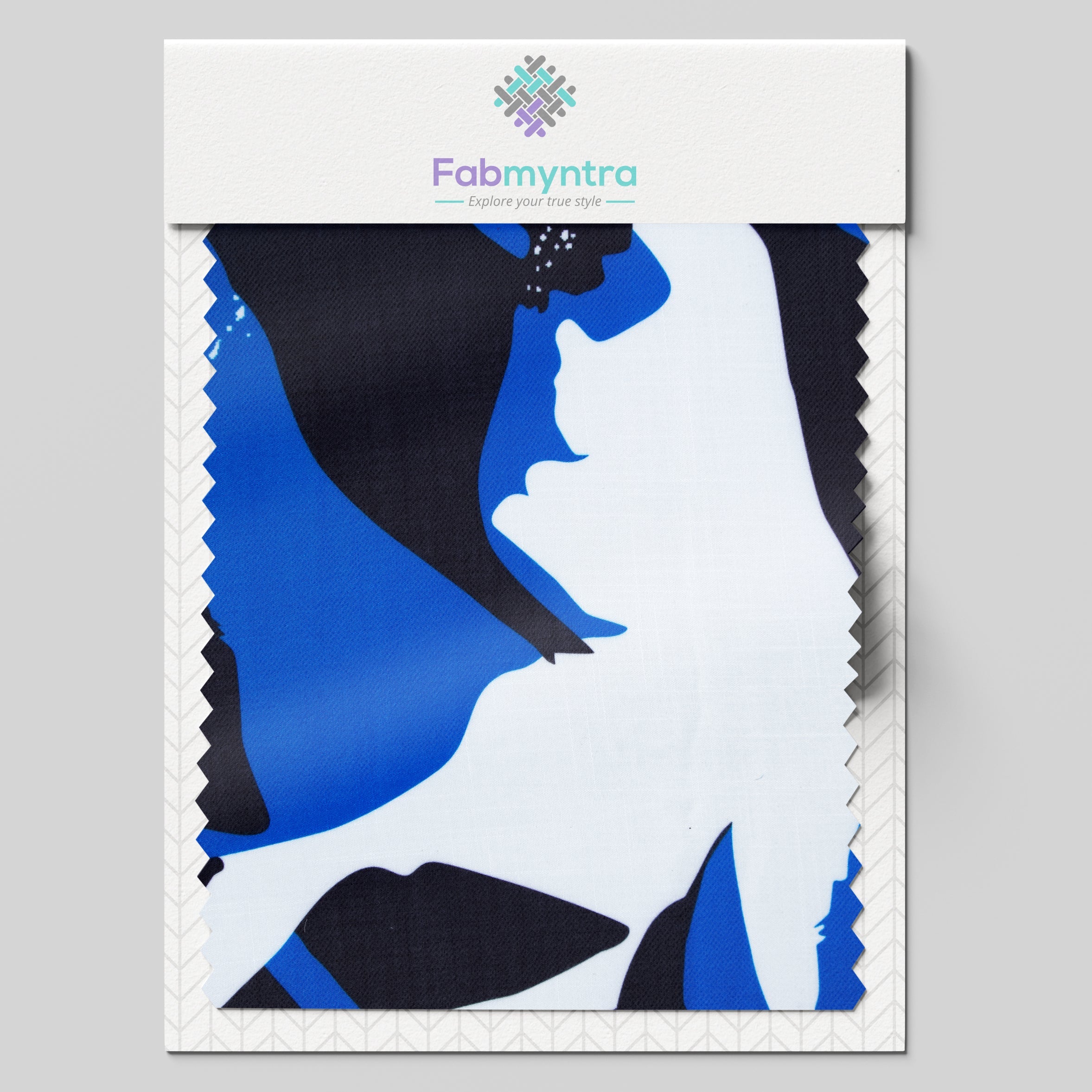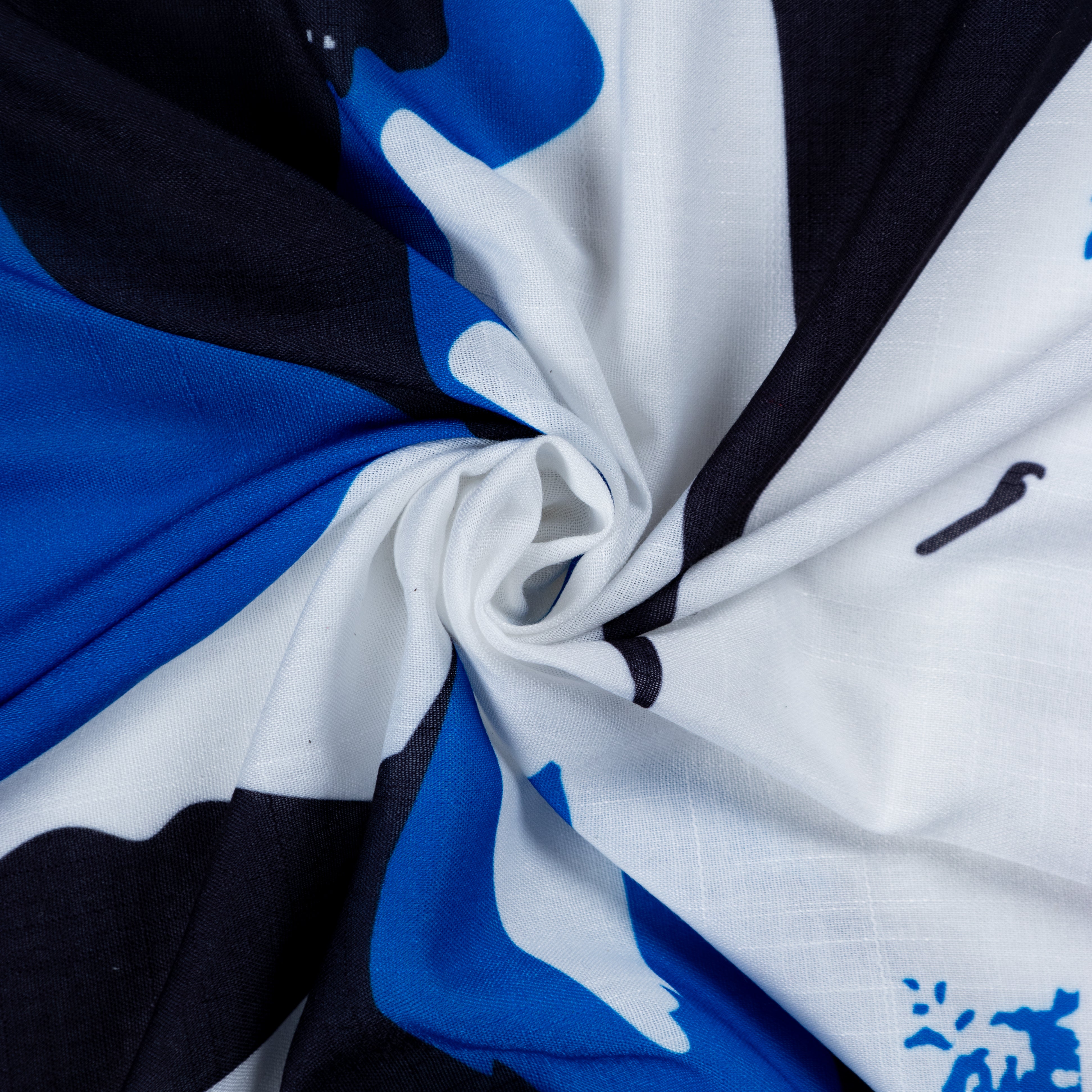 Blue and White Camo Pattern Digital Print Cotton Slub Fabric