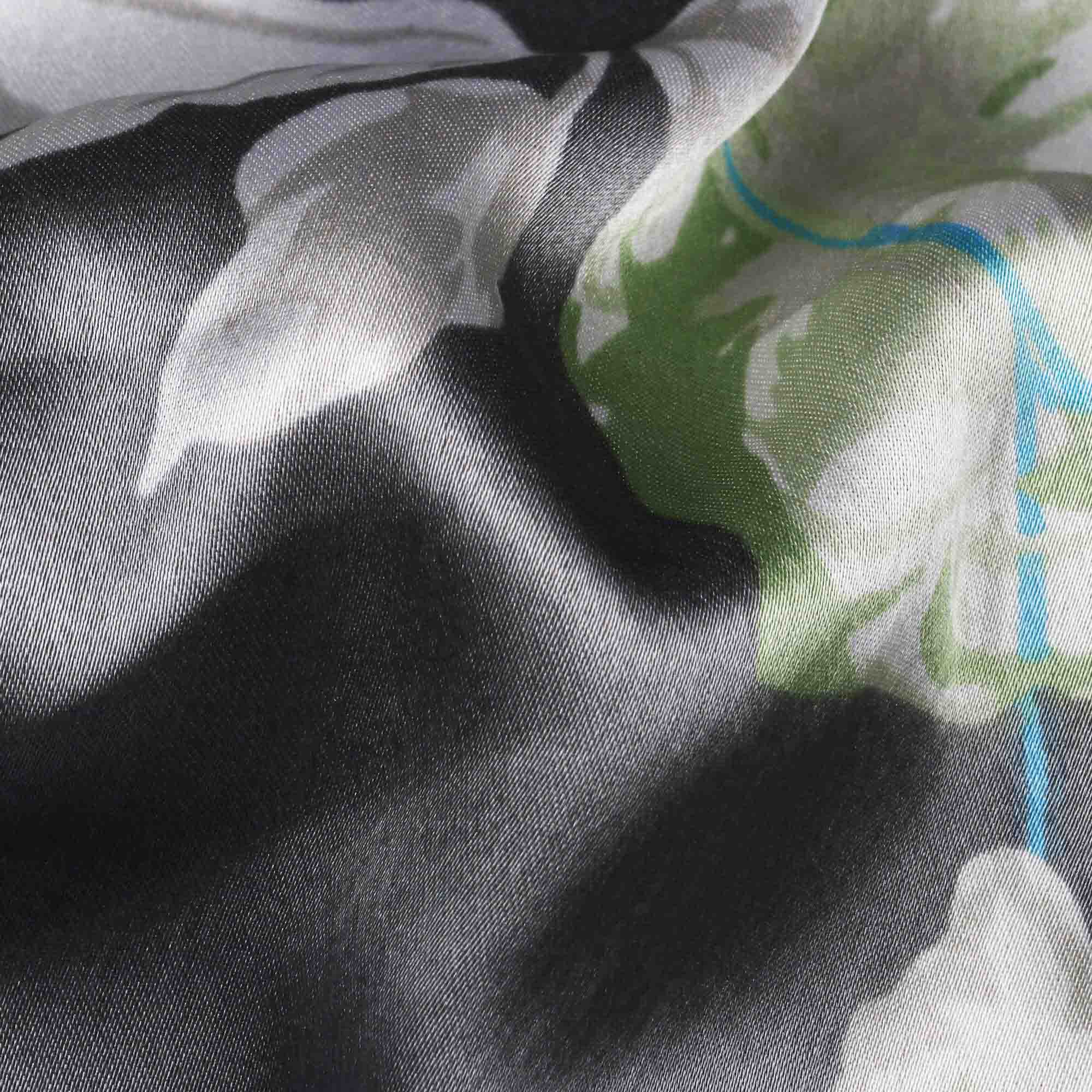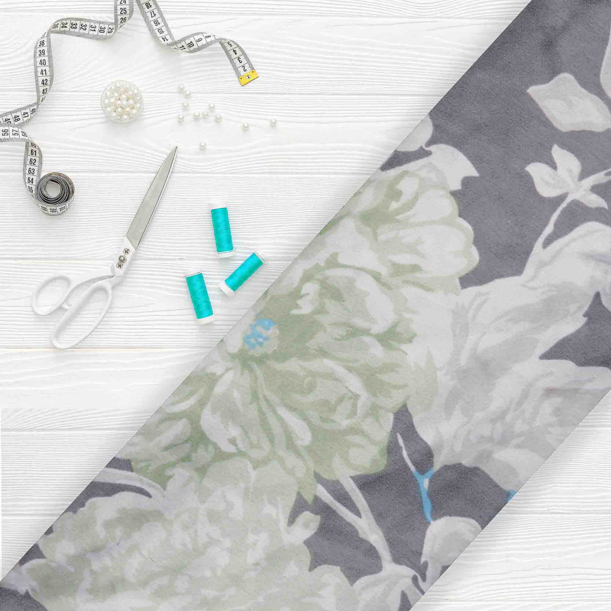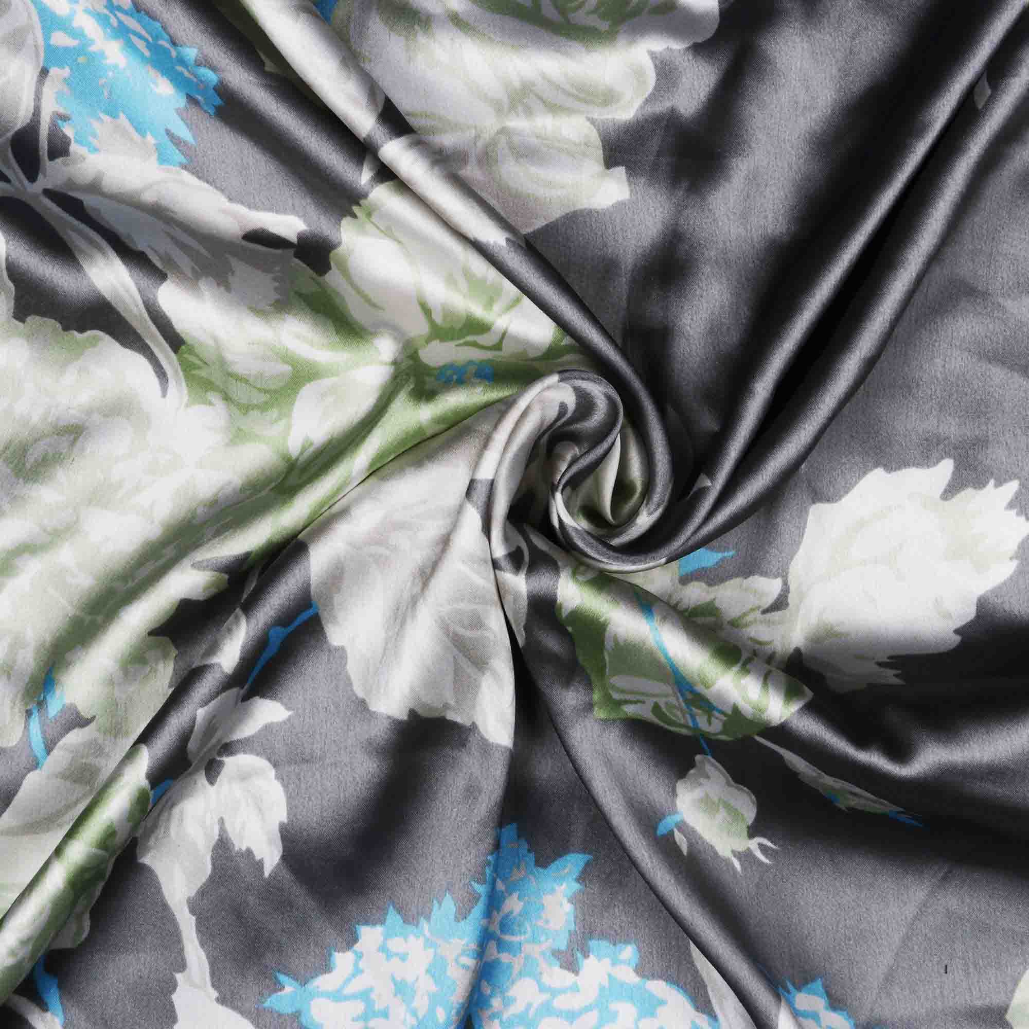 Grey And Off White Floral Pattern Screen Print Japan Satin Fabric