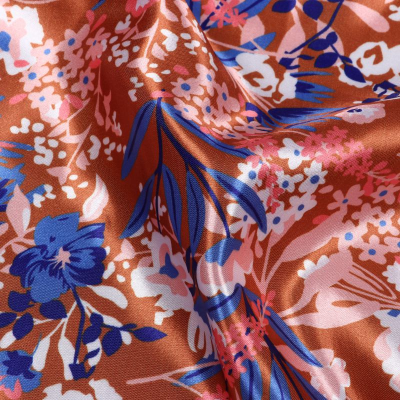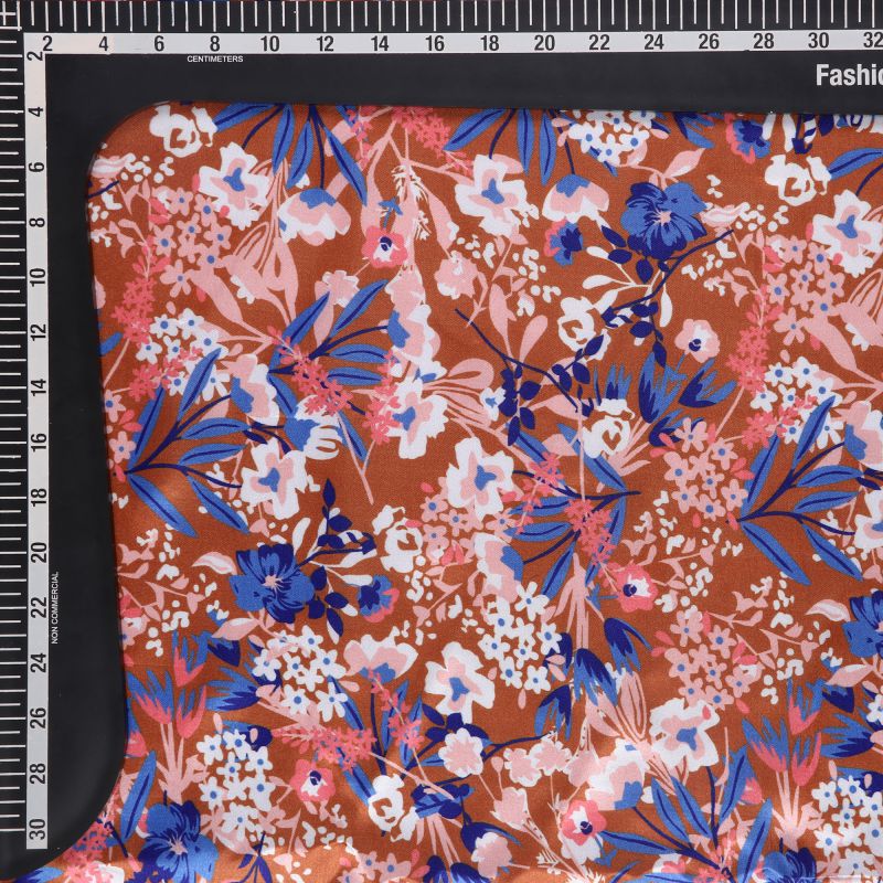 Light Brown And White Floral Pattern Digital Print Ultra Satin Fabric