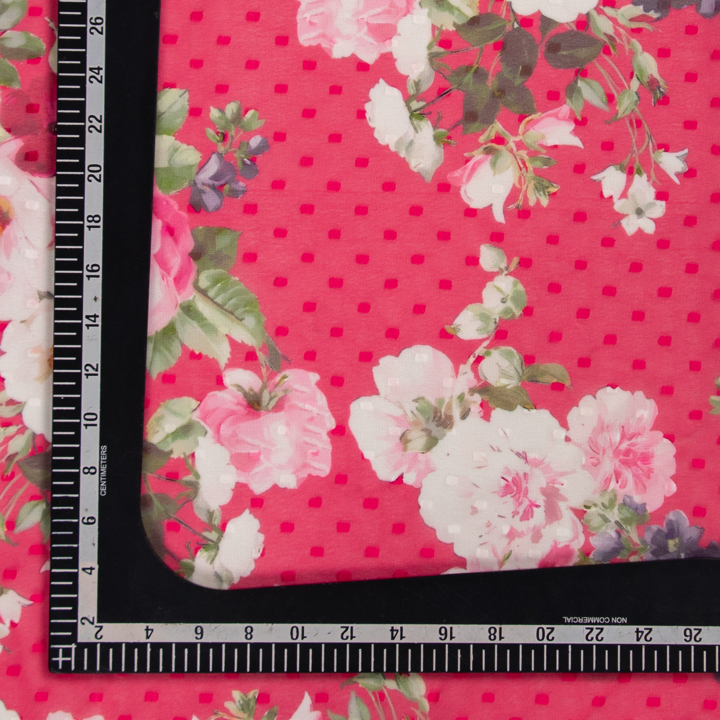 White and Red Pattern digital Print Grorgette Dobby Fabric