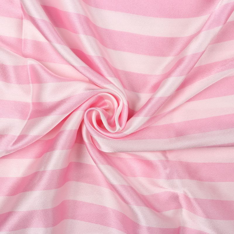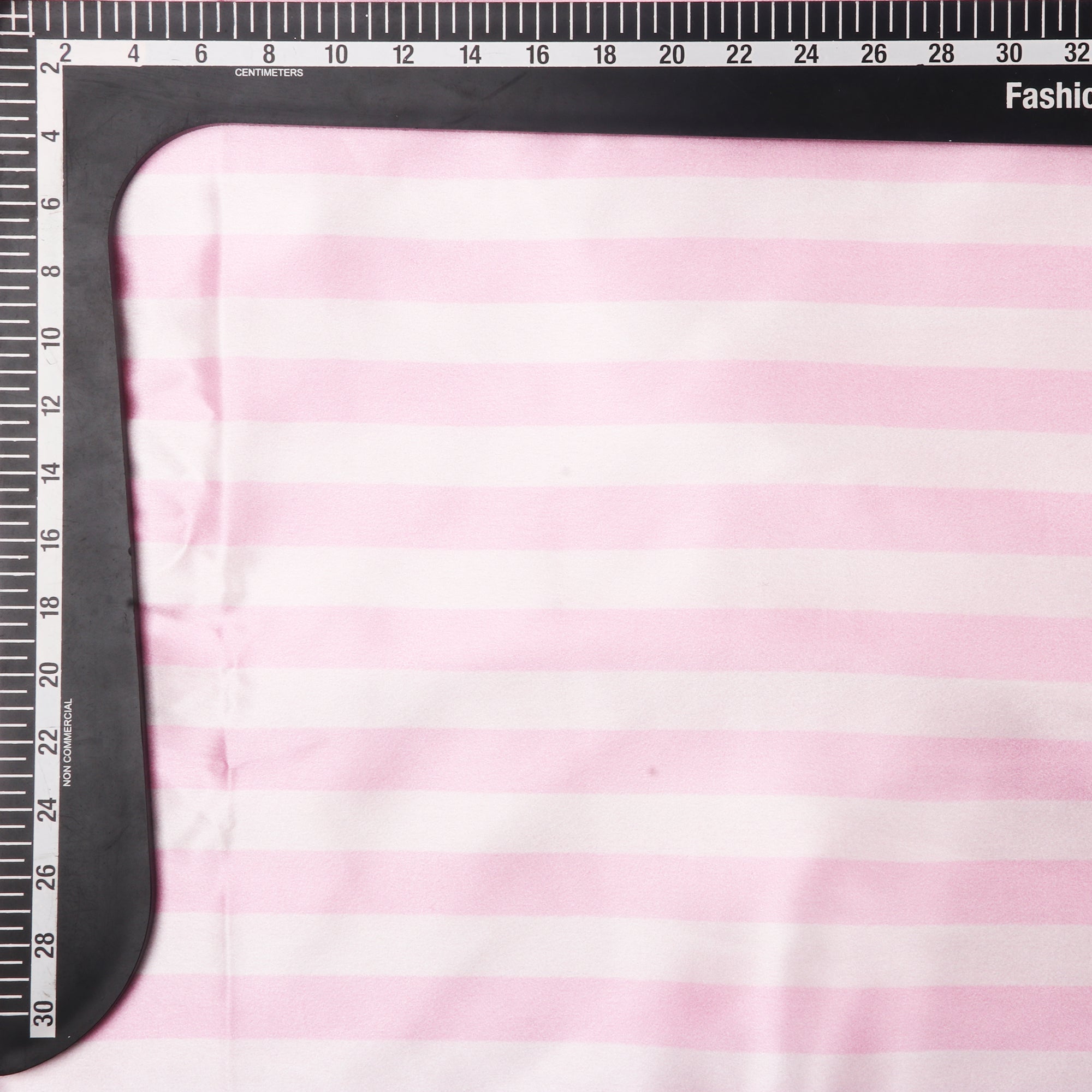 Baby Pink And White Stripes Digital Print Japan Satin Fabric