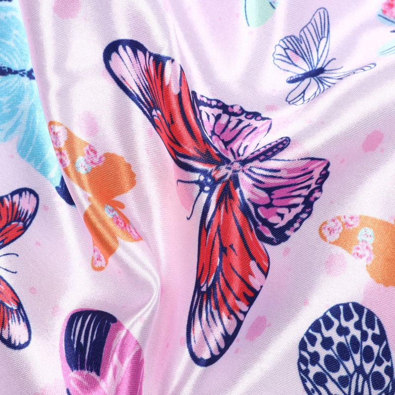 Baby Pink And Navy Blue Butterfly Pattern Digital Print Ultra Satin Fabric