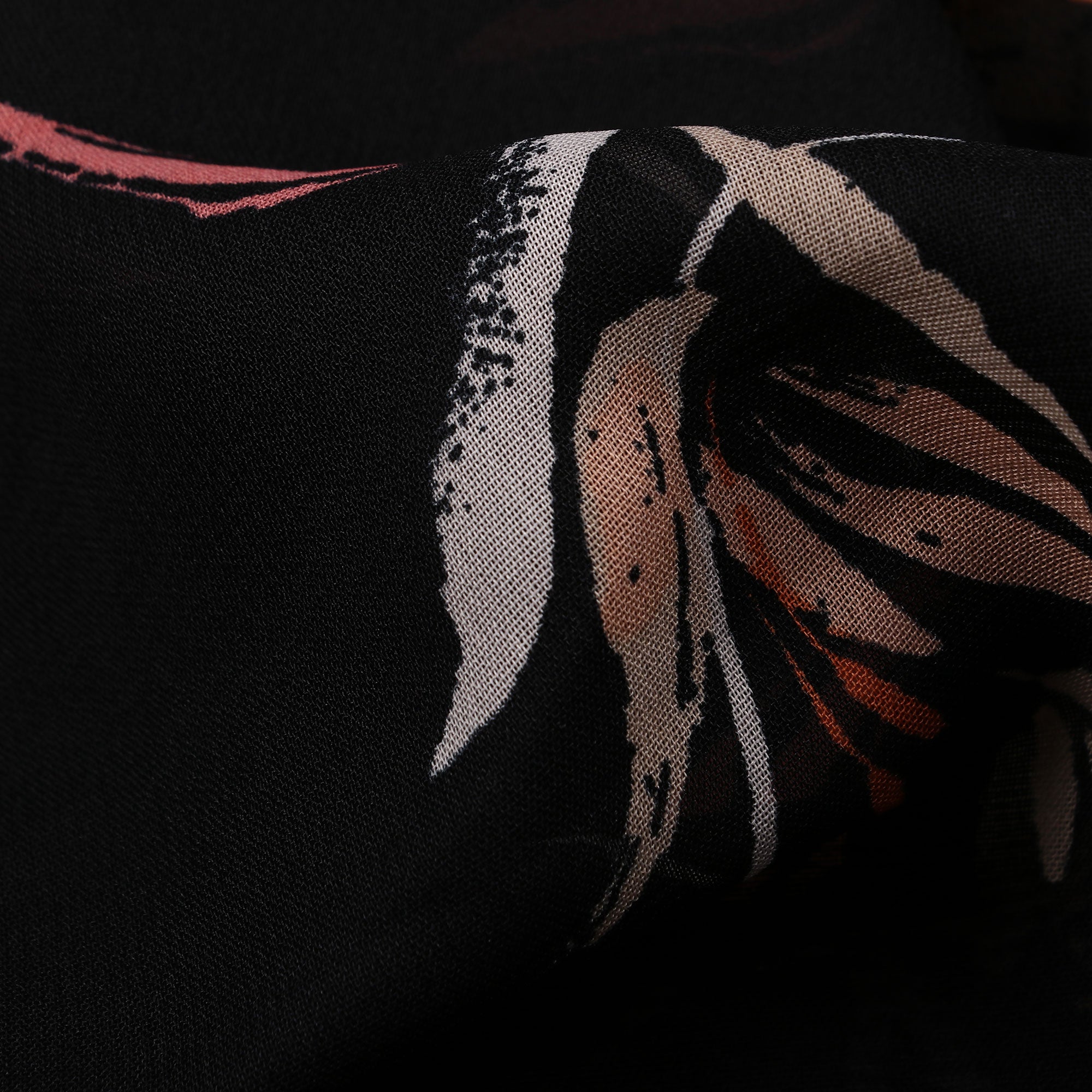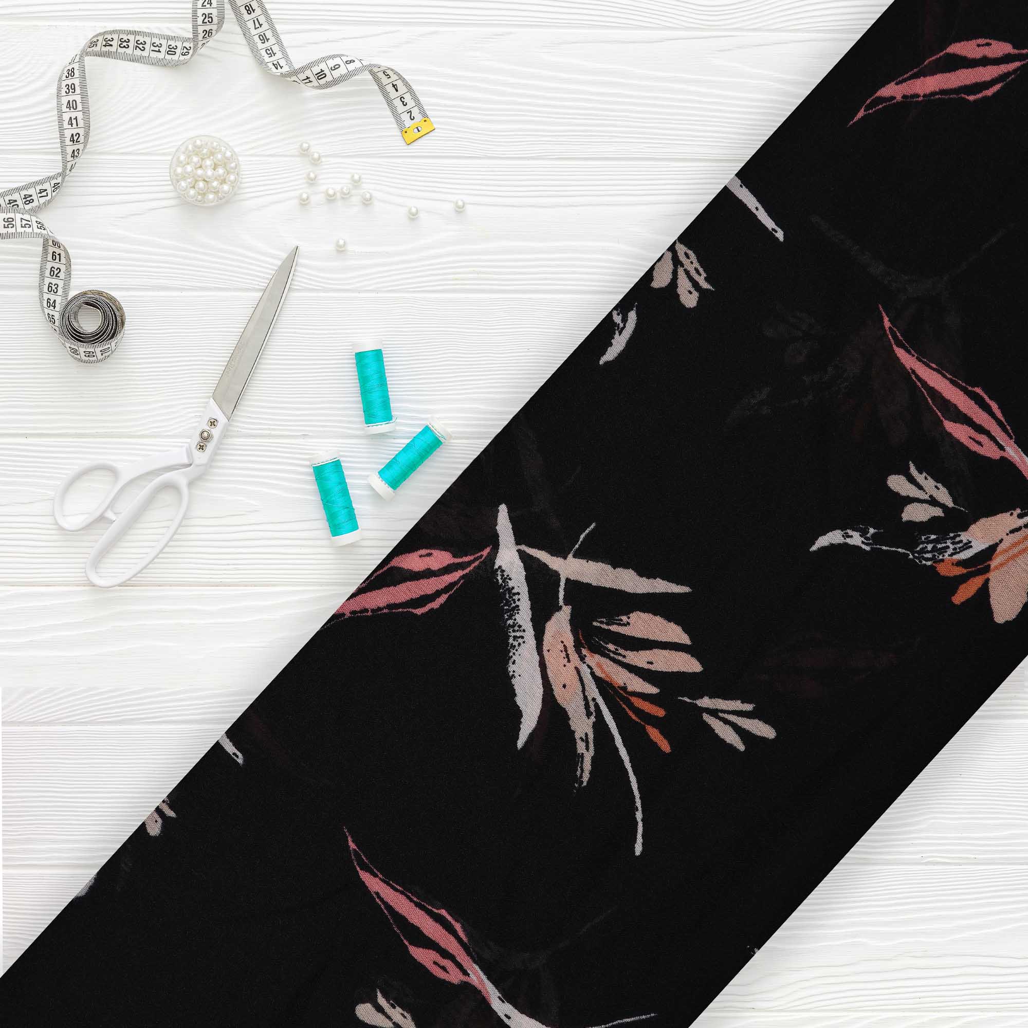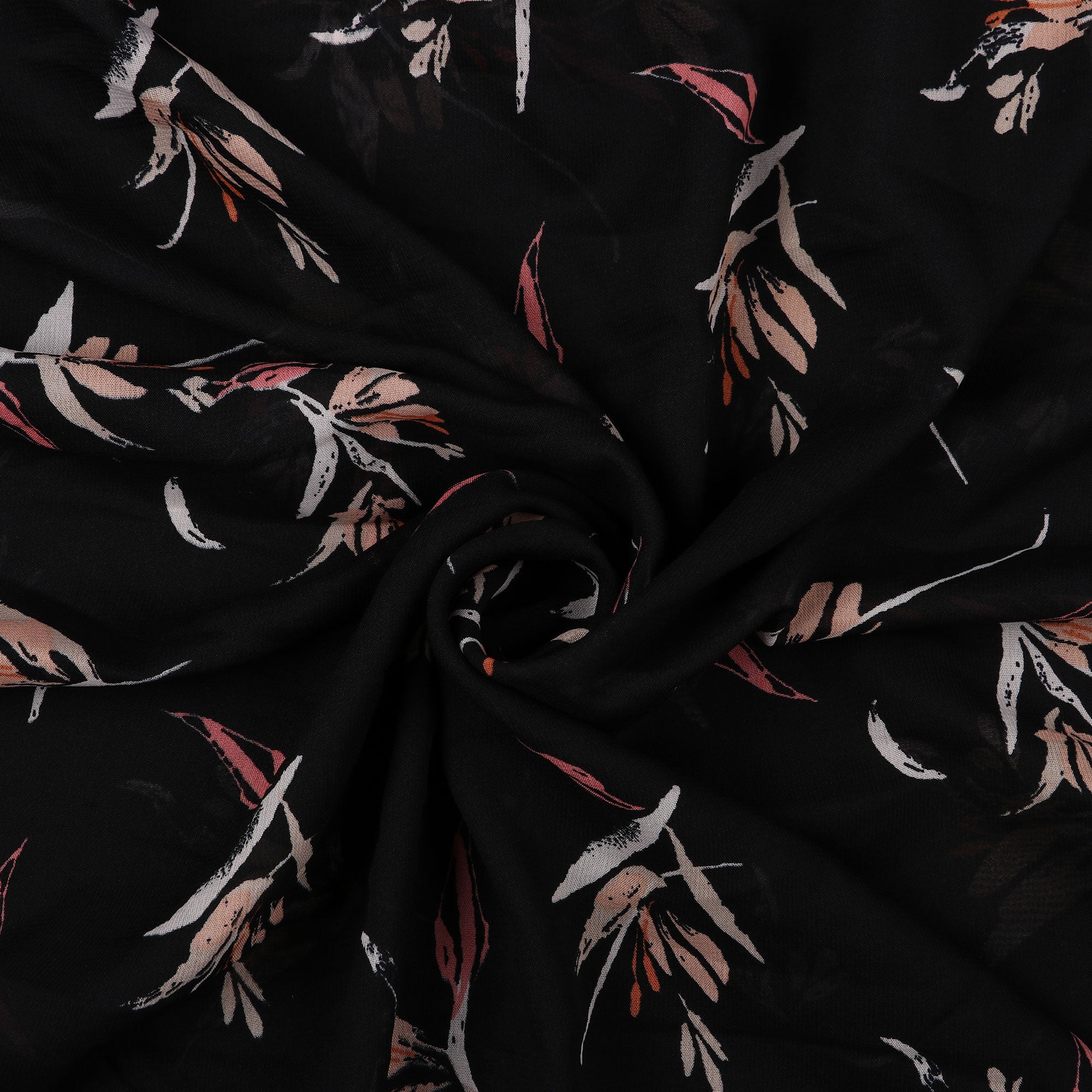 Black And Cream Floral Pattern Digital Print Georgette Fabric