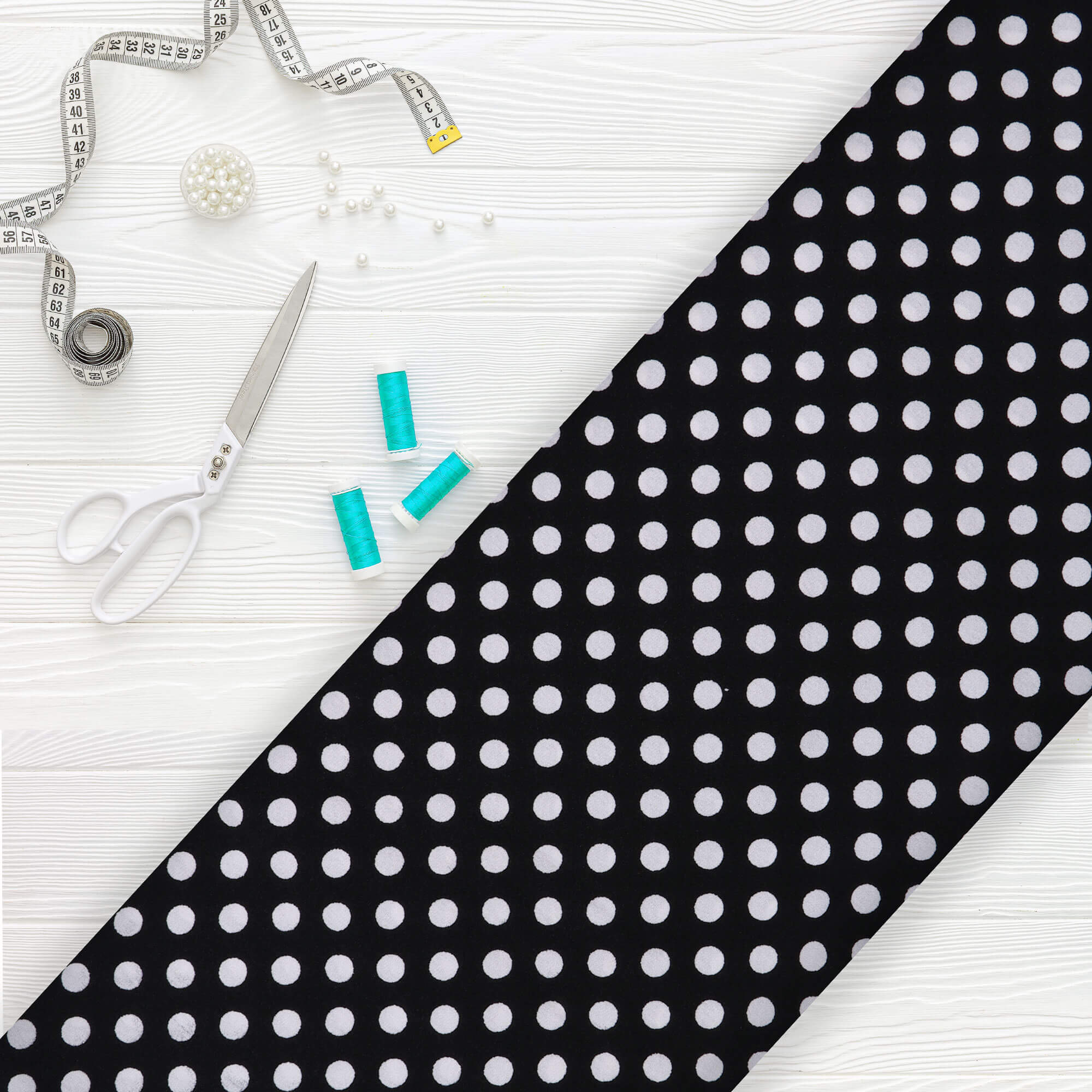 Black And White Polka Dot Pattern Screen Print American Crepe Fabric