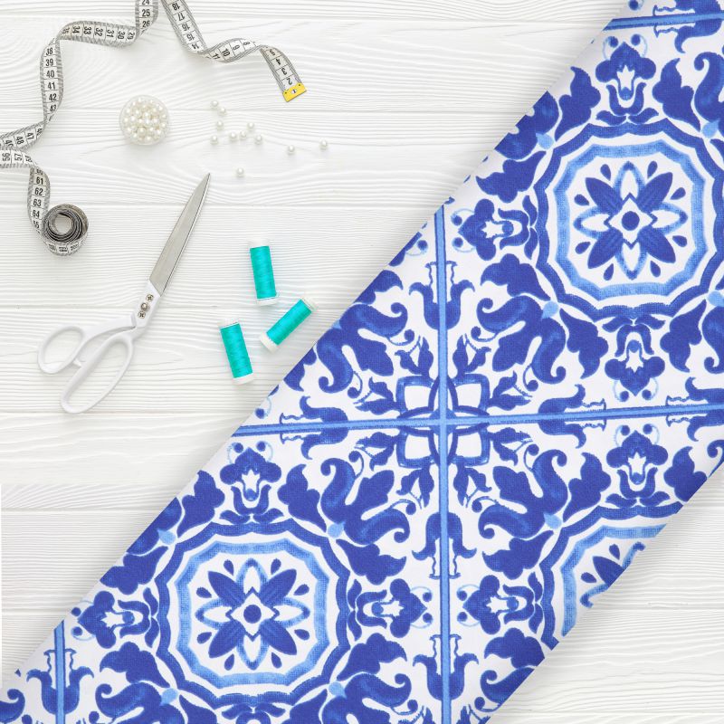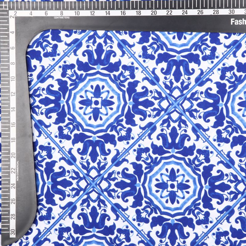 Blue And White Traditional Pattern Digital Print Ameircan Crepe Fabric