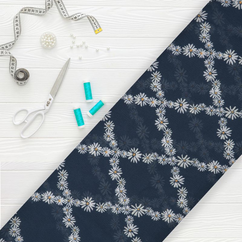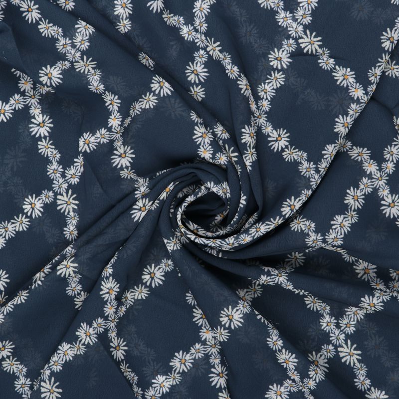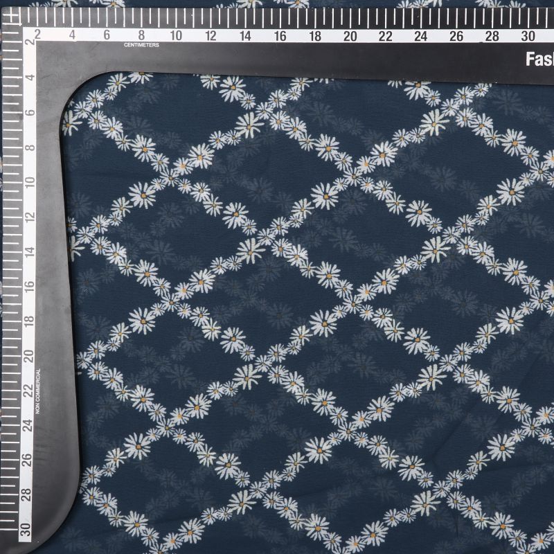 Dark Grey And White Floral Pattern Digital Print Georgette Fabric