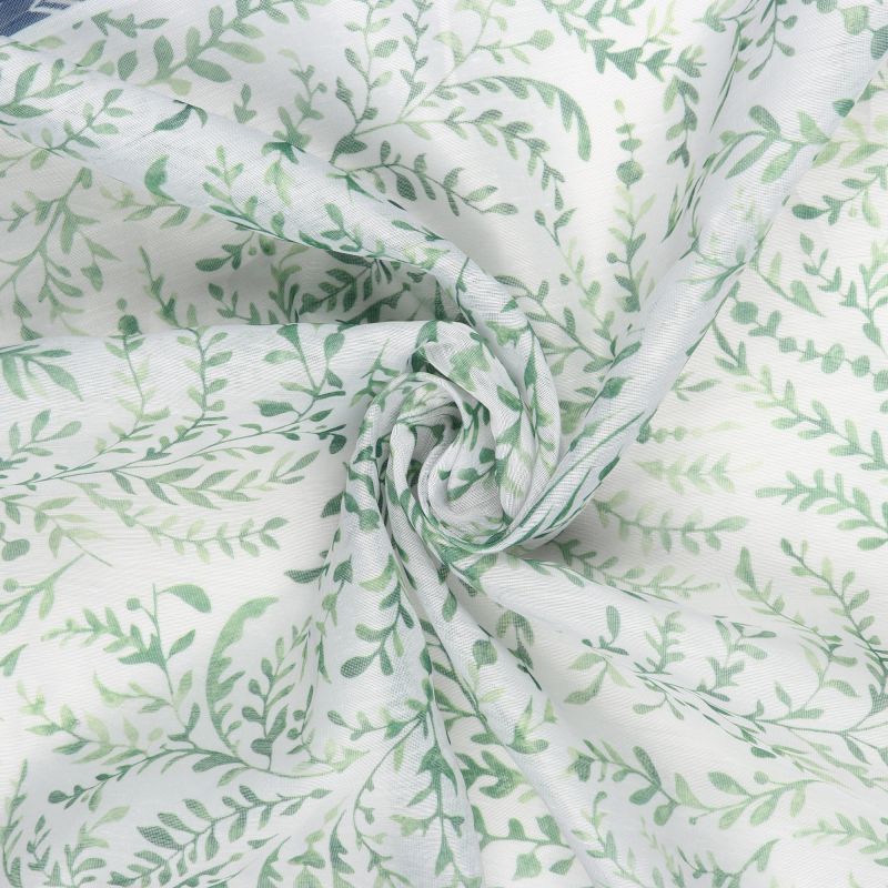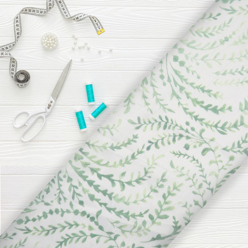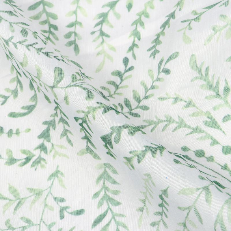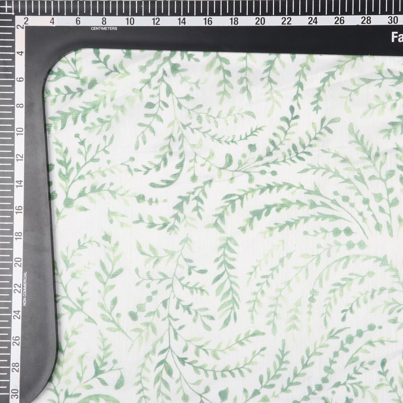 Green And White Leaf Pattern Digital Print Chanderi Fabric