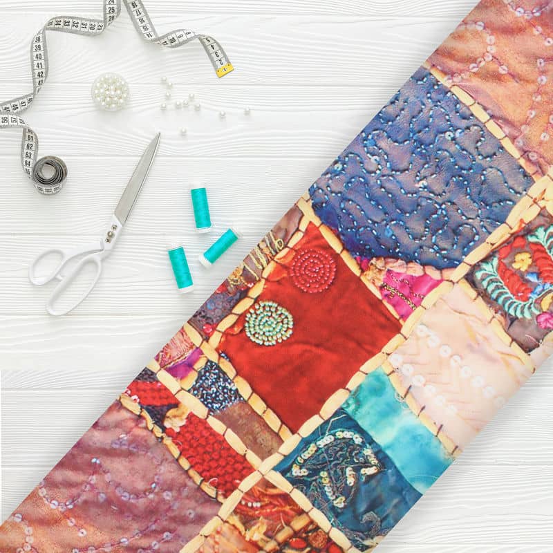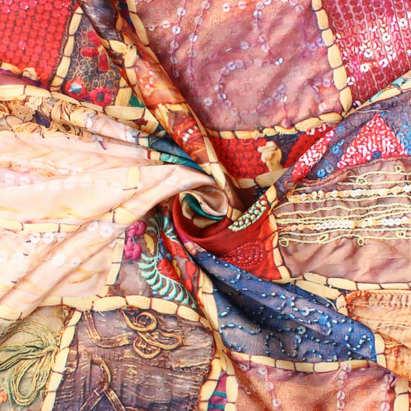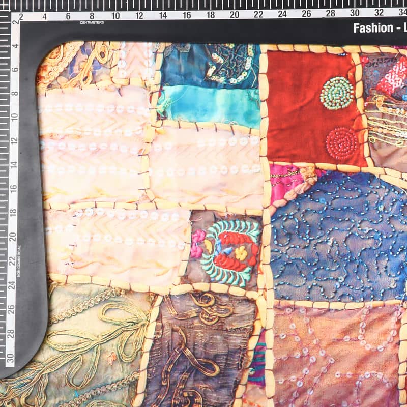 Multi Color Patchwork Pattern Digital Print Japan Satin Fabric