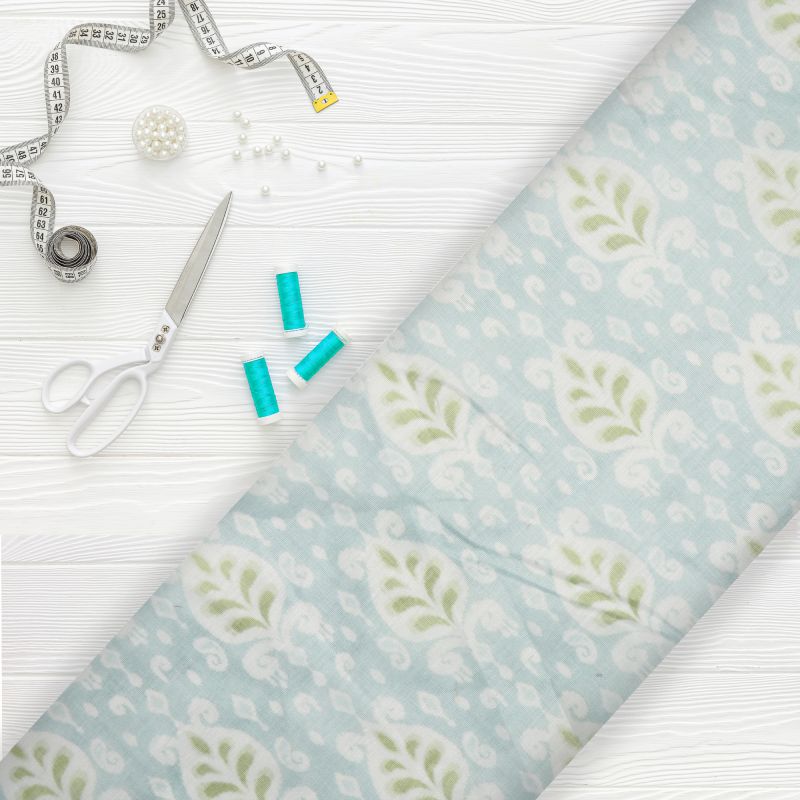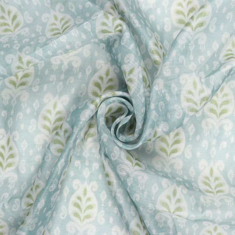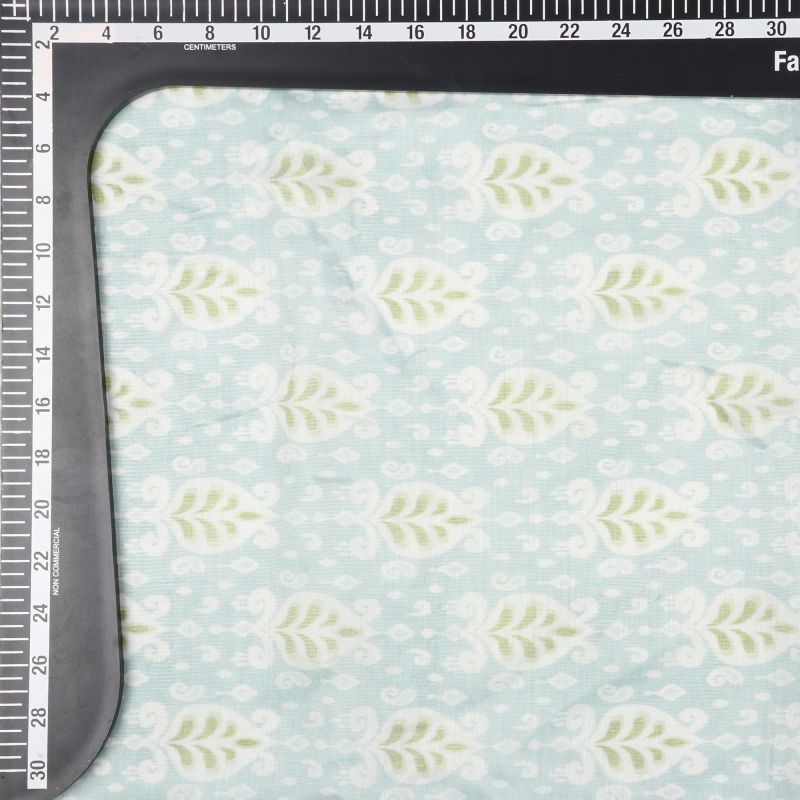 Sky Blue And Green Floral Pattern Digital Print Chanderi Fabric