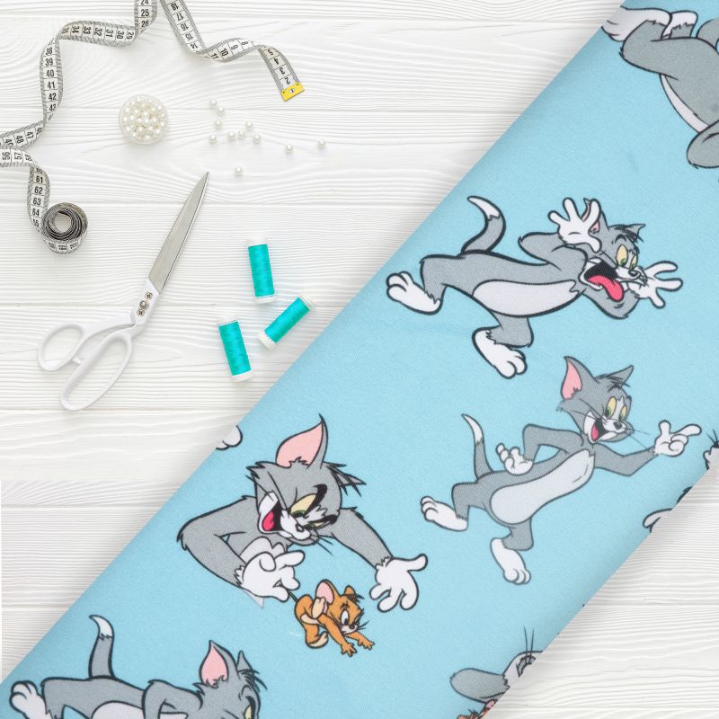 Sky Blue And Grey Kids Pattern Digital Print Rayon Fabric
