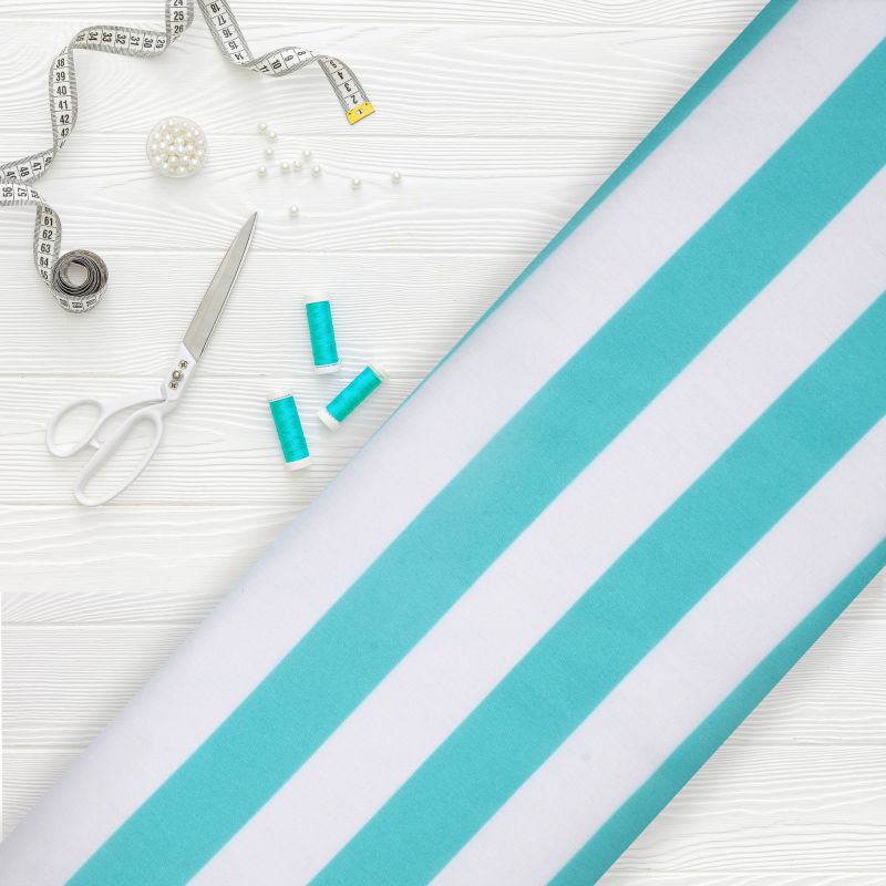 Turquoise And White Stripes Pattern Digital Print Rayon Fabric