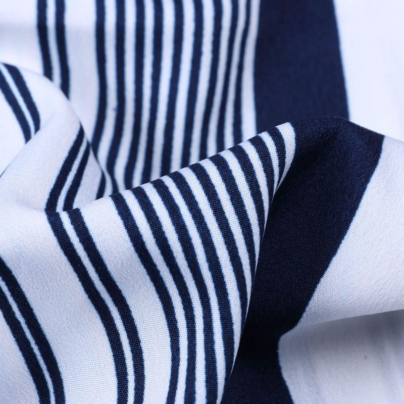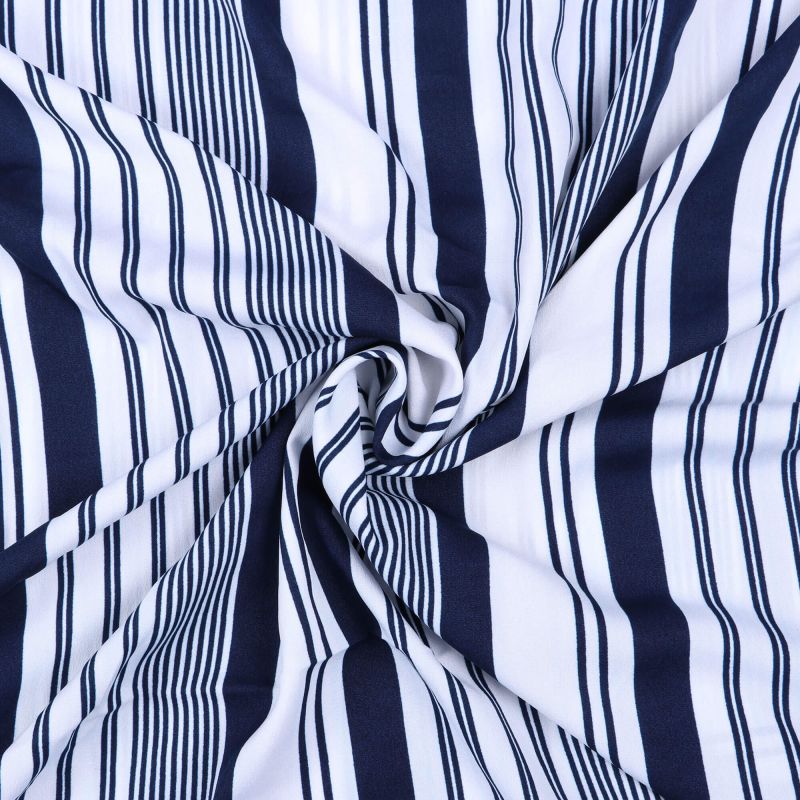 White And Blue Stripes Pattern Digital Print American Crepe Fabric