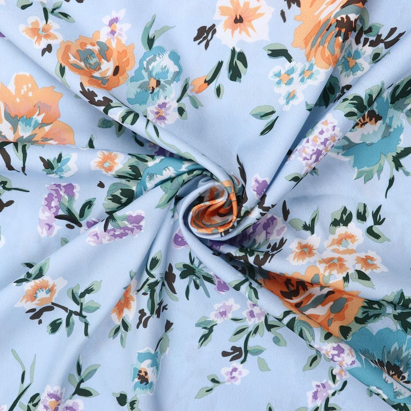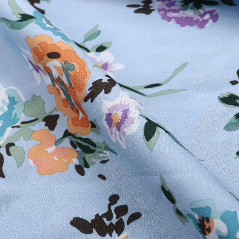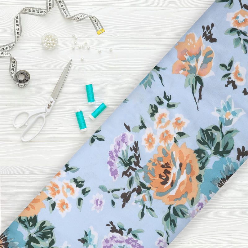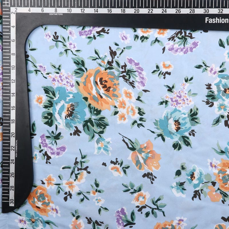 Blue And Yellow Floral Pattern Digital Print American Crepe Fabric