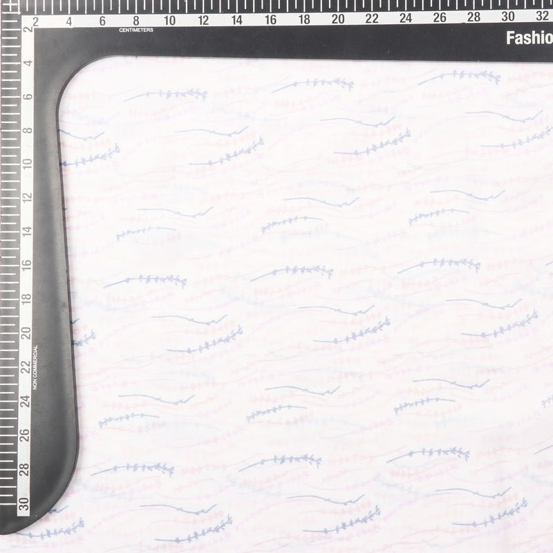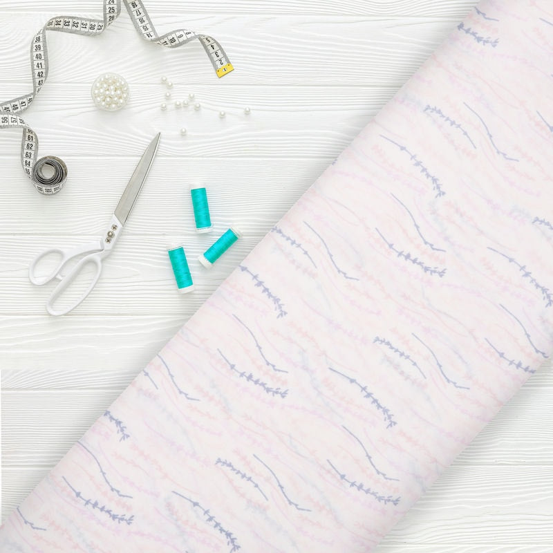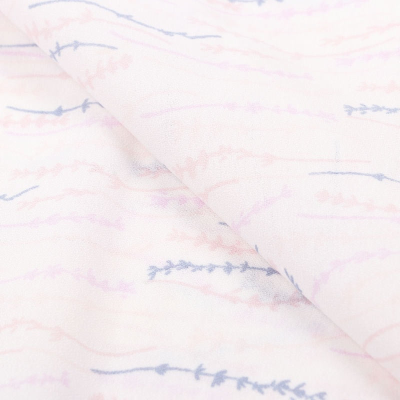 Light Pink And Blue Floral Pattern Screen Print Moss Crepe Fabric
