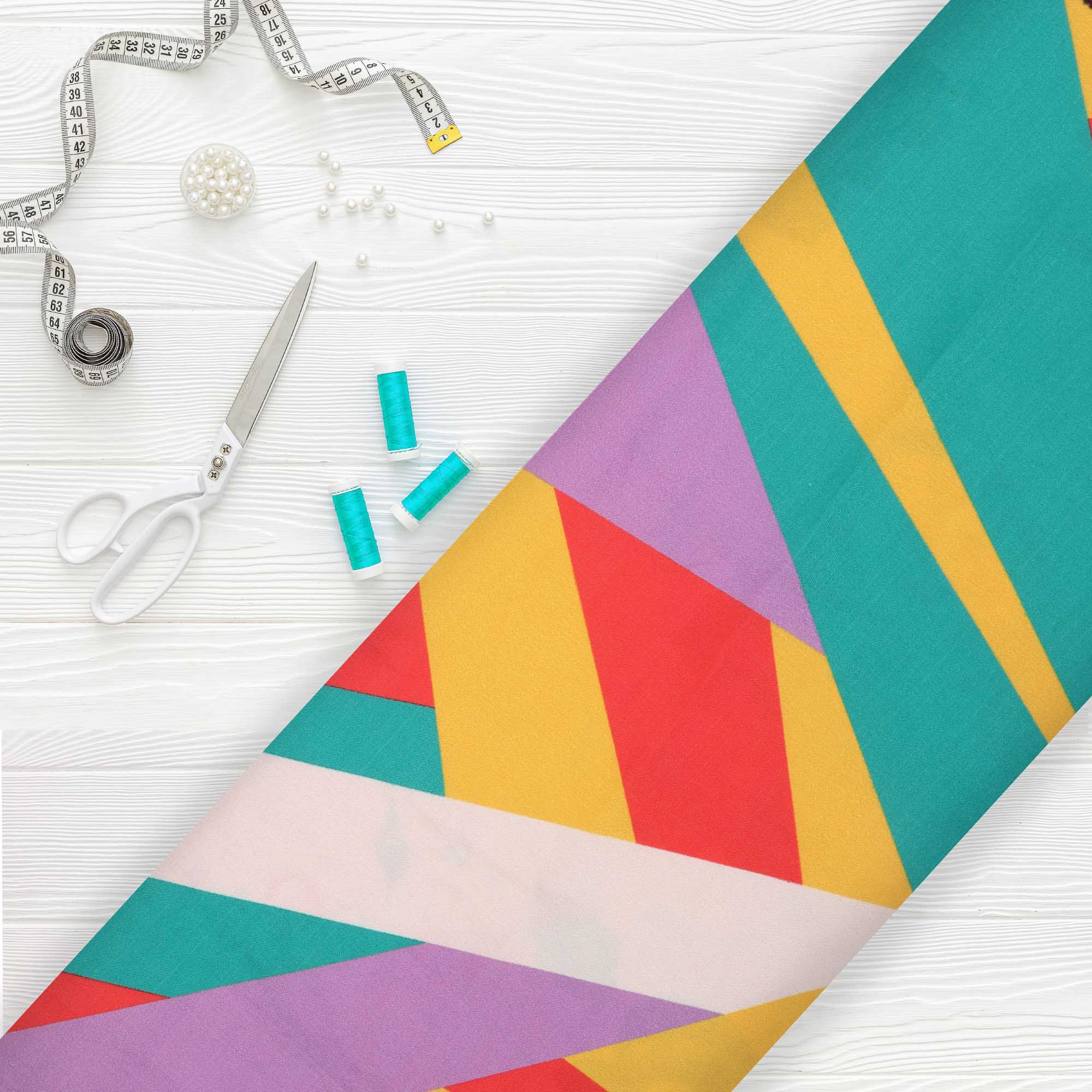 Multi Color Abstract Pattern Digital Print Crepe Fabric