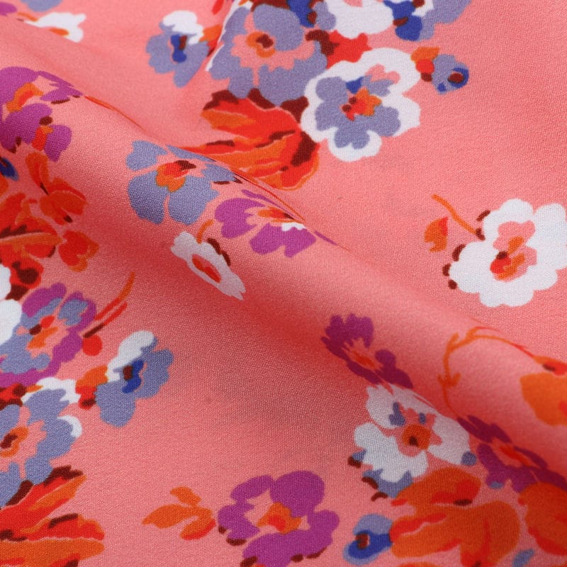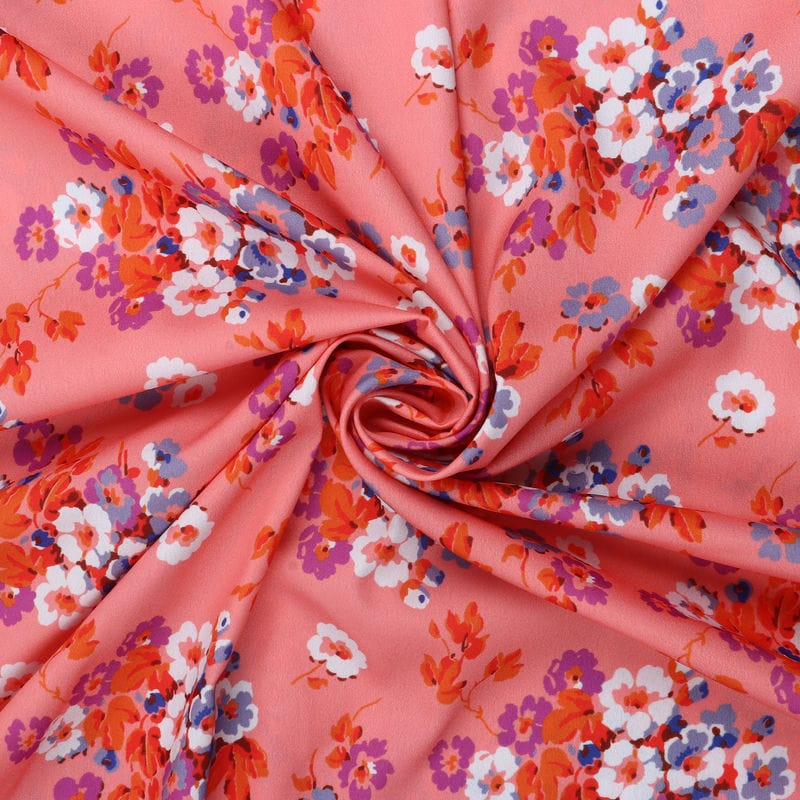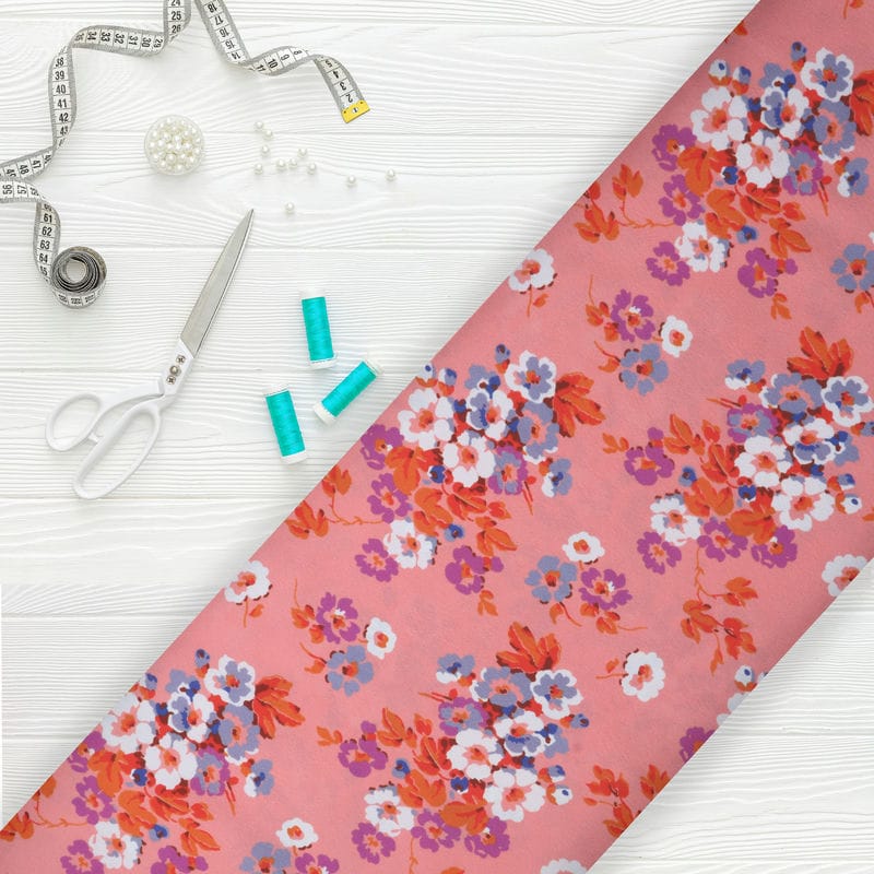 Peach And Red Floral Pattern Digital Print American Crepe Fabric