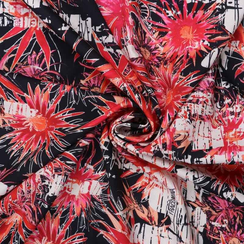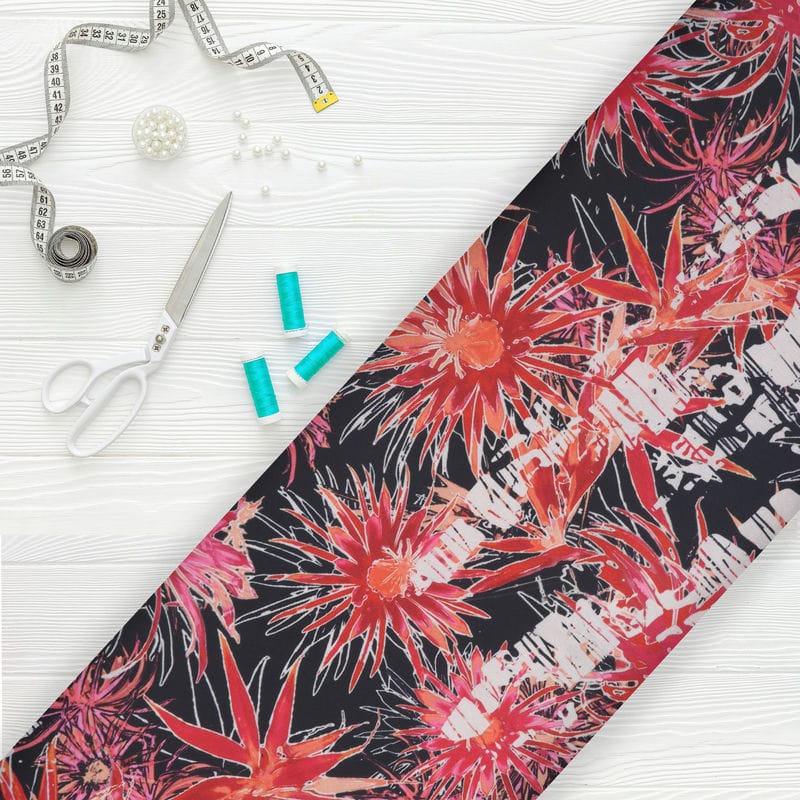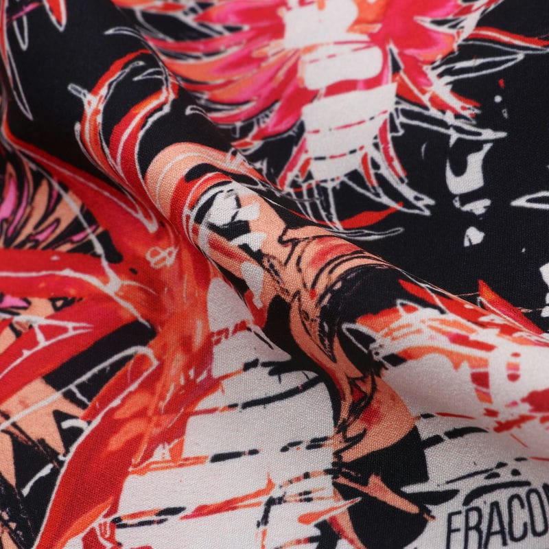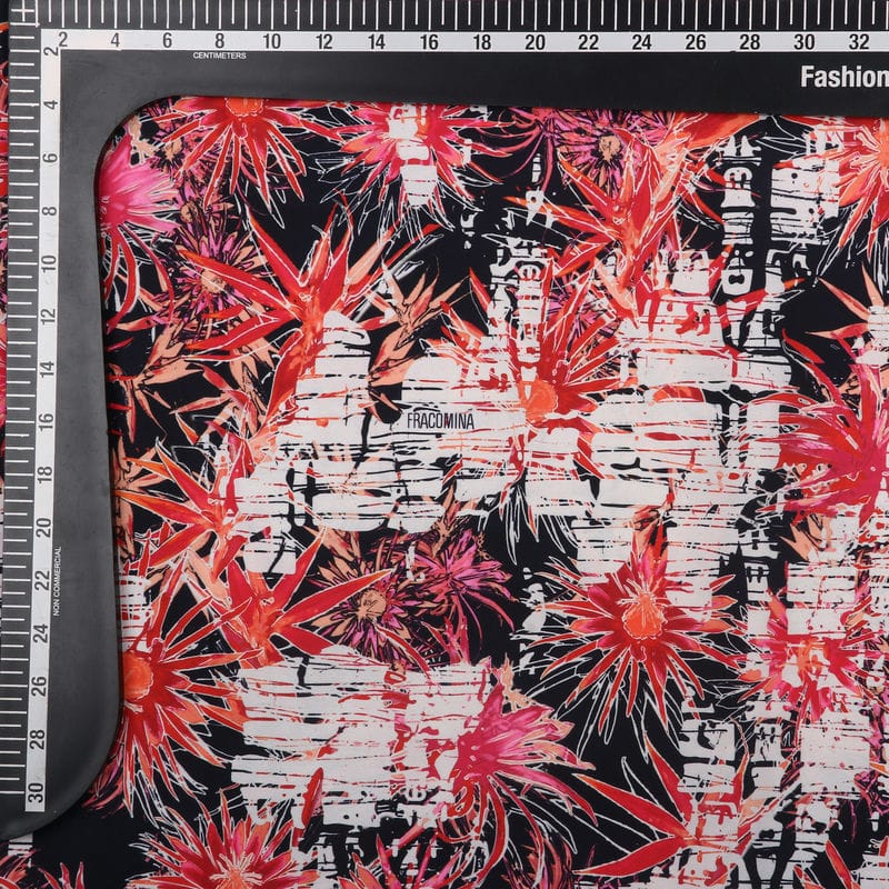 Red And Black Floral Pattern Digital Print American Crepe Fabric