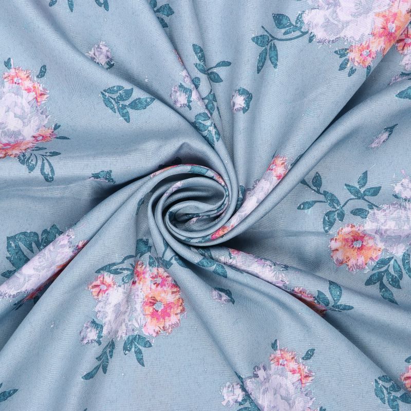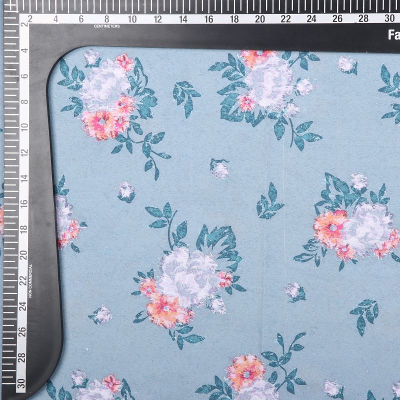 Stone Blue And Orange Floral Pattern Digital Print Crepe Fabric