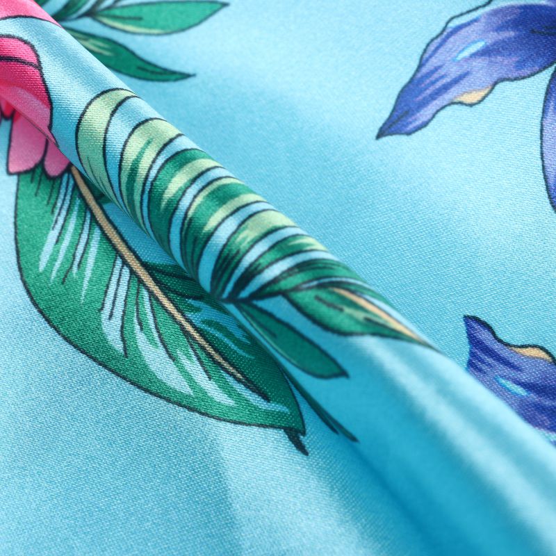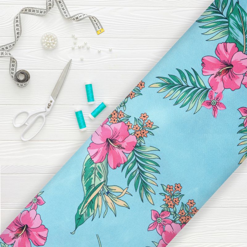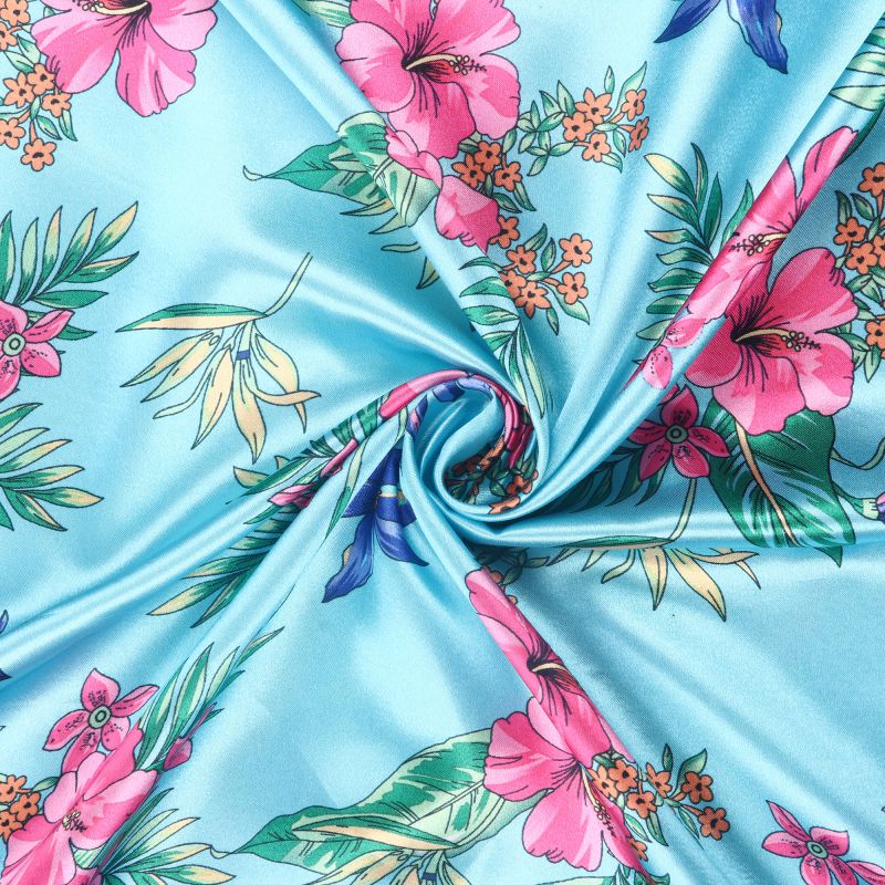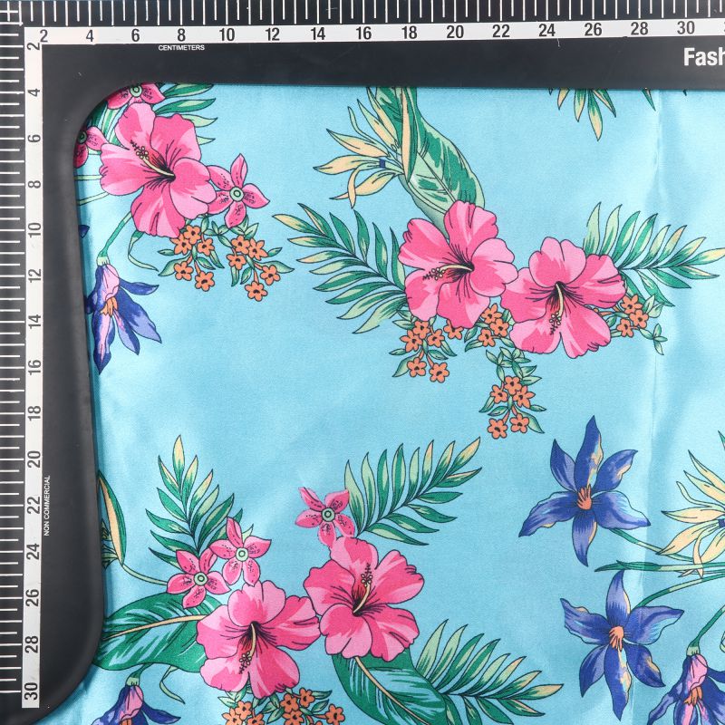 Turquoise And Bright Pink Floral Pattern Digital Print Ultra Satin Fabric