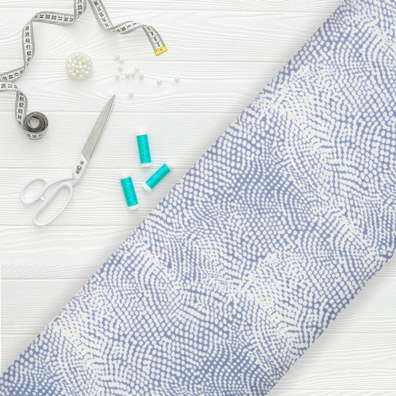 White And Blue Dot Pattern Screen Print Micro Crepe Fabric