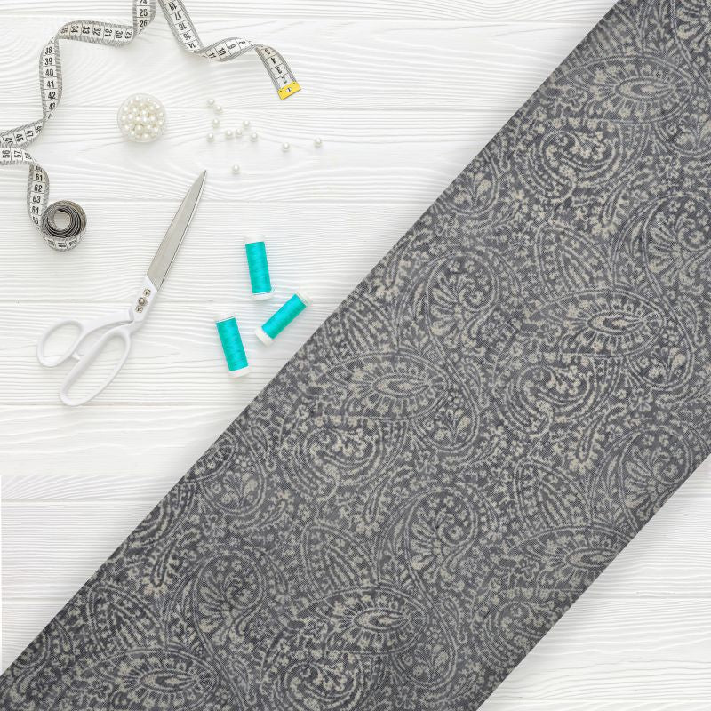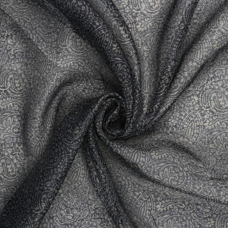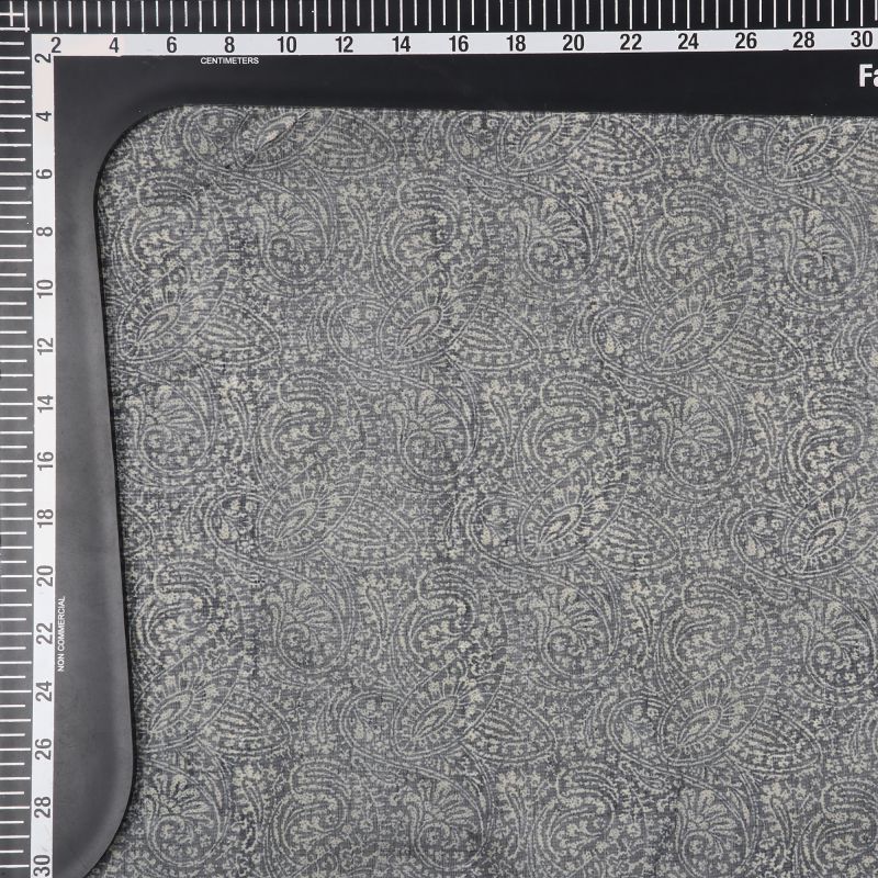 Beige And Black Paisley Pattern Digital Print Chanderi Fabric