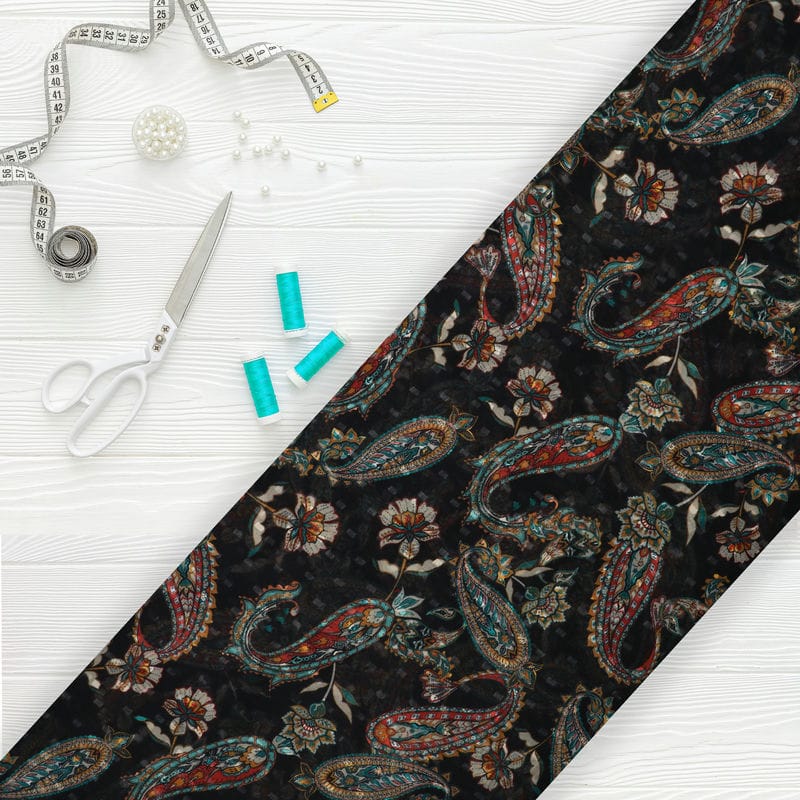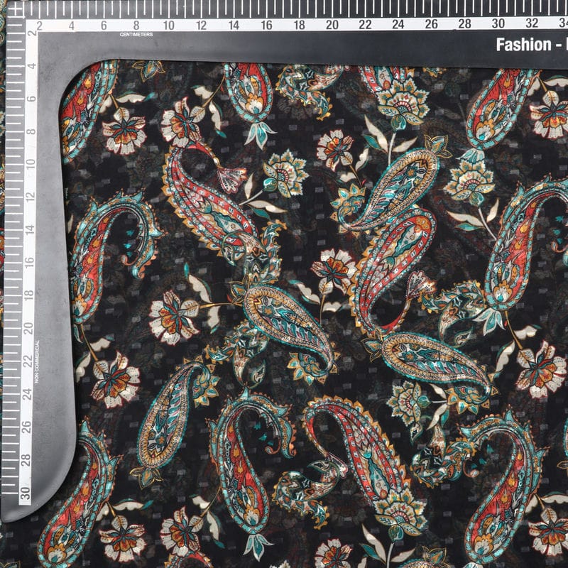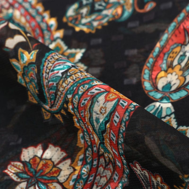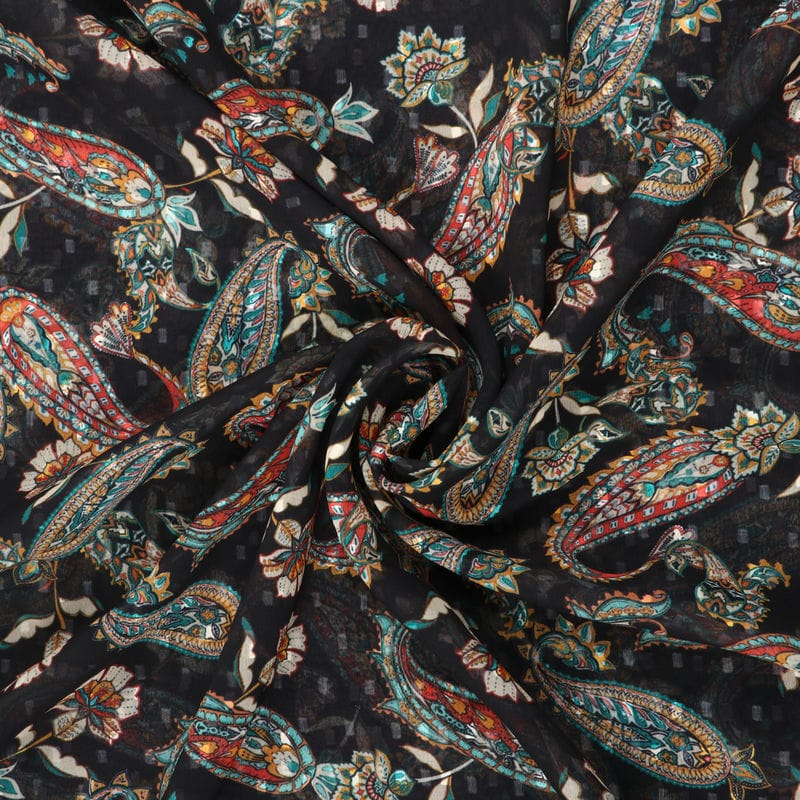 Black And Red Paisley Pattern Digital Print Georgette Dobby Fabric