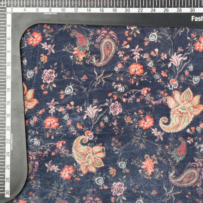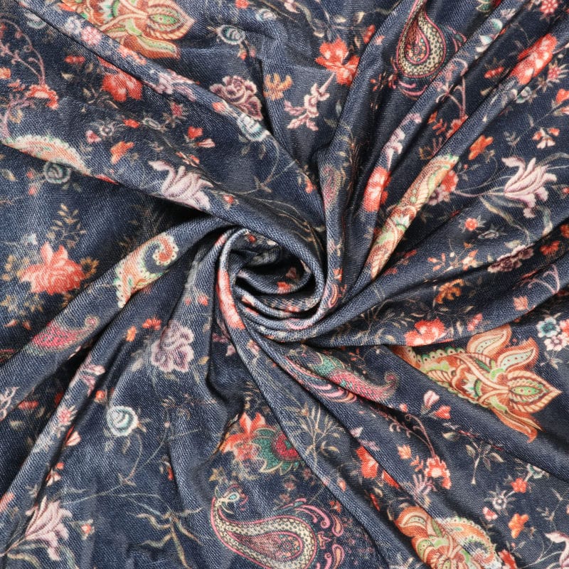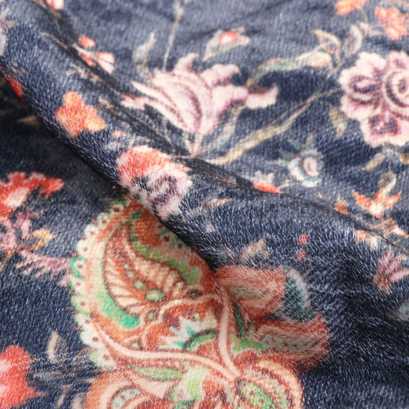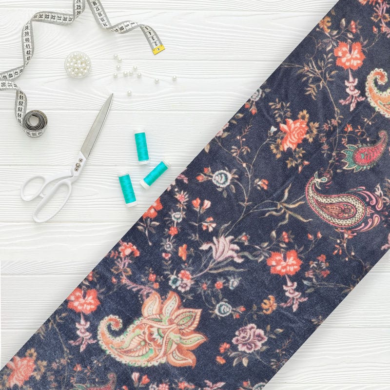 Grey And Orange Paisley Pattern Digital Print Velvet Fabric