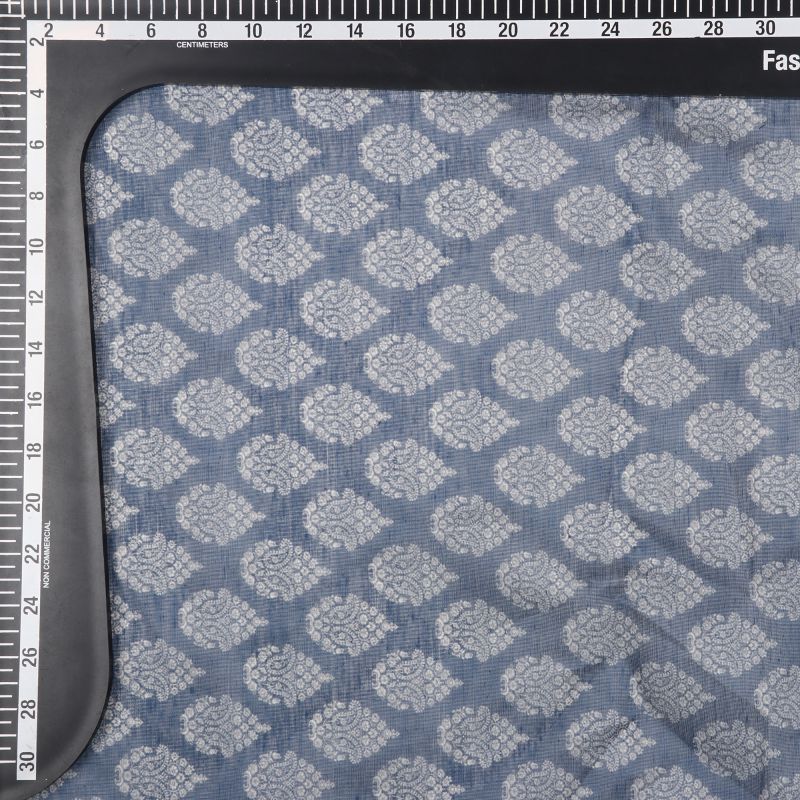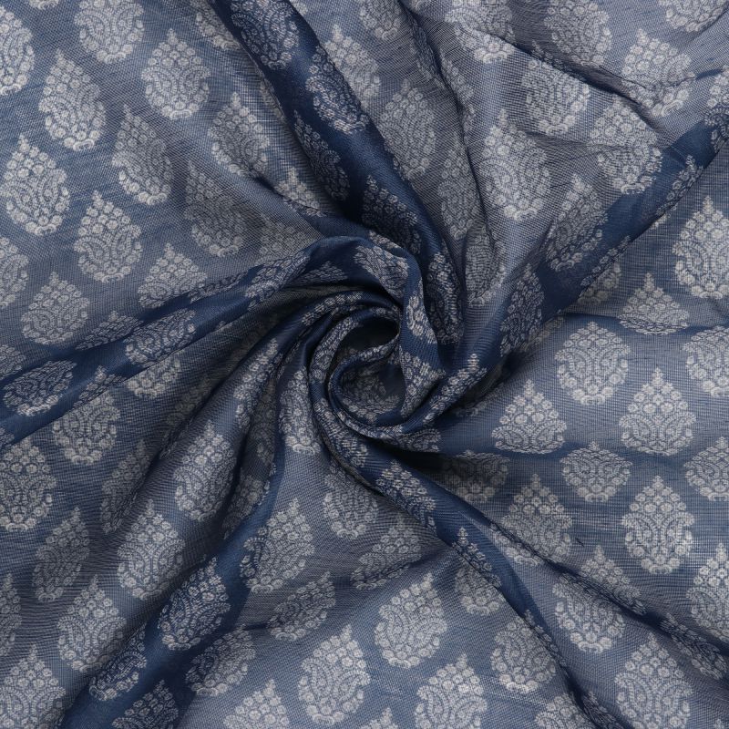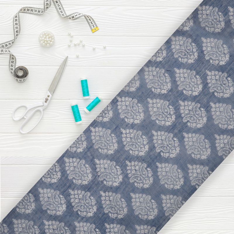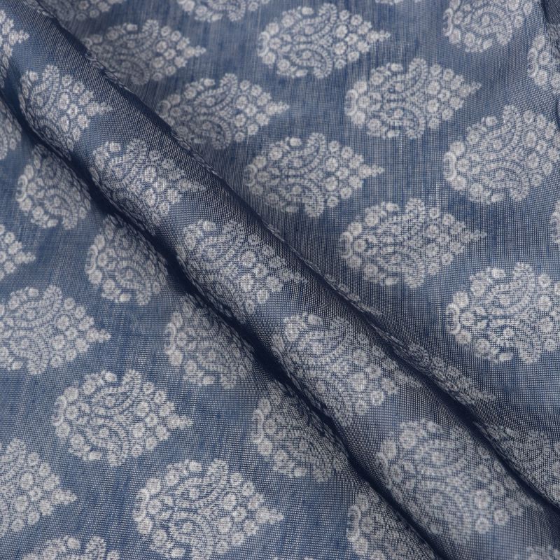 Blue And White Paisley Pattern Digital Print Chanderi Fabric