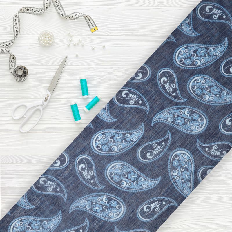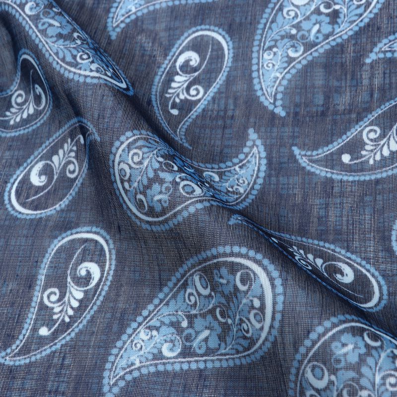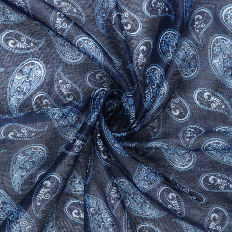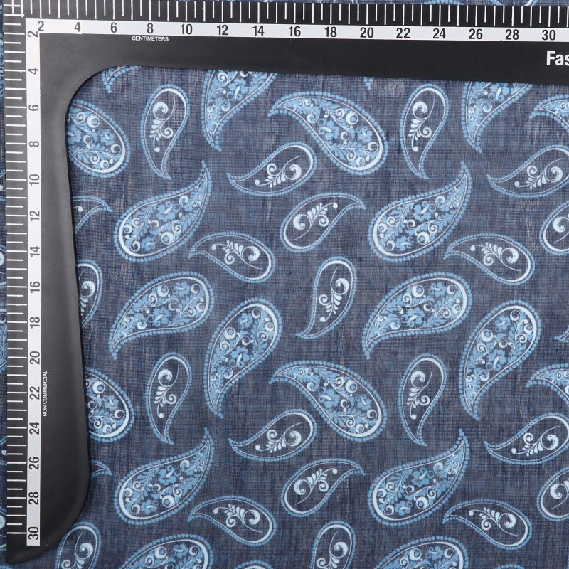 Dark Blue And White Paisley Pattern Digital Print Chanderi Fabric