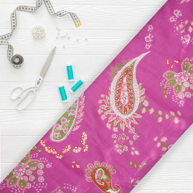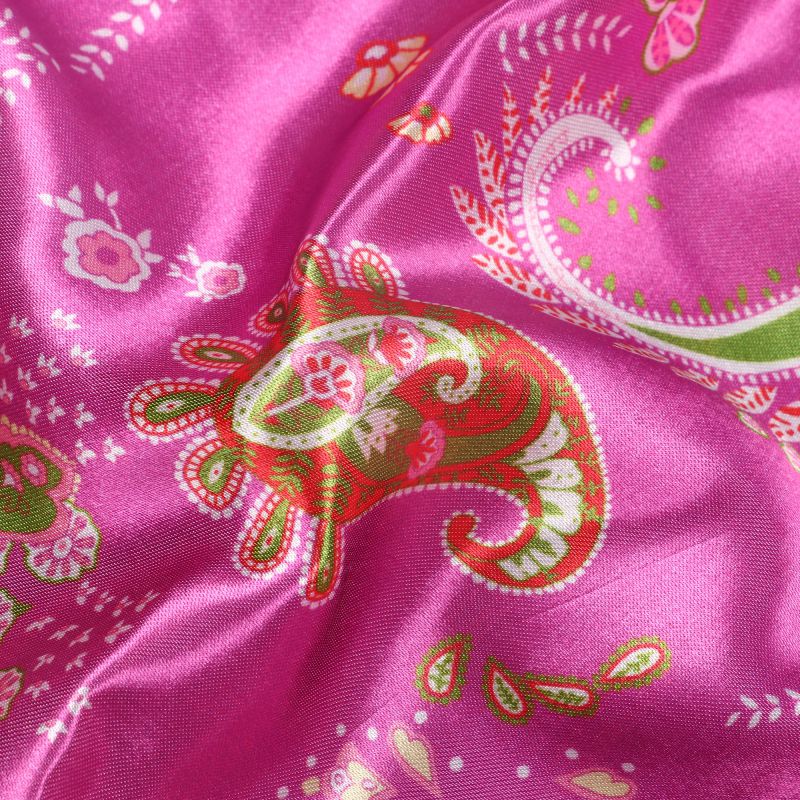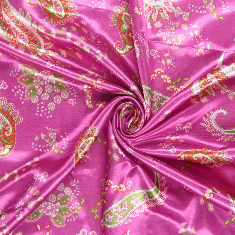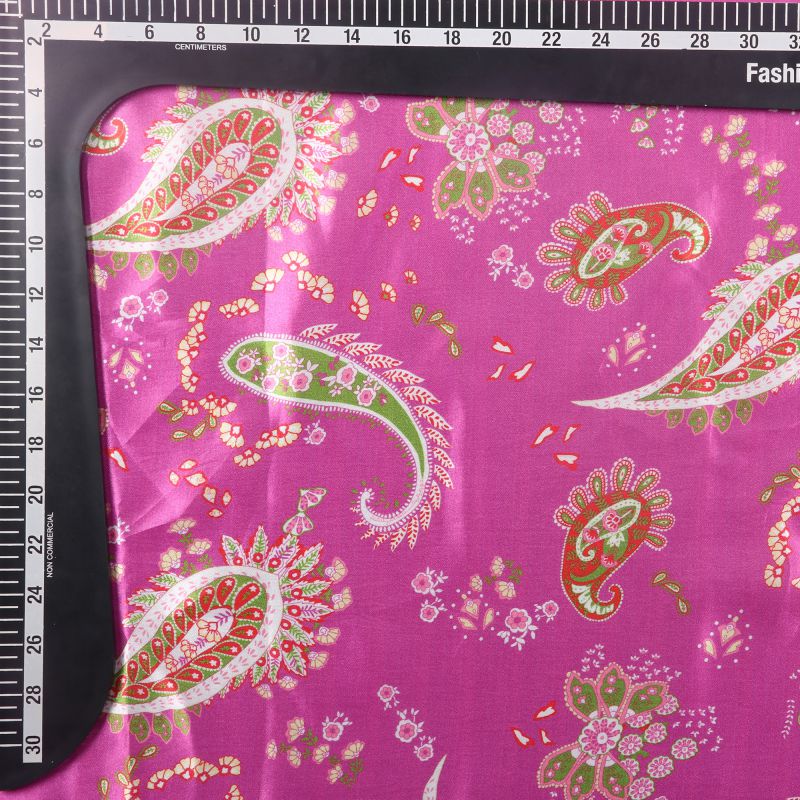 Deep Pink And Jungle Green Paisley Pattern Digital Print Ultra Satin Fabric