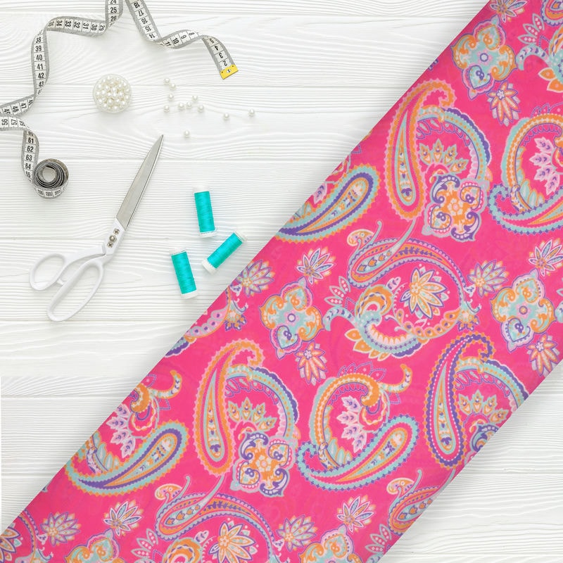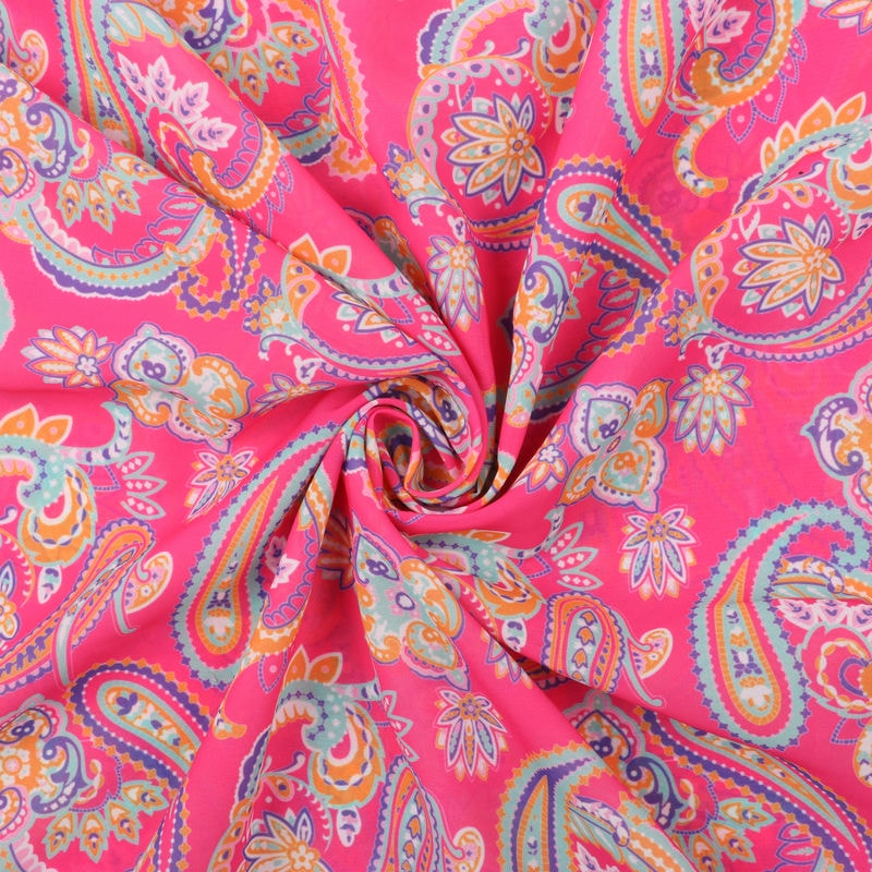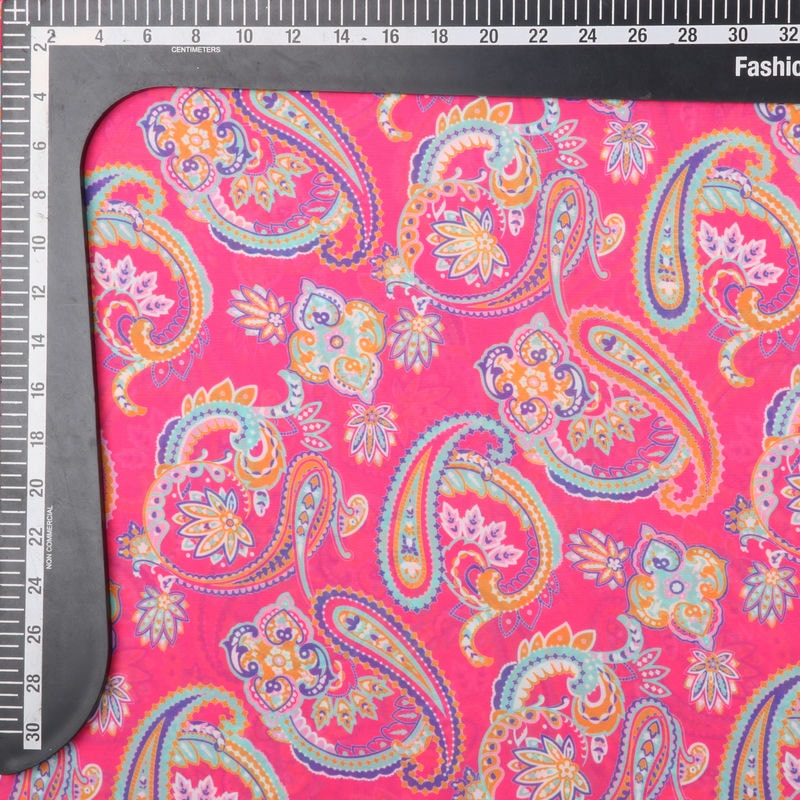 Pink And Purple Paisley Pattern Digital Print Georgette Fabric
