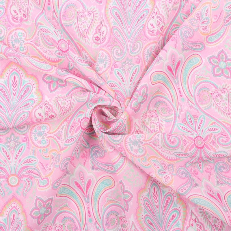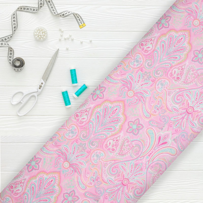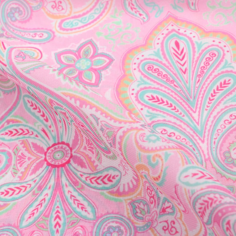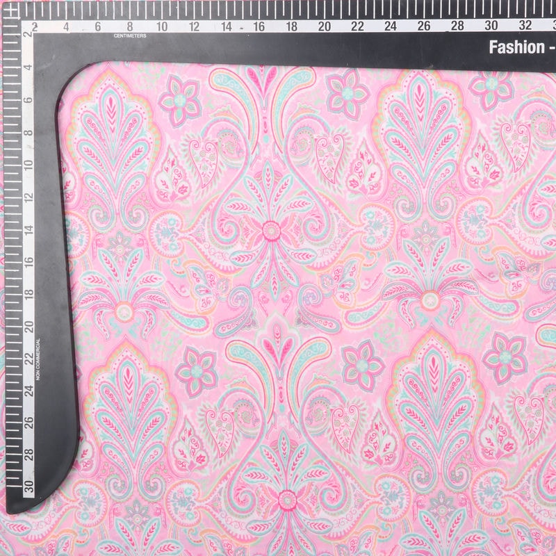 Pink And Turquoise Paisley Pattern Digital Print Georgette Fabric